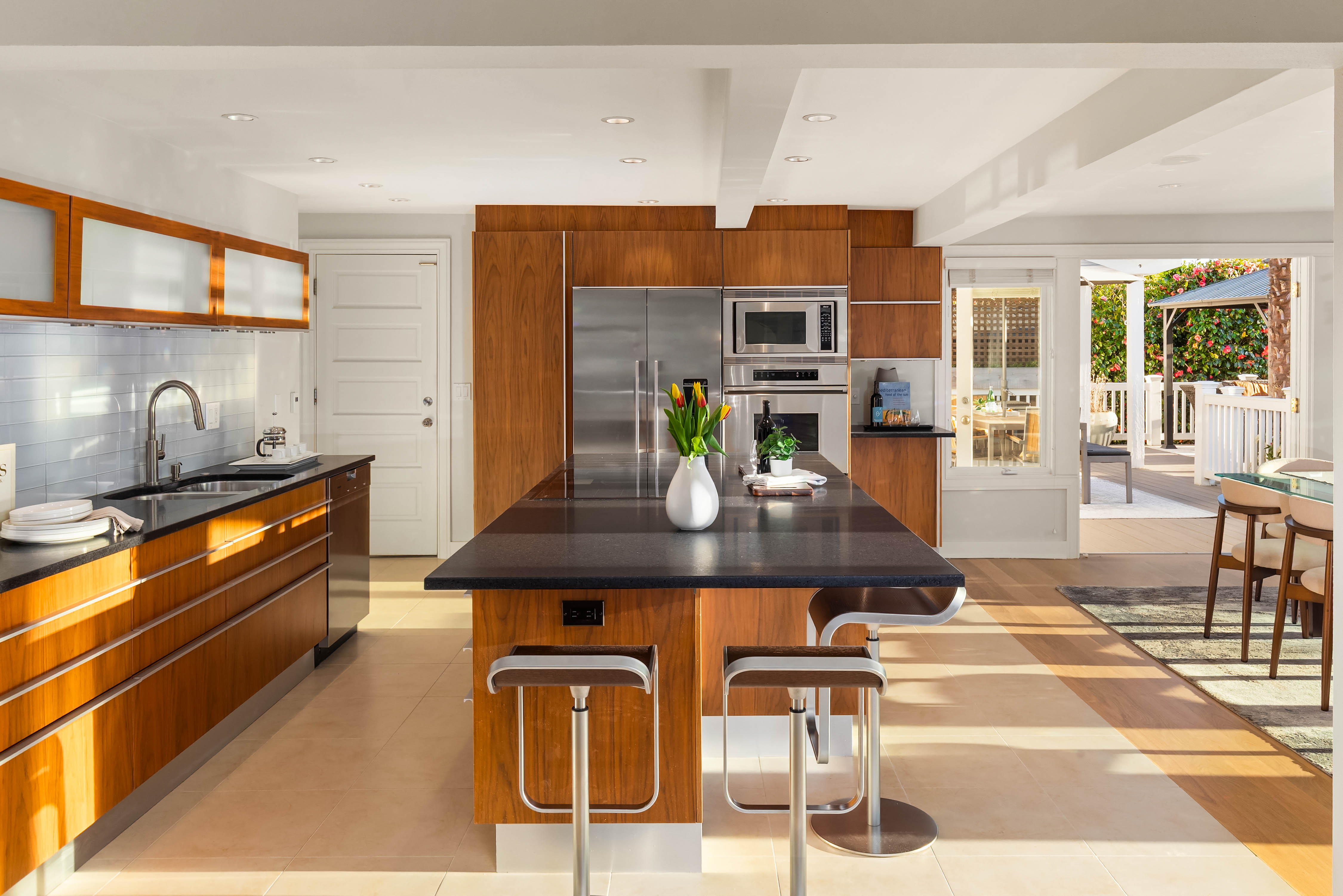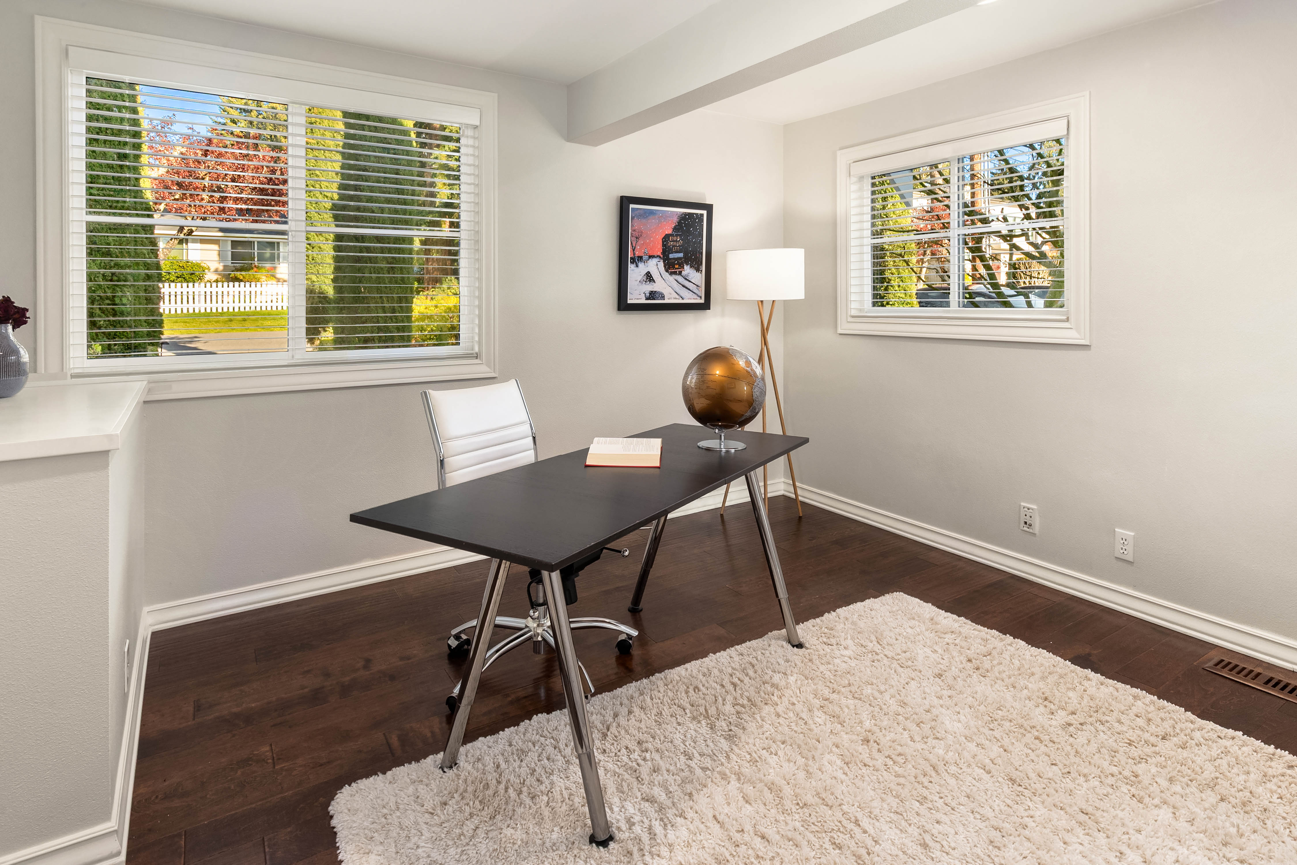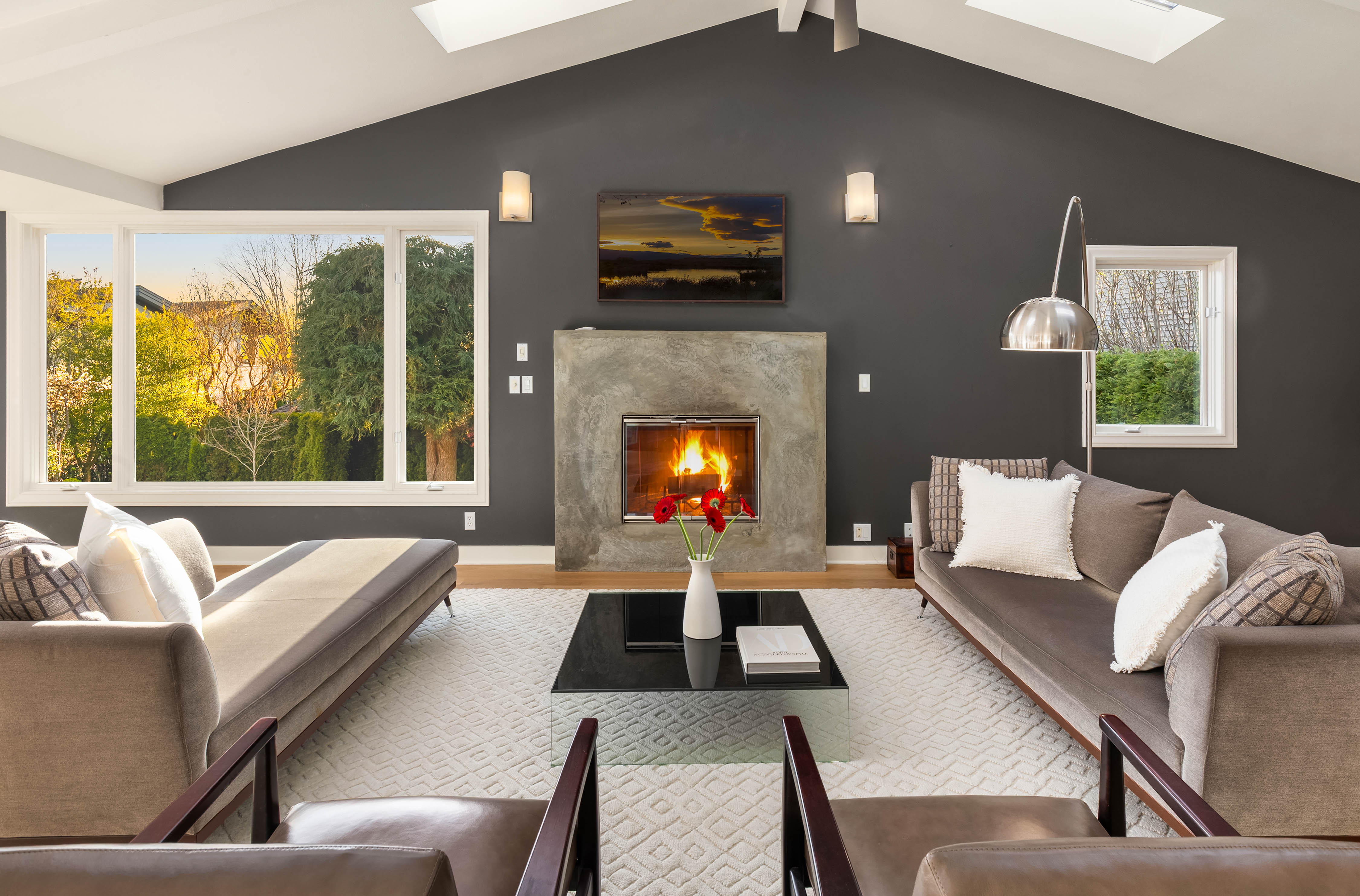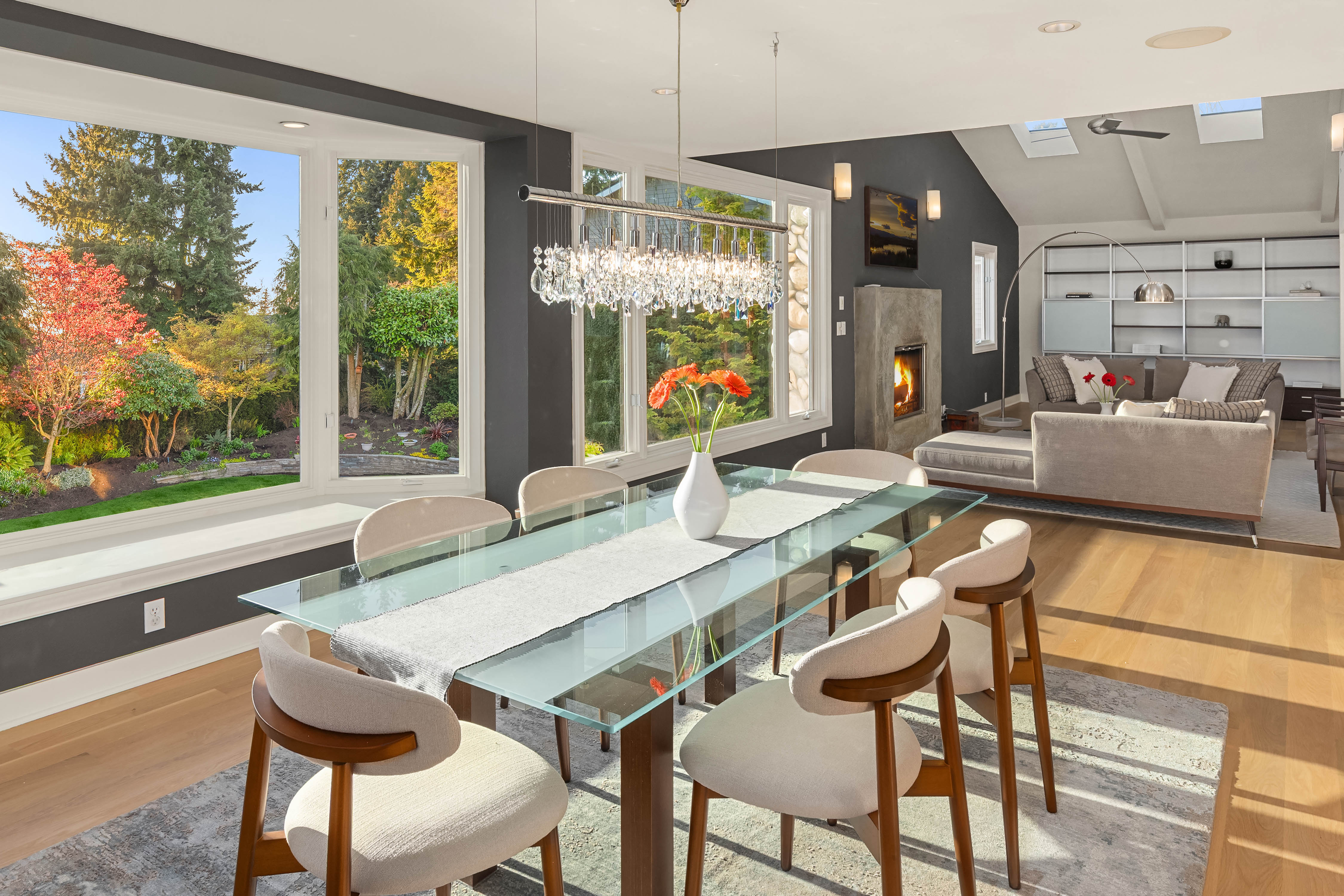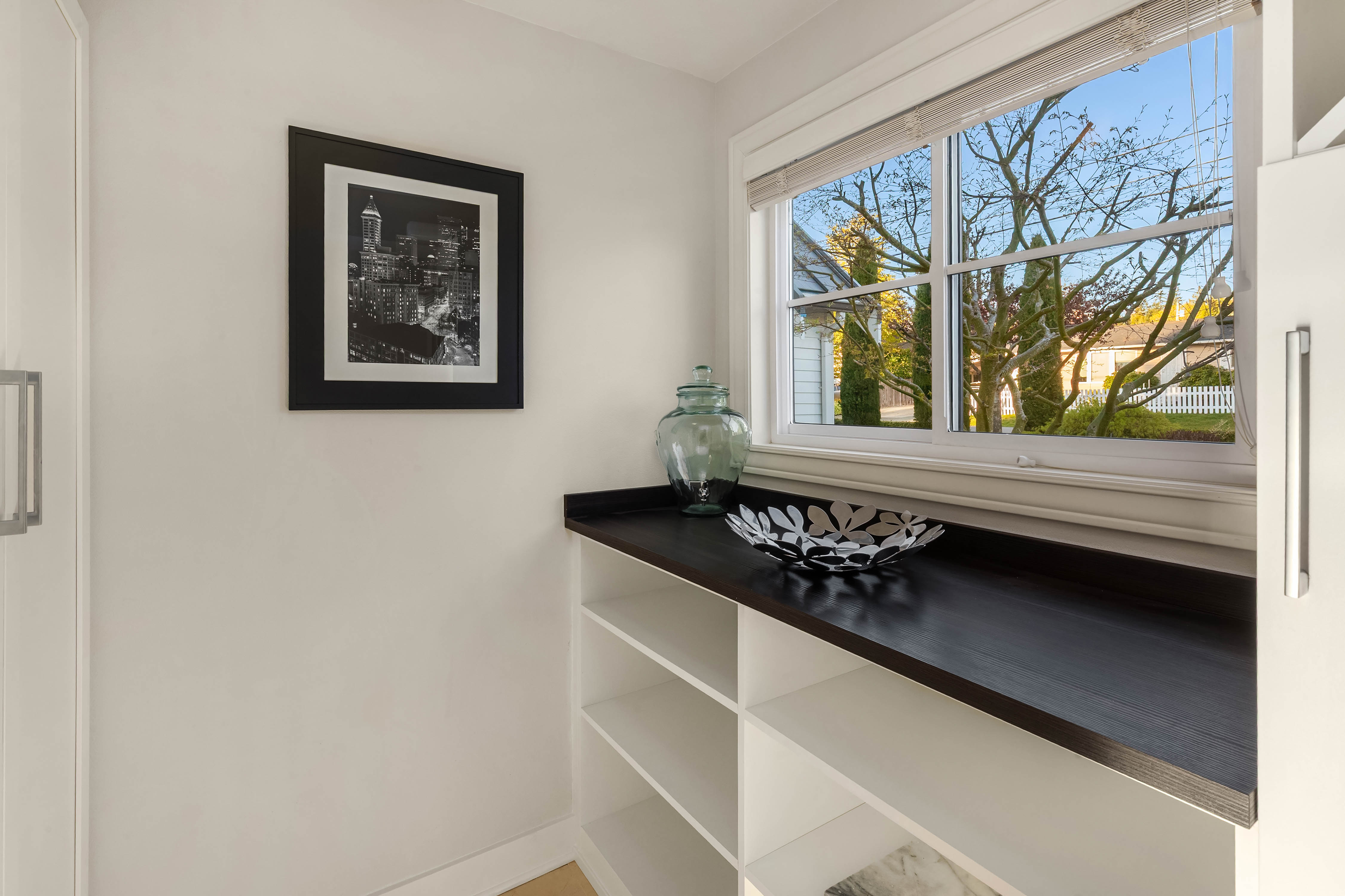 This exceptional Modern Farmhouse with a refined mid-century influence seamlessly blends timeless design with elevated contemporary living in the heart of Houghton. Featuring 4 bedrooms, an office and 3 bathrooms, the home is thoughtfully designed for both effortless entertaining and sophisticated everyday living. At its center, the Danish-designed chef’s kitchen is a true showpiece, highlighted by oversized single-slab granite countertops, premium stainless-steel appliances, and a sleek induction cooktop. Radiant heated tile floors warm the kitchen and entry, while solid white oak hardwoods add warmth and elegance throughout the main living spaces. Expansive windows flood the home with natural light, creating a bright, airy ambiance. Designed for seamless indoor-outdoor living, the spacious entertainment deck extends directly from the kitchen and is surrounded by lush greenery and palm trees, an idyllic setting for hosting or relaxing in complete privacy. The primary suite is a serene retreat, featuring a spa-inspired luxury bath and a custom California Closets system. A private view deck offers stunning sunsets along with captivating mountain and cityscape views. The daylight basement provides exceptional versatility with a separate entrance, ideal for a guest suite, home office, or potential apartment, along with new carpeting and generous storage. Set on a rare 12,500-square-foot level lot, the fully fenced and irrigated grounds create a private outdoor sanctuary. Professionally landscaped with mature plantings, landscape lighting, and a tranquil waterfall reminiscent of an English garden, the property also features a large flat lawn with ample space for a future sport court or pool. Additional highlights include generator readiness, an oversized 2 car garage and parking with space for three vehicles in the driveway plus easy street parking. A peaceful neighborhood setting located just minutes from Metropolitan Market, Starbucks, and the International School, with a 15-minute stroll to Houghton Beach and quick access to the Kirkland Cross Corridor. Close to Google and an easy commute to Microsoft and Amazon, all within the award-winning Lake Washington School District. A rare opportunity to own a private sanctuary in one of Kirkland’s most sought-after neighborhoods, where lifestyle, location, and design come together beautifully.