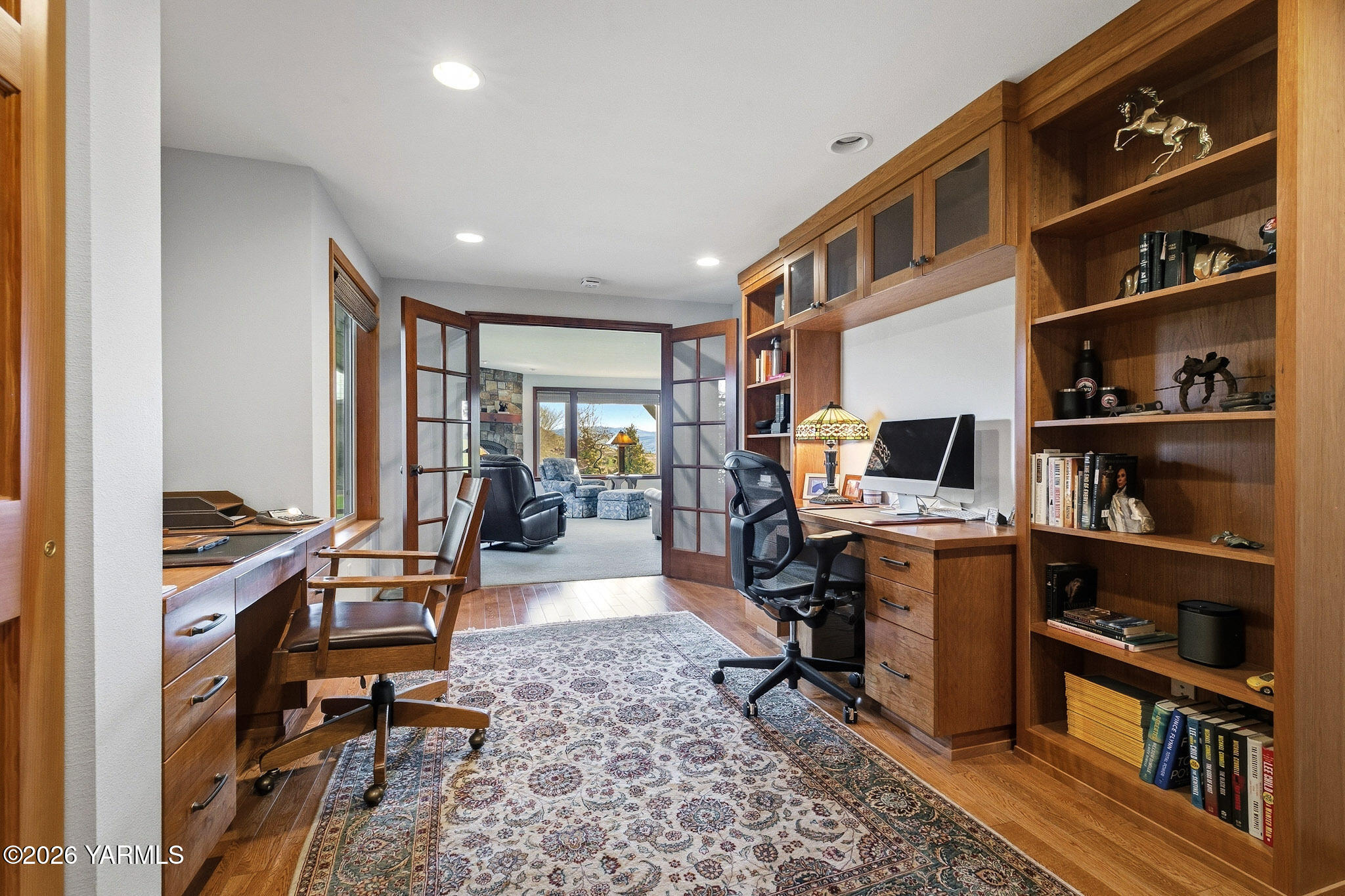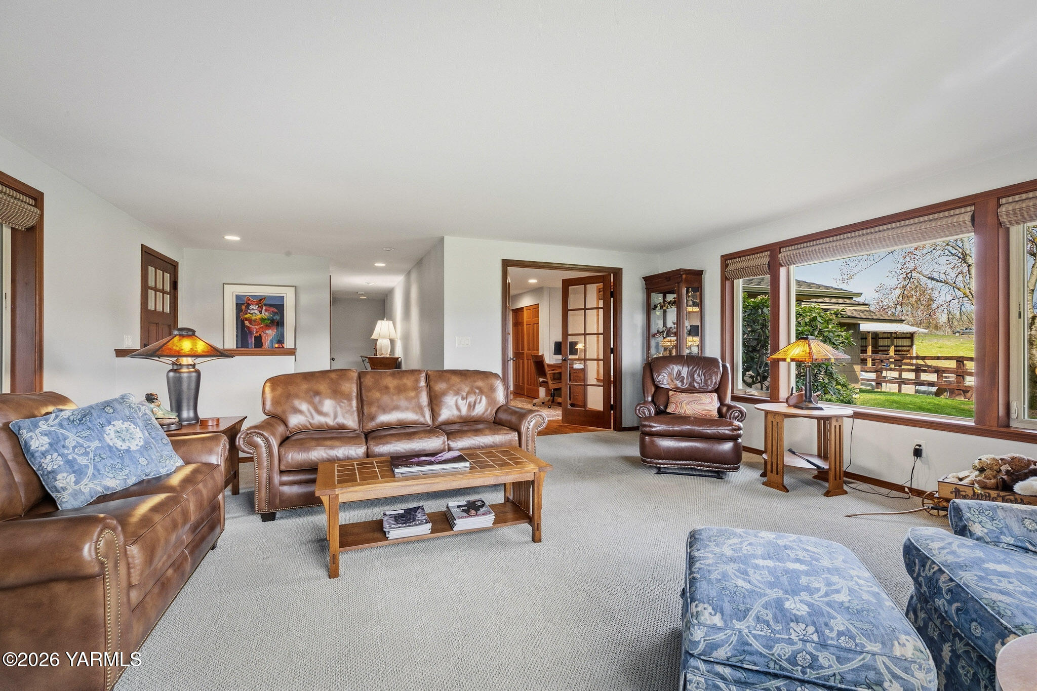 Showplace equestrian property featuring a stylish, upgraded single-level home, pool with cabana, and a full complement of outbuildings. Improvements include a horse barn with finished/heated tack room, 3-bay utility building, shop, and loafing shed--all fenced and supported by senior water rights. Meticulously maintained and thoughtfully remodeled/expanded by Mike Fisher and Justin Wolf, the home offers exceptional quality and finishes throughout, including a flexible office space thoughtfully created from a former bedroom - retaining its closet for those needing a fourth bedroom option.Additional highlights include a lifetime Corning roof, new furnace, pool solar heating, and a standby generator. Mature landscaping, ample off-street parking, and a well-designed layout complete the property. A turn-key opportunity for refined country and equestrian living.