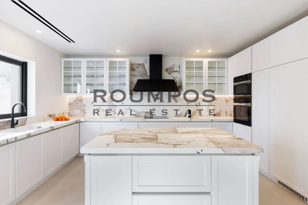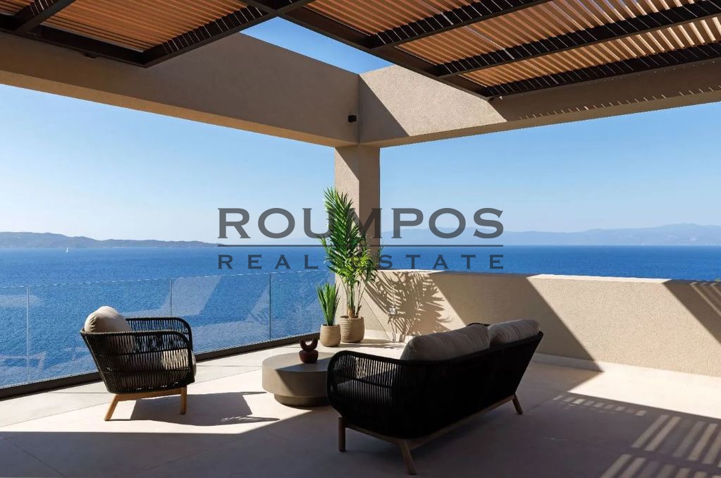 This impressive newly built 410 sq.m. residence is located in Ververonda on a 1,300 sq.m. plot, just 150 meters from the sea. The luxurious property features 6 spacious bedrooms, 6 elegant bathrooms, and 1 WC. It is sold fully furnished with carefully selected décor and modern design.