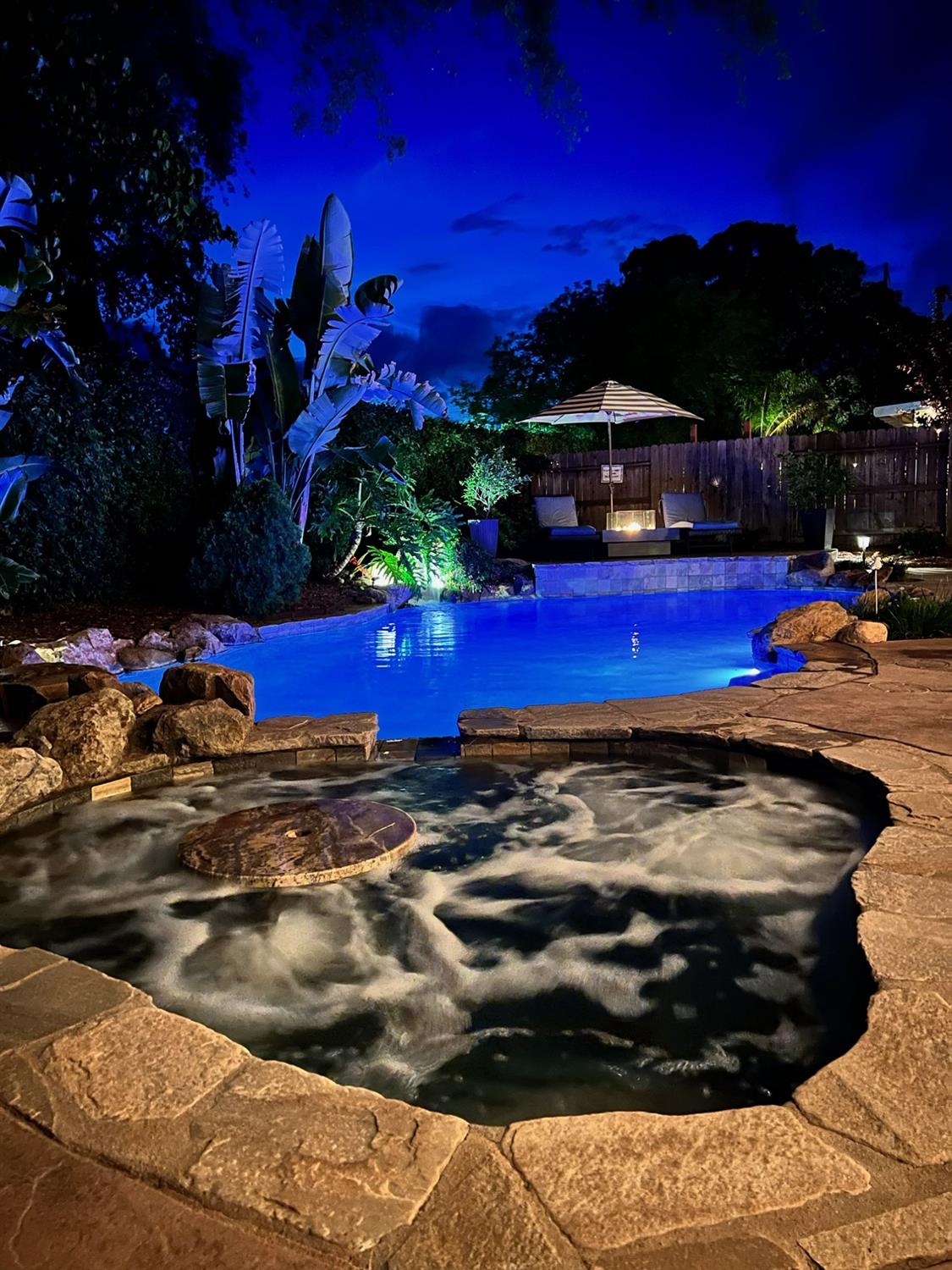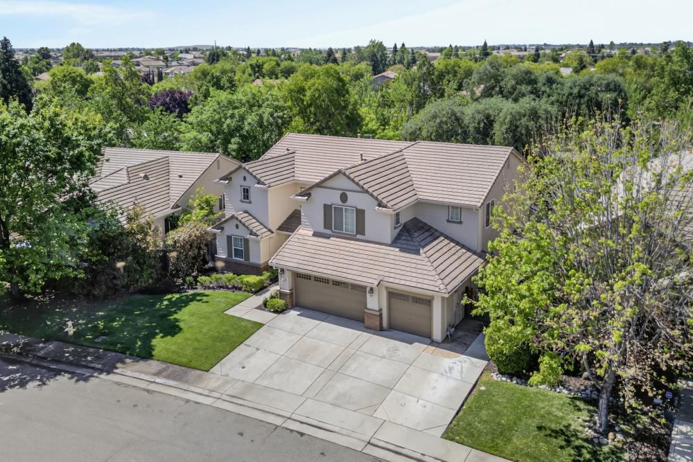 This immaculate home in the highly desired Lincoln Crossing community is perfectly positioned on a cul-de-sac, a few houses away from a tranquil nature preserve with scenic trails and a nearby park. Pride of ownership is evident at every turn, as this 3,717 sq. ft. home features 5 bedrooms, 3 full baths, an additional multi-purpose room and a 3-car garage, on a large .20 sq. ft. lot. If you are looking for outdoor living, look no further. An incredible backyard oasis awaits with an in-ground pool & spa surrounded by a hand laid full rock perimeter, with a cascading waterfall feature. And for entertainment and enjoyment, a custom-built outdoor bar with all the amenities including a mounted TV, audio, wine fridge, mini fridge, kegerator fridge, taps and beautiful wood counters with seating. Enjoy the views of this serene backyard overlooking the pool/spa/bar on an elevated patio with a firepit. This home boasts an open floorplan with an abundance of natural light and freshly painted throughout. The main level offers high end wood flooring with new carpets and a lower-level bedroom with adjacent bathroom. The living room offers views of the backyard pool area, complemented by a cozy fireplace. The gourmet kitchen features an oversized island, ample cabinetry, and a walk-in pantry. Upstairs, the impressive master suite includes yet another gas log fireplace, a large sitting area, a large walk-in closet and a spacious bathroom featuring a soaking tub and shower. Additionally, the upper-level hosts three other bedrooms, plus the multi-purpose room. Other features include, owned solar panels, multi-zoned HVAC systems, custom shop set-up in garage with epoxy floor, custom shelving and work bench throughout, tv mounted on wall and 220 electric. In addition to the outside parking in front of garage, seller had a 6-inch reinforced concrete slab with rebar for 4th parking spot installed on the right side of driveway. And stamped concrete walking path around home. If you have dogs, the park in the nature reserve has Lincoln's largest dog park and Lincoln Crossing Elementary school is within walking distance from home. For further recreational opportunities & enjoyment, the HOA/community clubhouse offers a wealth of amenities, including indoor and outdoor pools, a gym, tennis/pickle ball courts, playground, fiber internet for homeowners and much more!