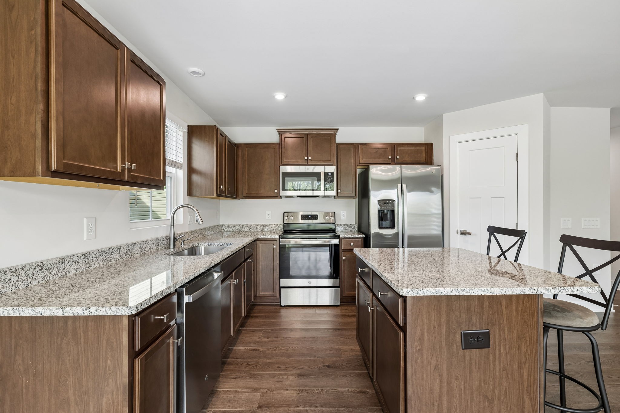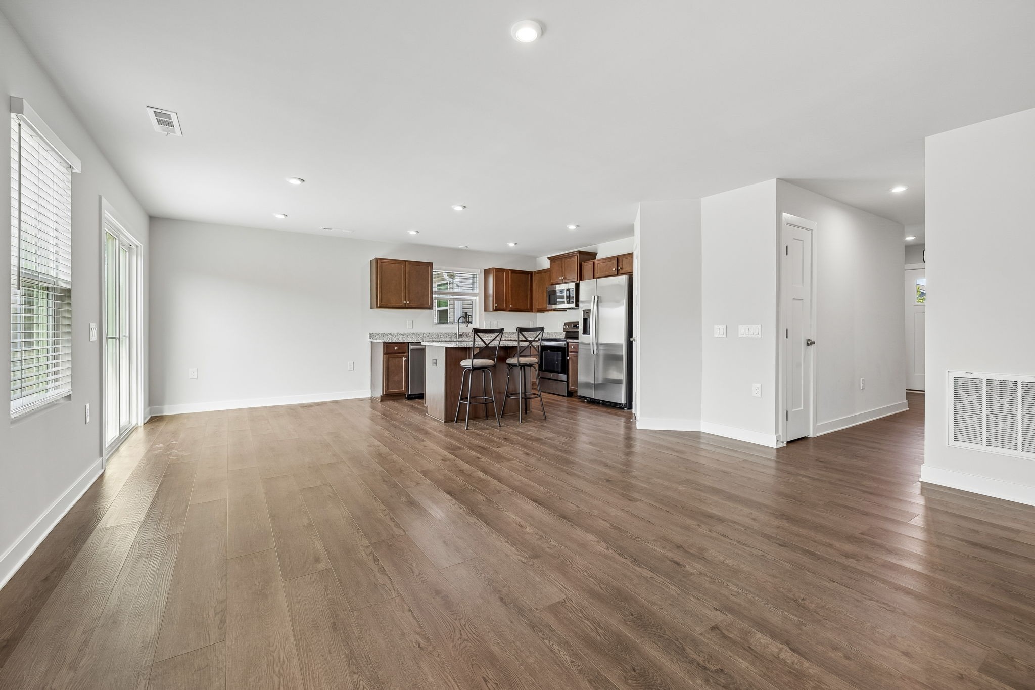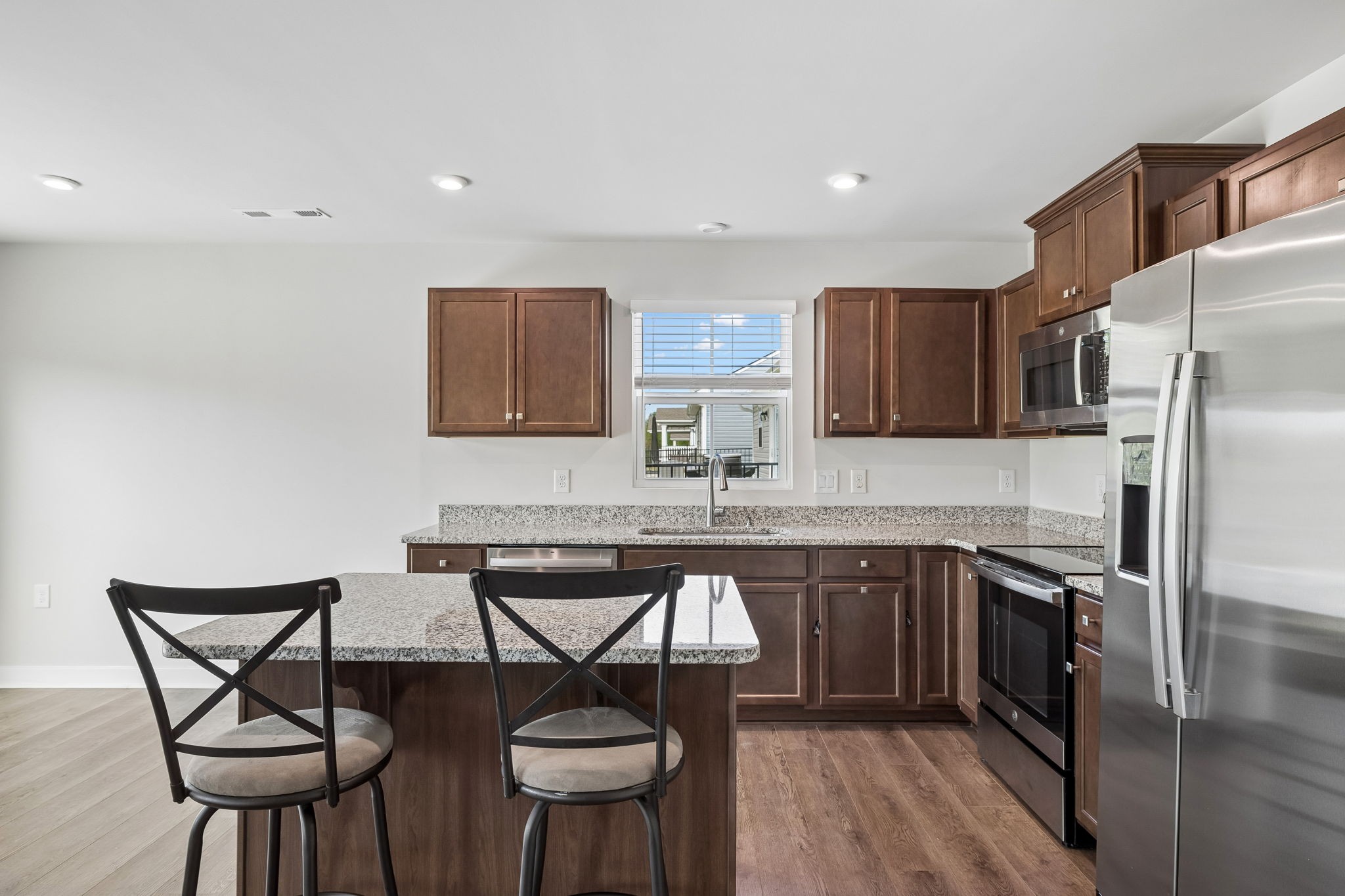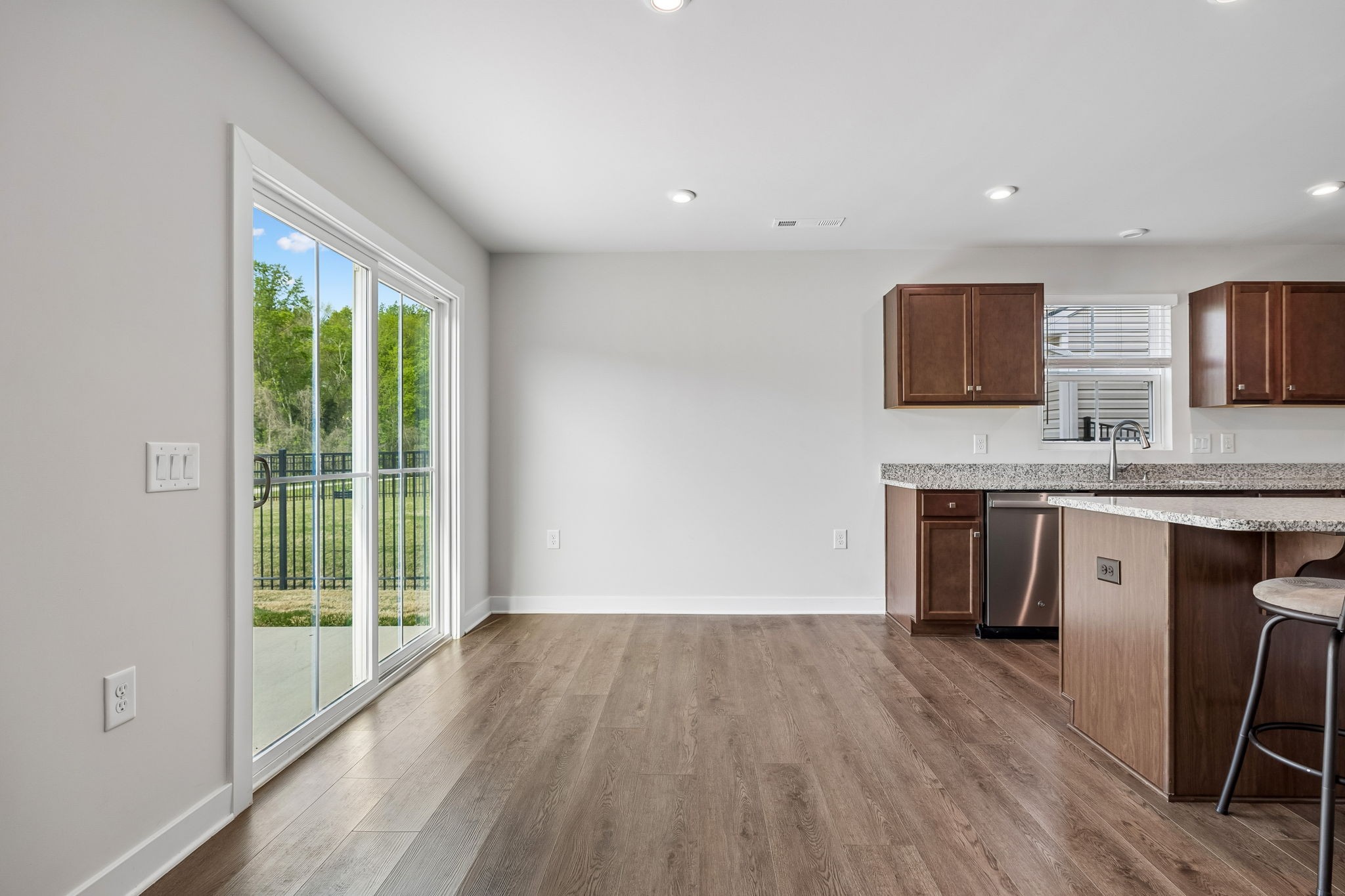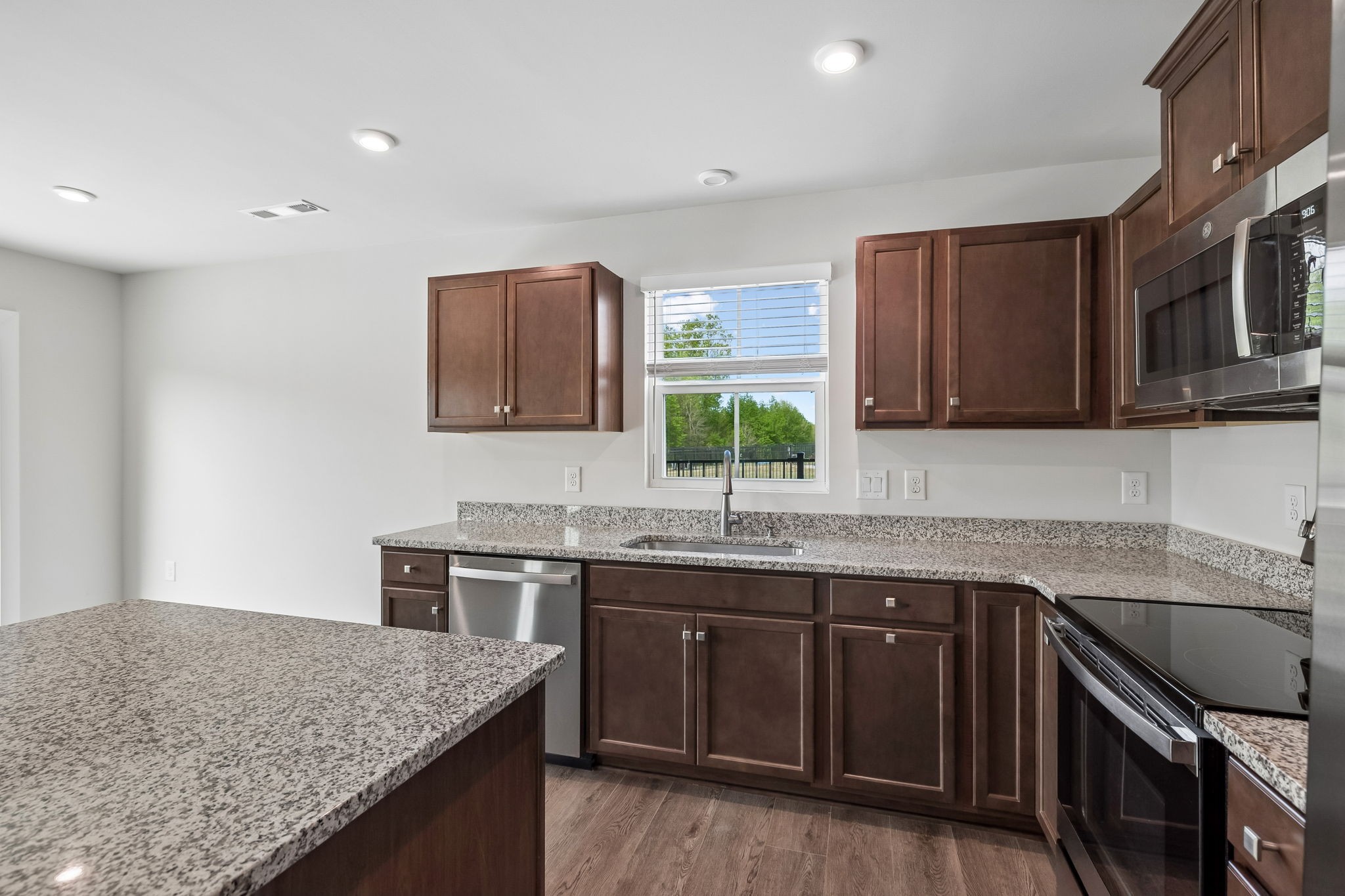 Welcome to this beautifully maintained 3-bedroom, 2-bath home in the Fields of Oakwood, tucked away on a quiet cul-de-sac. This move-in ready property features granite countertops in the kitchen, durable LVP flooring throughout, a tankless water heater and an open, functional layout ideal for everyday living and entertaining. Step outside and enjoy easy access to the neighborhood walking trail right behind your home—perfect for evening strolls or morning walks. Even better, the HOA takes care of lawn mowing and mulch, offering a low-maintenance lifestyle you’ll love. Meticulously cared for and ready to welcome you home!