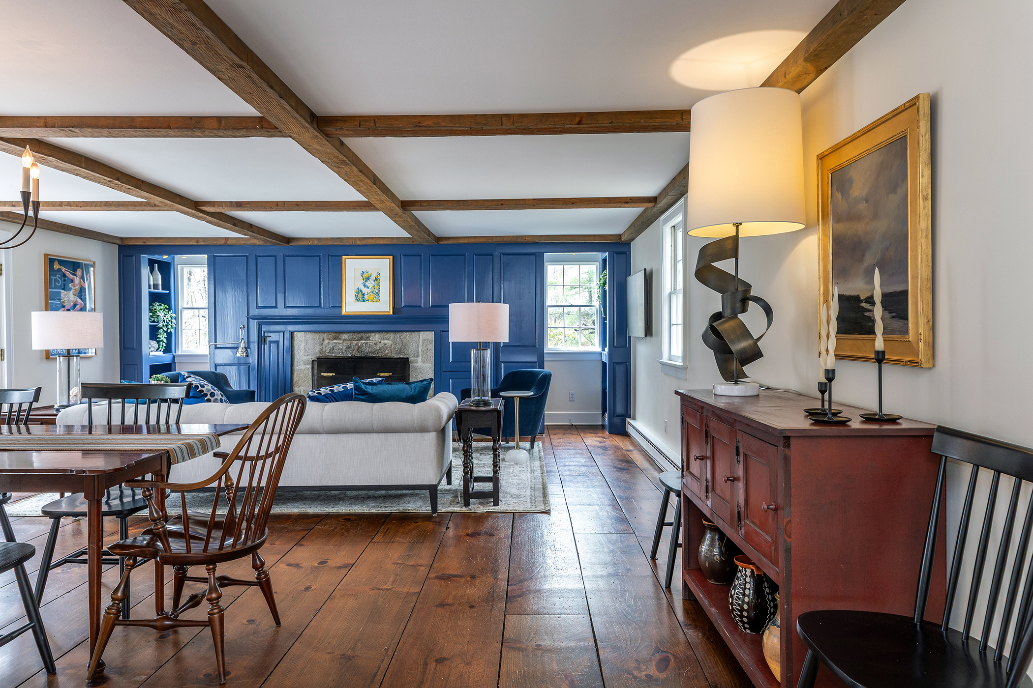 The Ultimate Turn-Key Bridgewater Village Estate. Experience a masterfully updated turn of the century Colonial that perfectly blends historic charm with modern amenities. Located less than a mile from the Bridgewater Village Store and Town Park, this 4BR/3BA retreat offers a rare "in-town" lifestyle that is also a private sanctuary. Highlighted by over 300 linear feet of new and updated artisanal stone walls, the grounds feature Japanese-inspired plantings, privacy plantings and curated walking paths. The heated gunite pool has been fully updated and refinished, complemented by a new deck and expansive stone patio - creating a resort-level outdoor entertaining suite. The interior boasts a gourmet kitchen, main floor primary option, oversized family room, formal living room and two classic fireplaces. Upstairs you will find three bedrooms, including a second floor primary option and two ample bedrooms. Significant infrastructure upgrades include the addition of central air, extensive exterior work and land leveling along with thoughtful gardens - designed to bloom throughout the warmer seasons. A detached barn features a 600 sq. ft. finished space, providing the ideal footprint for a sophisticated home office, or future potential guest space. Rarely does a property combine this level of historic charm with such extensive, high-end site improvements. A true turn-key 'Classic Connecticut' home in a coveted setting.
