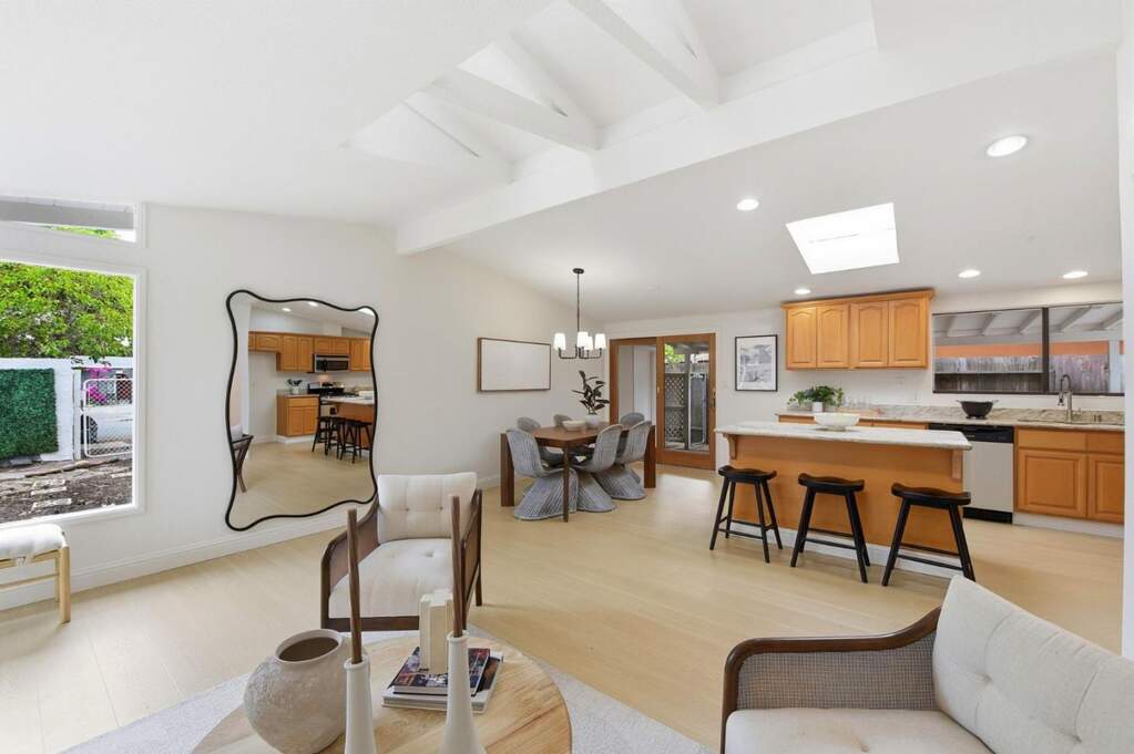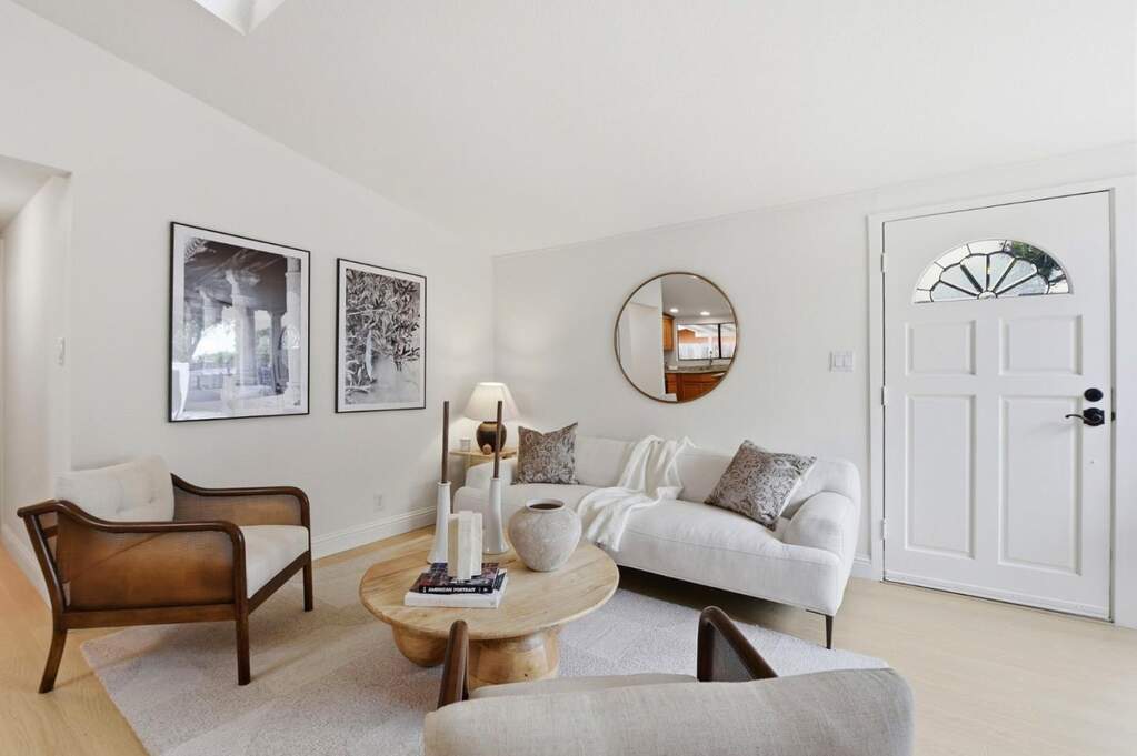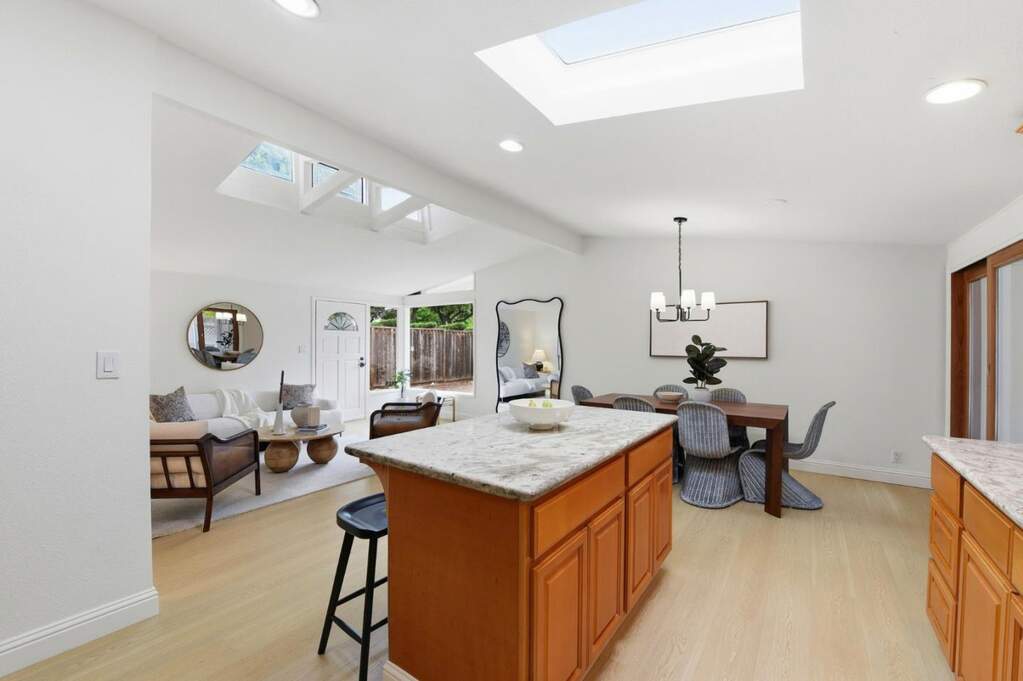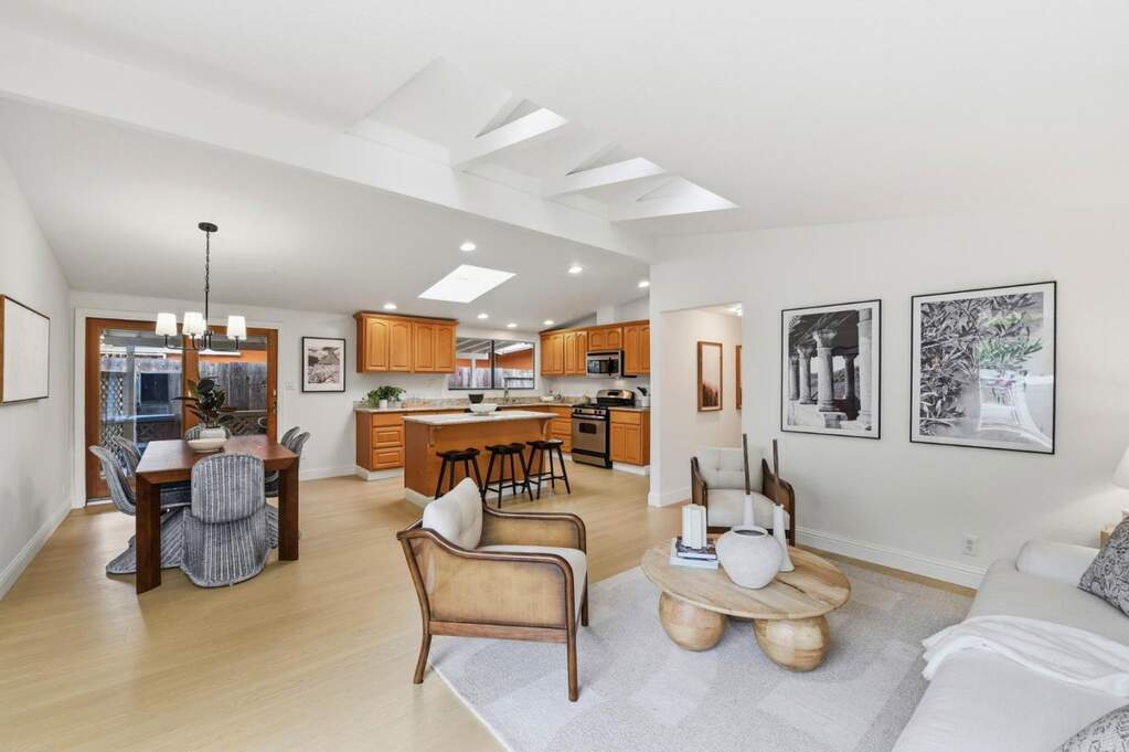 Centrally located Sunnyvale home in Lakewood Village. This home has so many possibilities. Live in it the way it is or potentially split the lot and develop under SB9 (dual urban opportunity housing). Buyer to verify with the City. The property currently has a front house and a Cabana/ADU. Updated 3/2 front house has been freshly painted, new flooring, new lighting, updated heating system, and updated primary bath. Large windows flood the home with natural lighting. Dual pane windows. The kitchen has been previously remodeled with a gas stove and granite countertops. New dishwasher. Washer and dryer stay with the front house. 2-car garage has plumbing for shower and toilet. New roof was finaled 5/25. Charming Cabana/ADU is a 1/1 built in 2018 with permits. ADU does not have heat or a kitchenette. This is a must see. Property is located in the middle of a tree-lined street. Easy access to 101 and major tech companies.