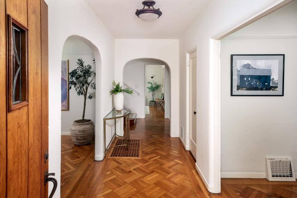 An architectural gem in Palo Alto's Green Gables neighborhood, this elegant English Tudor by renowned architect Charles Sumner sits on a coveted corner lot along Christmas Tree Lane. The timeless design features steep gabled rooflines, divided-light windows, smooth stucco, graceful arched entry, and beautiful hardwood floors all thoughtfully preserved. The ideal floor plan offers 4 bedrooms, 3 baths, and spacious formal living and dining rooms. Set behind a lush lawn framed by mature trees, the private gated rear yard is perfect for play and entertaining, with ADU potential (conceptual plans available). Steps from Rinconada Park, Walter Hays Elementary, the Community Center, Library, Art Center, and Stanford University a rare opportunity to own a piece of Palo Alto architectural history.