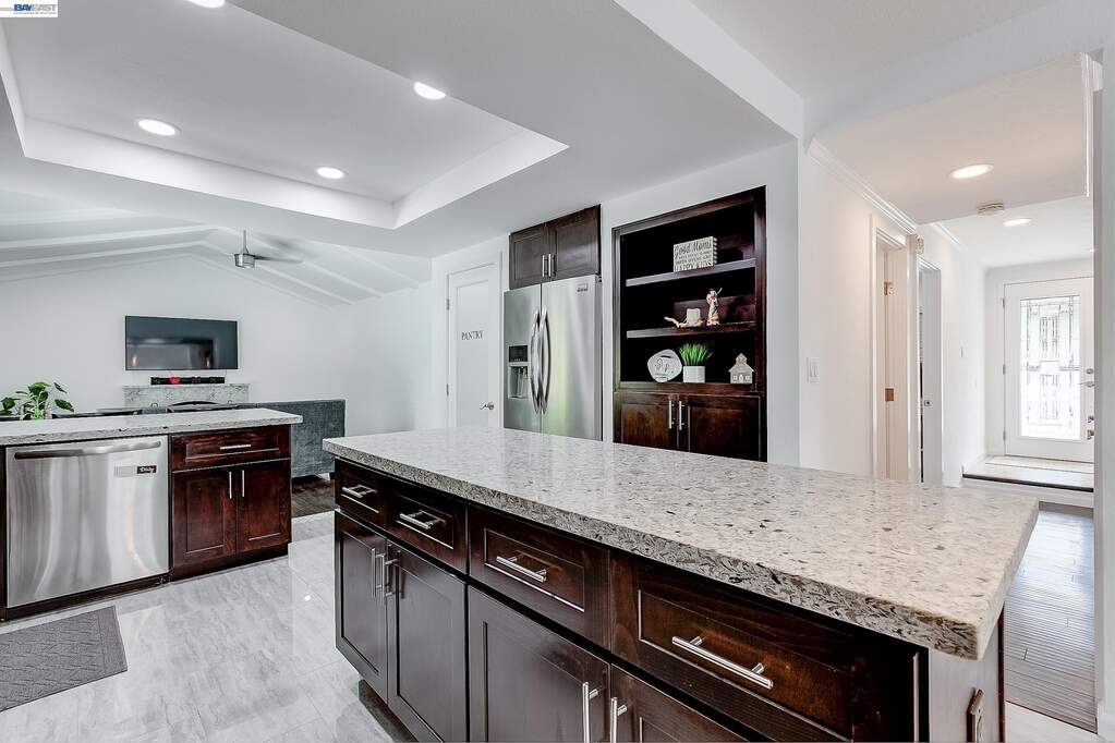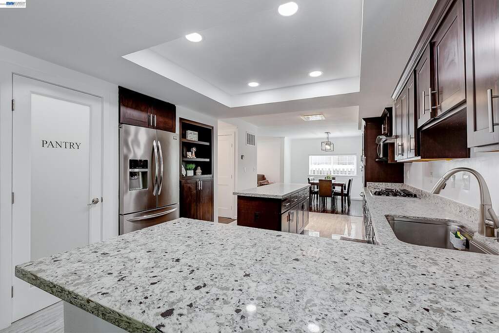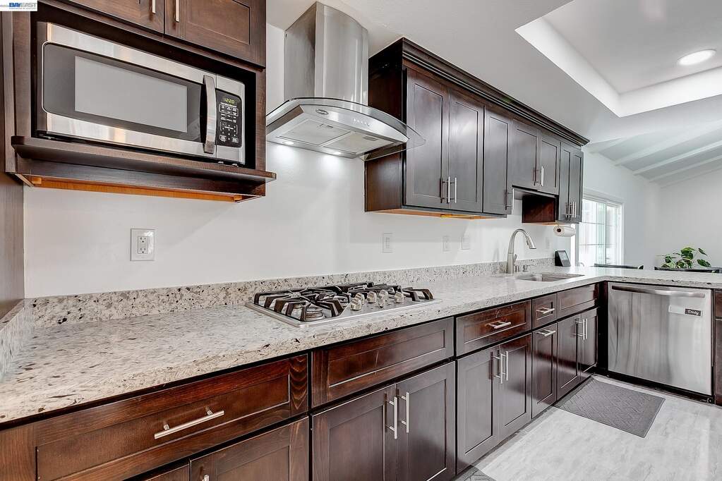 Gorgeous, move-in ready home located in one of Castro Valley's most coveted neighborhoods. This beautifully updated 4-bedroom, 2.5-bath residence with fresh interior paint throughout offers a formal living room and dining room, creating a welcoming first impression. The spacious kitchen is appointed with granite countertops, stainless steel appliances, and opens seamlessly to the family room, making it ideal for both everyday living and entertaining. A convenient downstairs bedroom and half bath provide flexibility for guests, extended family, or a home office. Upstairs includes two light-filled bedrooms with an updated hall bathroom, along with a private primary suite featuring a walk-in closet, updated stall shower, and separate soaking tub. The backyard is an entertainer's dream with ample space, a well-maintained hillside, a treehouse, and added privacy. Additional features include a spacious two-car garage with laundry and side access. Ideally located near award-winning schools, Lake Chabot Regional Park, shopping, dining, and with convenient access to BART and major freeways. Walking distance to Greenridge Park.