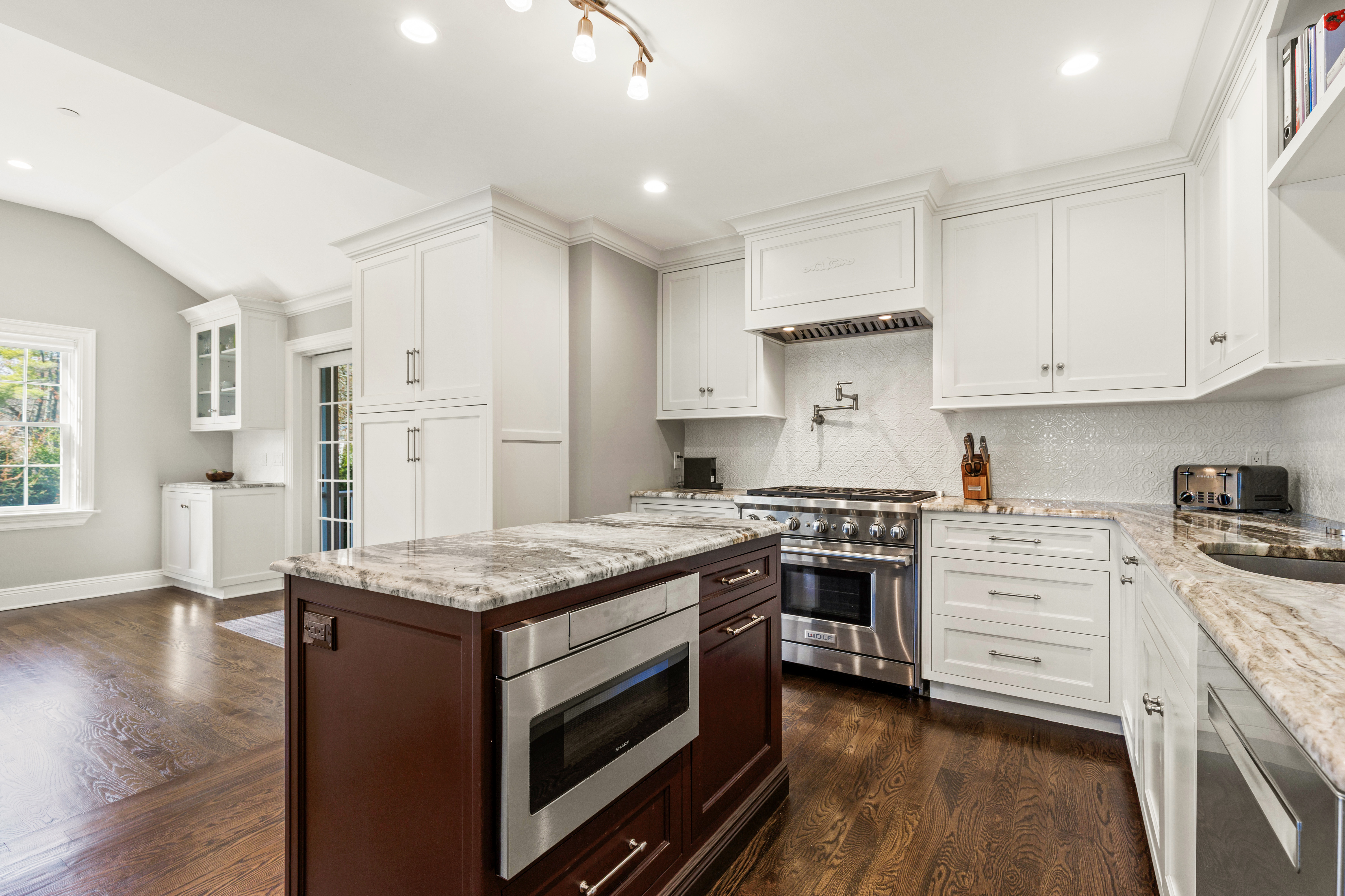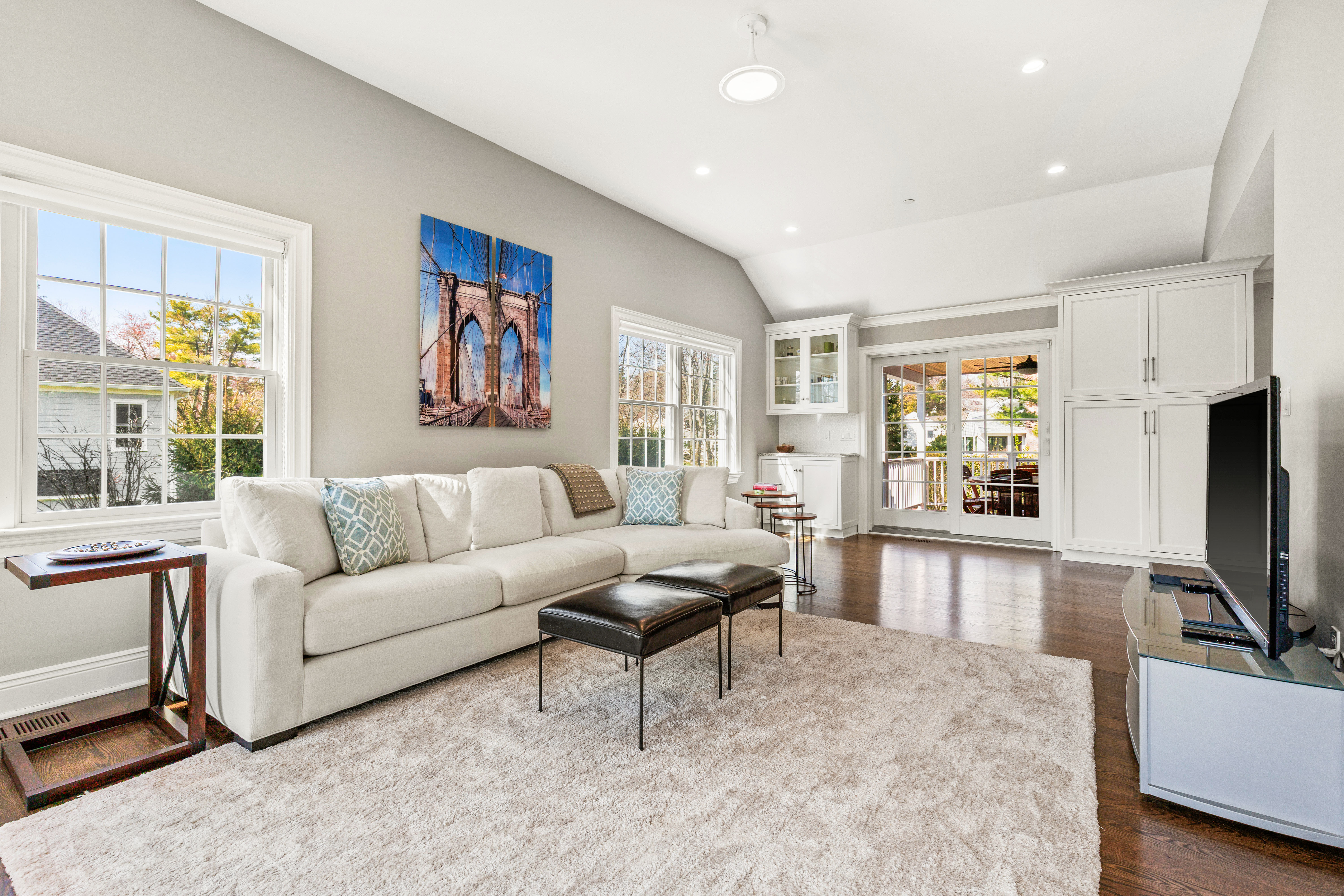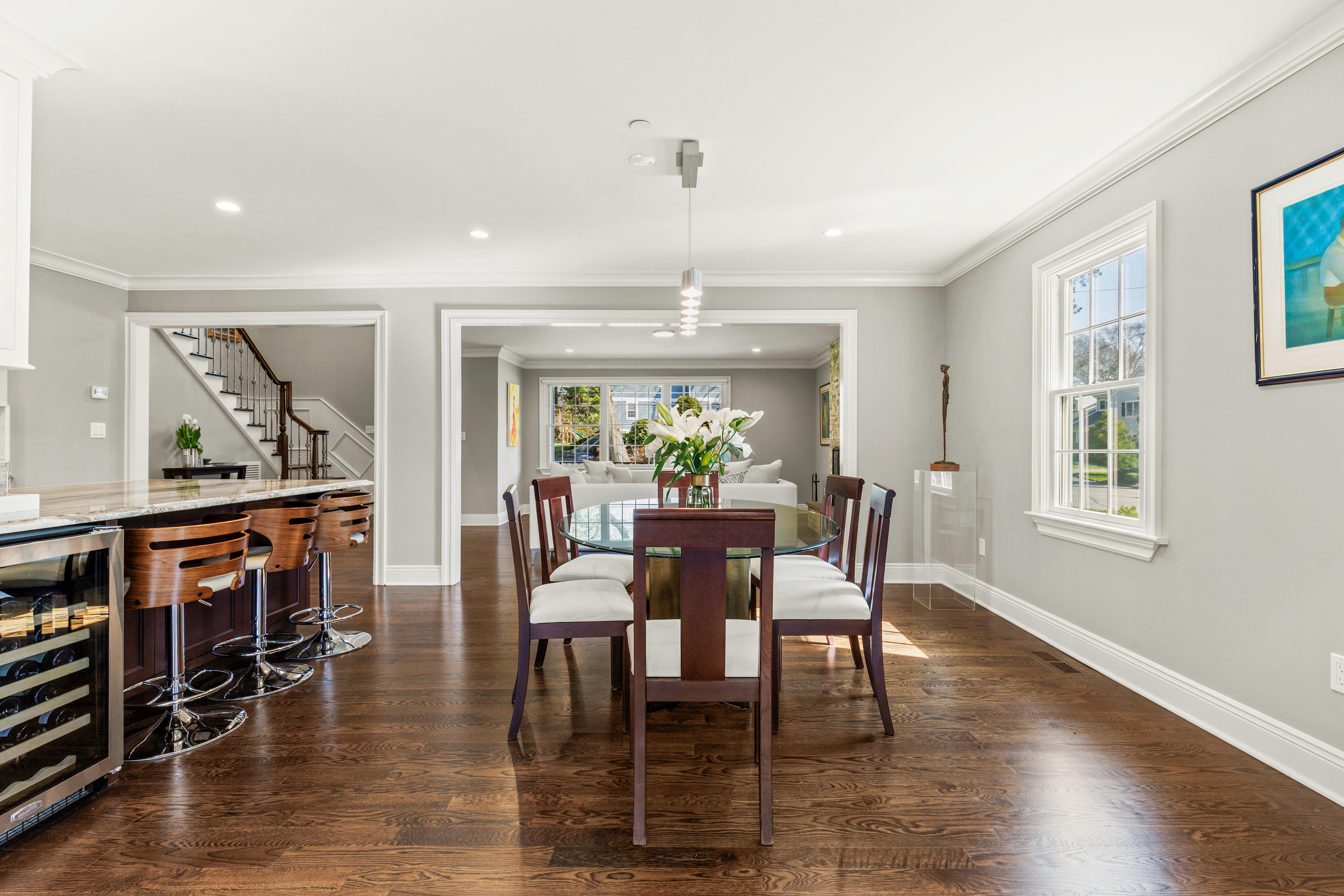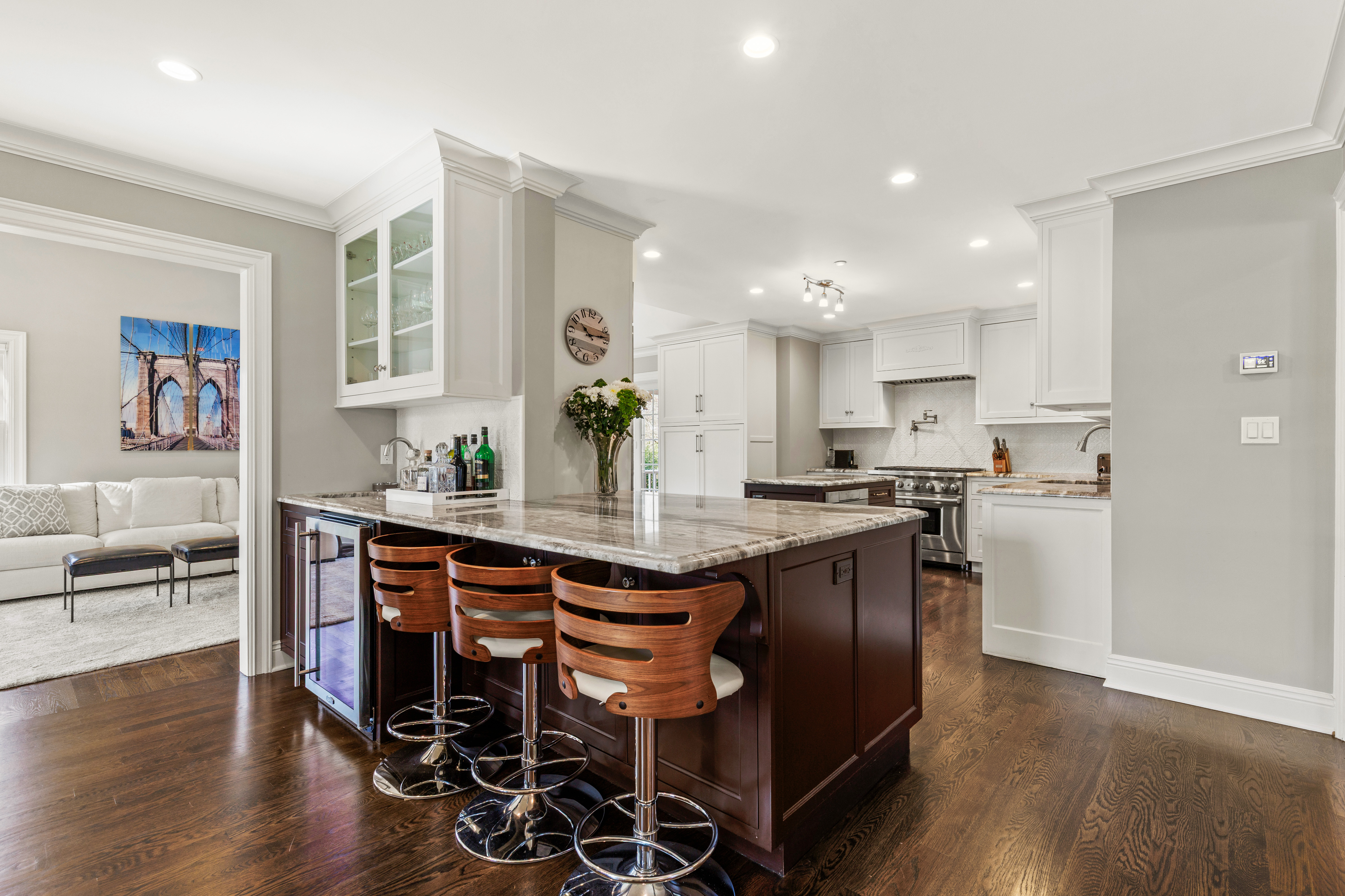 Entirely renovated in 2016 and set on 0.42 landscaped acres with a stunning pool, this stately Colonial offers five spacious bedrooms, four marble bathrooms, an expansive walk-out lower level, and a 2-car garage accommodating up to four cars. Located on a cul-de-sac in Sunny Ridge, this move-in ready home sits just .8 miles from the train station and downtown Harrison. The open-plan reception rooms include an elegant foyer with double-height ceiling, a living room anchored by a wood-burning fireplace, a dining room with a wet bar, and a family room with access to a covered deck for al fresco dining. The chef's kitchen features 2 islands and high-end appliances. Wide openings between rooms can easily be reduced or closed for more delineation without any compromise on natural light. One generous 1st floor bedroom has en-suite bathroom and can function as a primary while two very spacious bedrooms with walk-in closets share a hall bathroom. The second floor is divided between the statement primary bedroom suite with its high ceilings, oversized windows, two walk-in closets and an en-suite luxurious bathroom with double vanity, soaking tub and separate shower stall. A vast finished attic with two dormers and abundant storage completes the upper level, offering flexible space for a home gym, multiple workstations, or recreational use. The 1,188 SF walk-out lower level expands the living space with a playroom open to the poolside patio, a bedroom, a full bathroom, a laundry room, and 4 additional storage/utility spaces. A small mudroom area leads to the 1,057 SF, attached, 2-car garage with room for up to 4 vehicles, two automatic doors, and a side door. The beautifully landscaped property is partially level and partially sloped and fenced at the side and back. The 15 x 35 heated, gunite UV pool steals the outdoor show with its clean, contemporary lines and automatic cover with safety feature. Major systems, asphalt roof, lapped wood siding, and appliances are about 9 years old, except HWH replaced in 2019. 31 Garden Road is in pristine condition, has been meticulously maintained, and is ready to welcome it's lucky new owners!