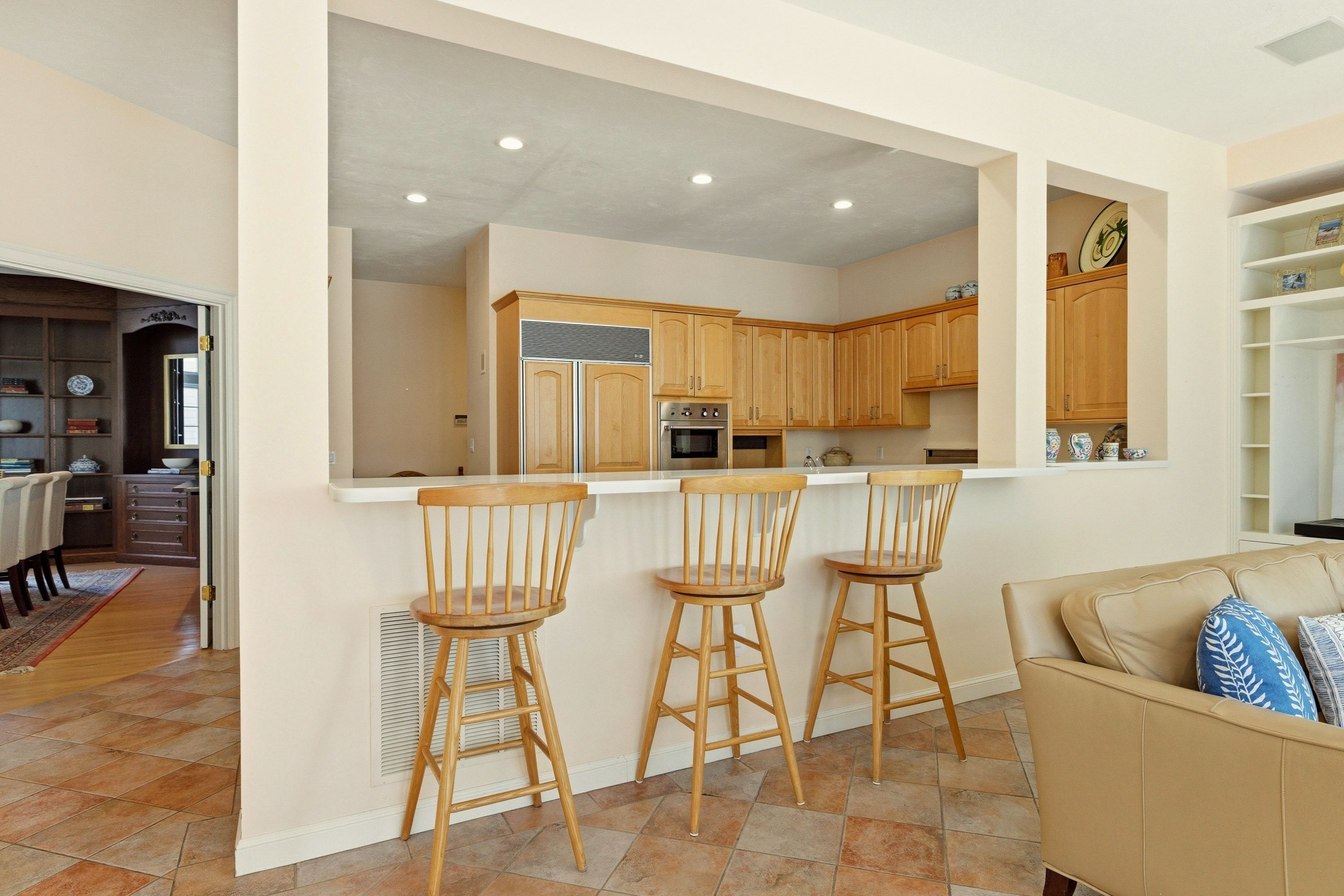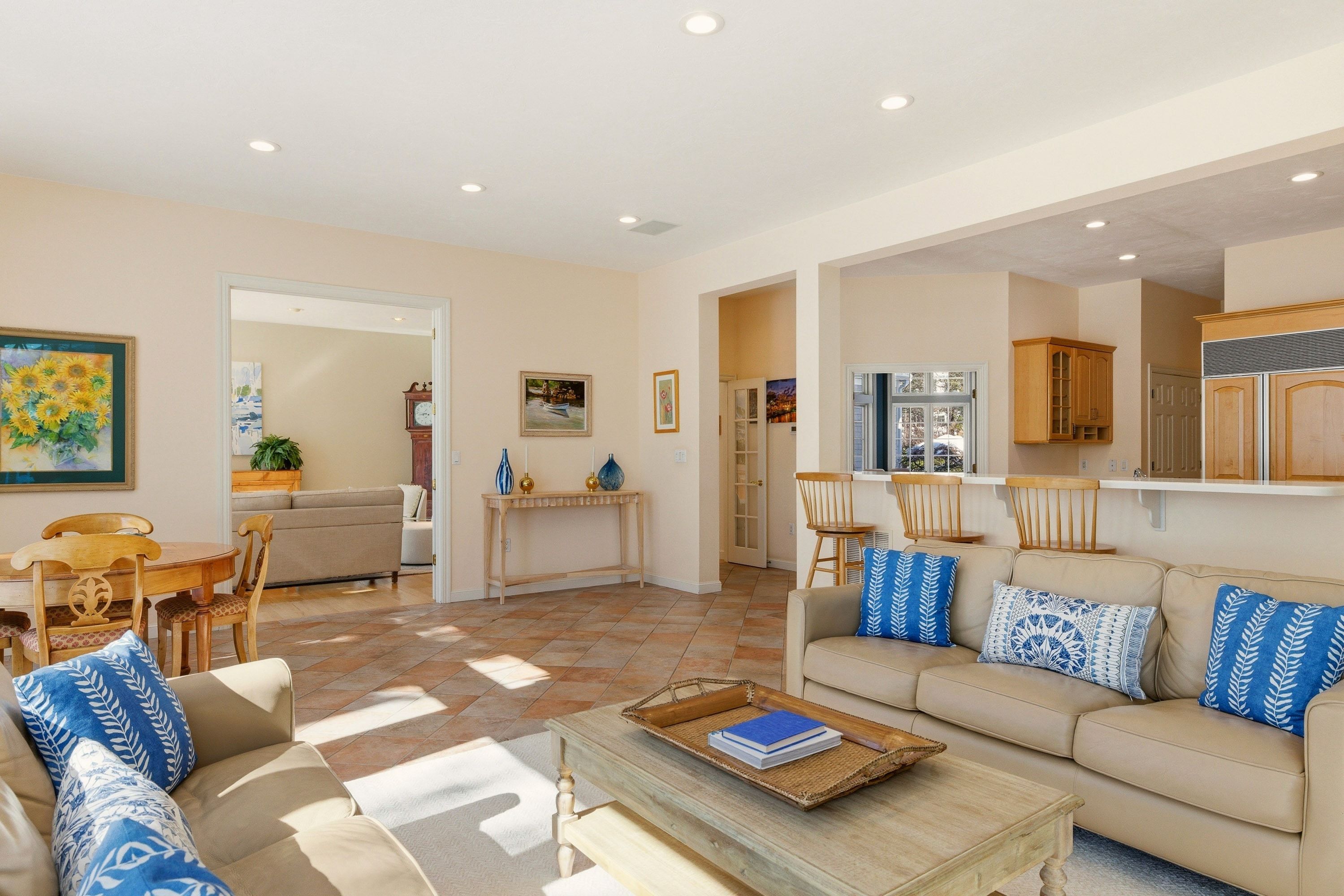 A rare offering in the coveted Marina Heights enclave of Wentworth by the Sea. This 4,200+ Sq. Ft., four bedroom (+office), six bath residence features an expansive main level with ten foot ceilings and floor-to-ceiling windows that frame breathtaking views of the Marina and the Atlantic Ocean, and maximize the southern exposure making the living spaces light and bright. A dramatic two-story foyer welcomes you into a sun-drenched living room, which seamlessly flows into a chef-friendly kitchen anchored by a long peninsula island for gathering. The kitchen is open to the family room that features a wood-burning fireplace. Step out onto the oversized deck—the ultimate vantage point for coastal entertaining. Functionality meets style with a dedicated mudroom and separate laundry room off the attached garage, and a large pantry off the kitchen. For intimate gatherings, the dining room has a cozy, tavern inspired feel with custom built-ins, and can easily accommodate many dinner guests. Widely considered the premier floor plan in the neighborhood, the main level offers *almost* one-floor living, with the luxurious primary suite just two steps up from the living areas. It includes direct deck access, a sprawling walk-in closet, and a spa-like bath with an oversized walk-in shower, soaking tub, and a water closet with a bidet. Upstairs provides three additional bedrooms (two en suite), plus an office, an additional 3/4 bathroom, and a cedar closet. The walk-out lower level features a six-seat wet bar, billiards area and a climate-controlled wine cellar, a dedicated space potential for a home gym and potting shed, all while maintaining direct outdoor access and ocean views. The attached three-car garage and exclusive access to the association pool, tennis courts, beach, and marina will seal the deal. New Castle taxes are famously low. Very walkable, bike-friendly, just minutes from downtown Portsmouth, beaches, boating, restaurants and more. Residents are prioritized for marina boat slips.