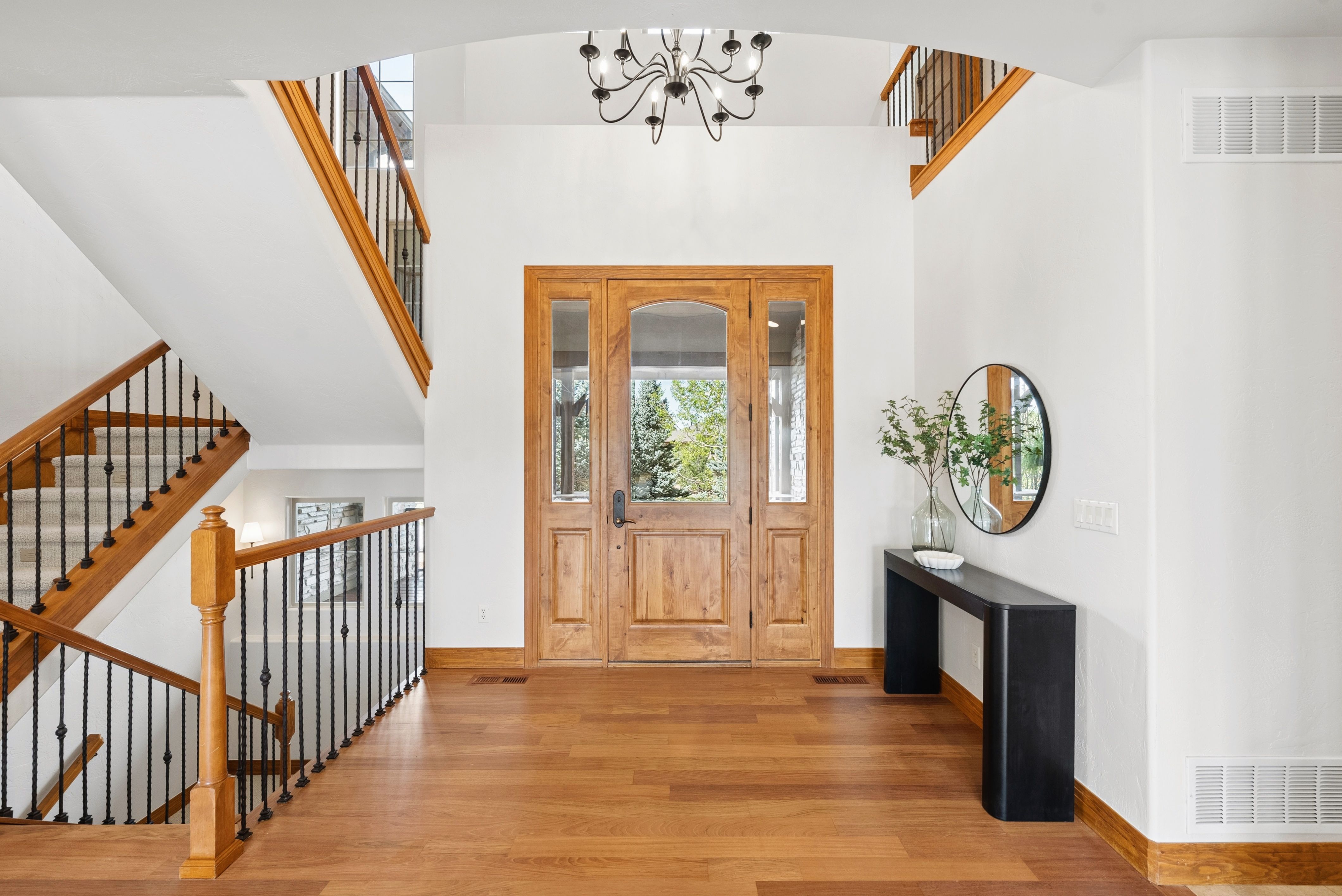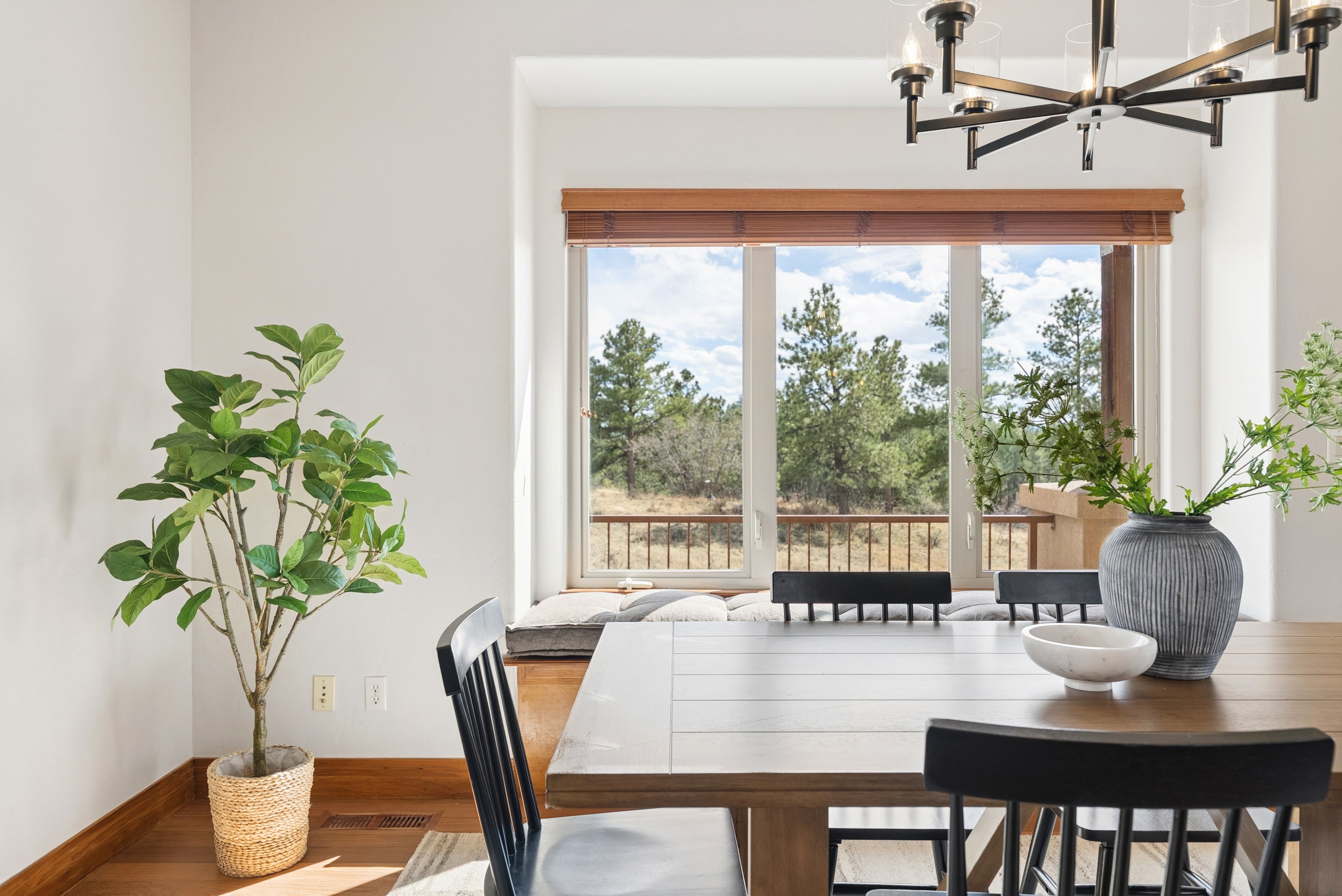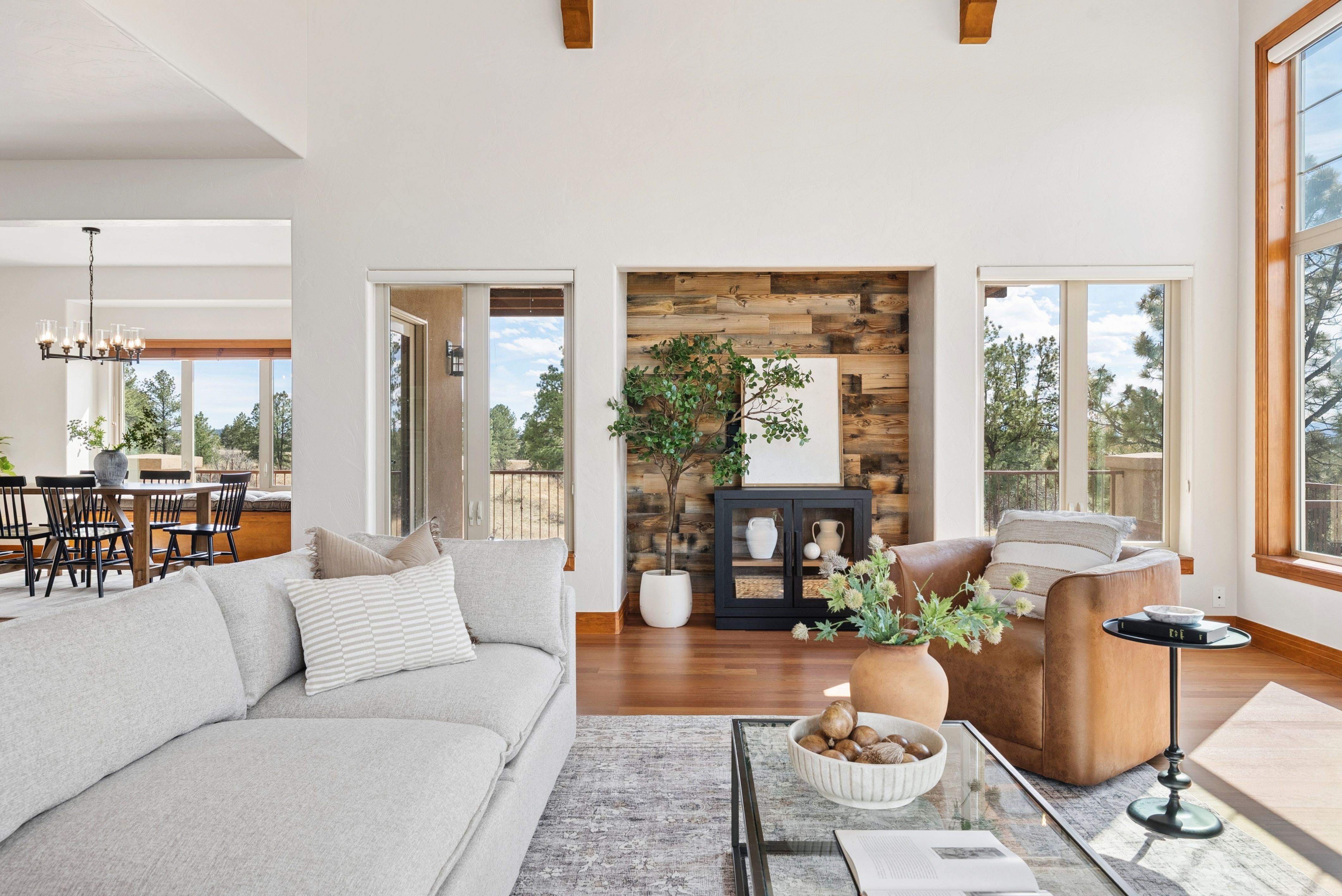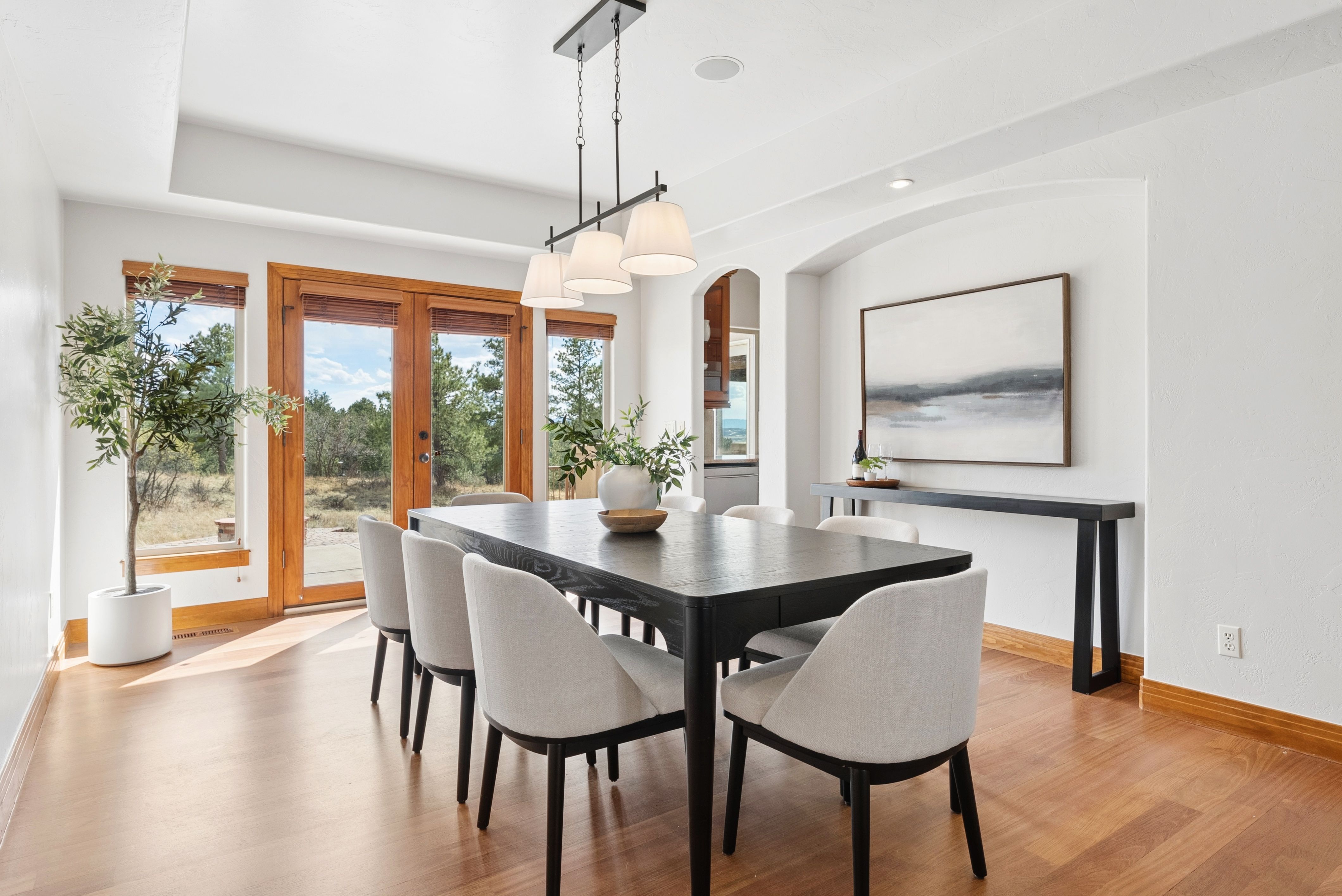 Set high on a hill in The Timbers and backing to open space, this custom two-story estate offers exceptional privacy on a beautifully treed 1.3-acre site, with sweeping mountain views that stretch from Long’s Peak to Pikes Peak. The setting is quiet and secluded, thoughtfully positioned to capture Colorado’s natural beauty at every turn. Beyond the setting, the home itself delivers soaring ceilings, rich wood beams, and expansive picture windows that frame the views and fill the space with natural light. The main level is anchored by a warm, inviting great room just off the kitchen, along with a formal dining room and a private study with fireplace. The kitchen is well-equipped and functional, featuring a large island with bar seating, a secondary prep sink, beverage refrigerator drawers, a wine refrigerator, and a six-burner Thermador gas cooktop. Double patio doors from the dining area open directly to the new deck, creating an easy indoor-outdoor connection. Fresh paint, newly refinished hardwood floors, and brand-new carpet (upstairs) bring a clean, updated feel throughout. Upstairs, four bedrooms include a spacious primary suite with a sitting area, fireplace, and private deck positioned to take in the full span of mountain views. Each secondary bedroom offers direct bathroom access and walk-in closets, creating a thoughtful upper-level layout. The finished walkout basement adds a dedicated theater/media room, large family room with bar, exercise room, and a private guest suite with bath. Outdoor living takes center stage with a newly built deck and expansive patio, complemented by multiple fire pit areas, hot tub, and garden beds, all oriented toward the peaceful, panoramic landscape. A side load four-car garage and high end garage cabinetry completes this ideal home. A complete offering in The Timbers, combining a spacious lot, thoughtful layout, mountain views, and a compelling price point.