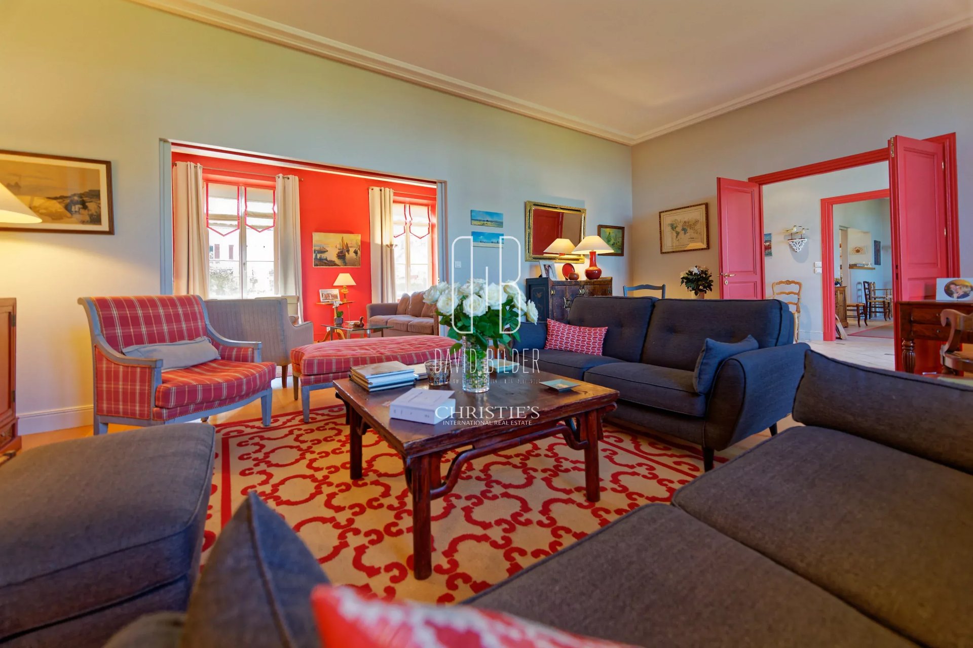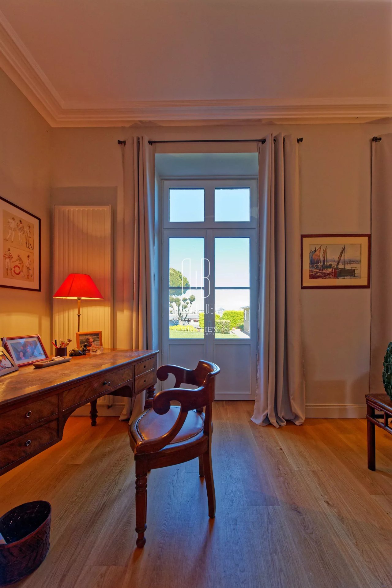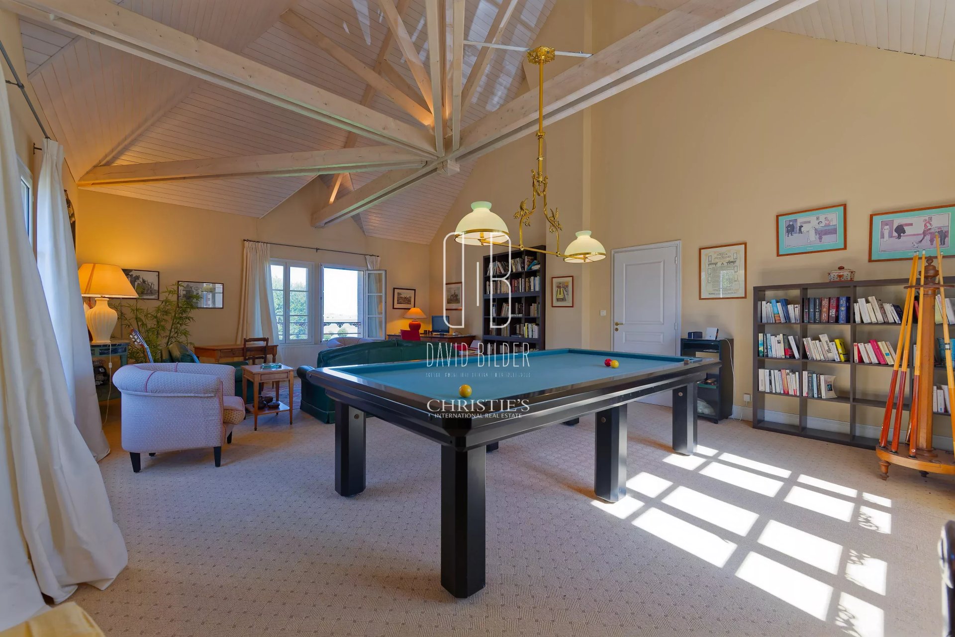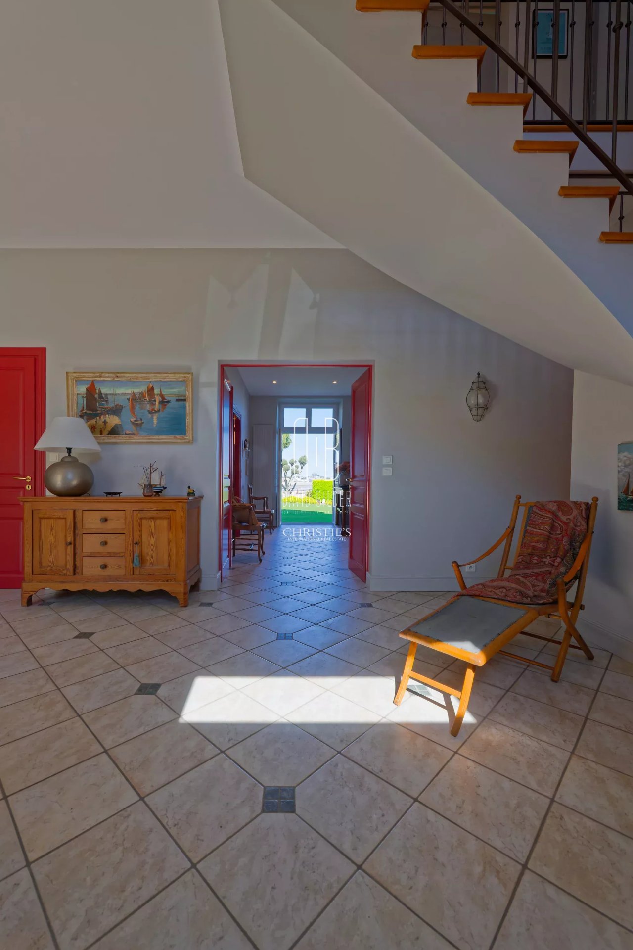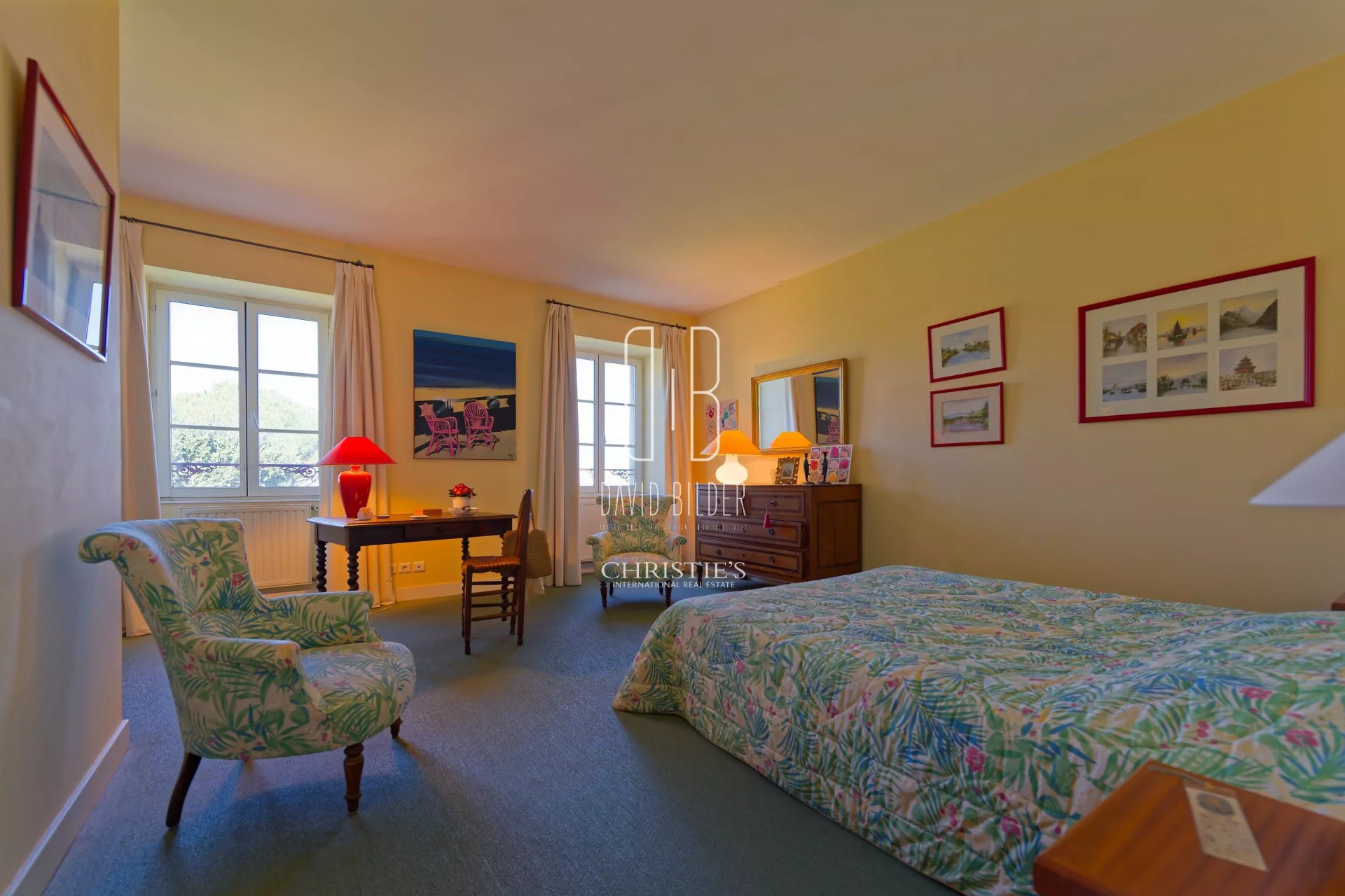 The main house totals 440 m² of living space on three levels. Generous volumes on each floor: 100m2 of living spaces facing the sea and sea view, 9 bedrooms including 5 suites facing the sea, billiard room, large garage.