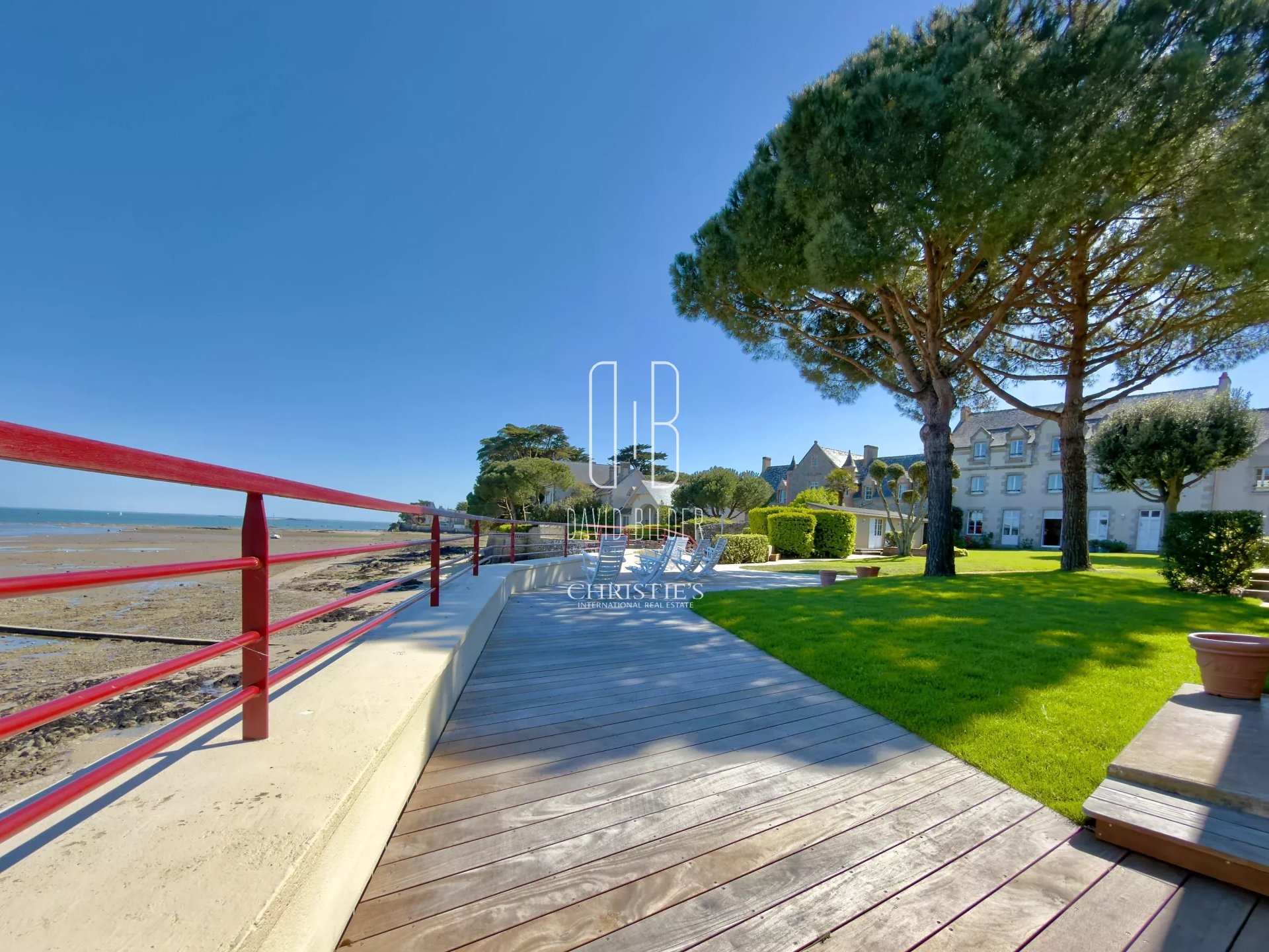 The property is organised around a fully enclosed park of 1,775 m², planted with large pines and maritime species. In the perimeter wall, a pedestrian door: on the other side, the beach...
