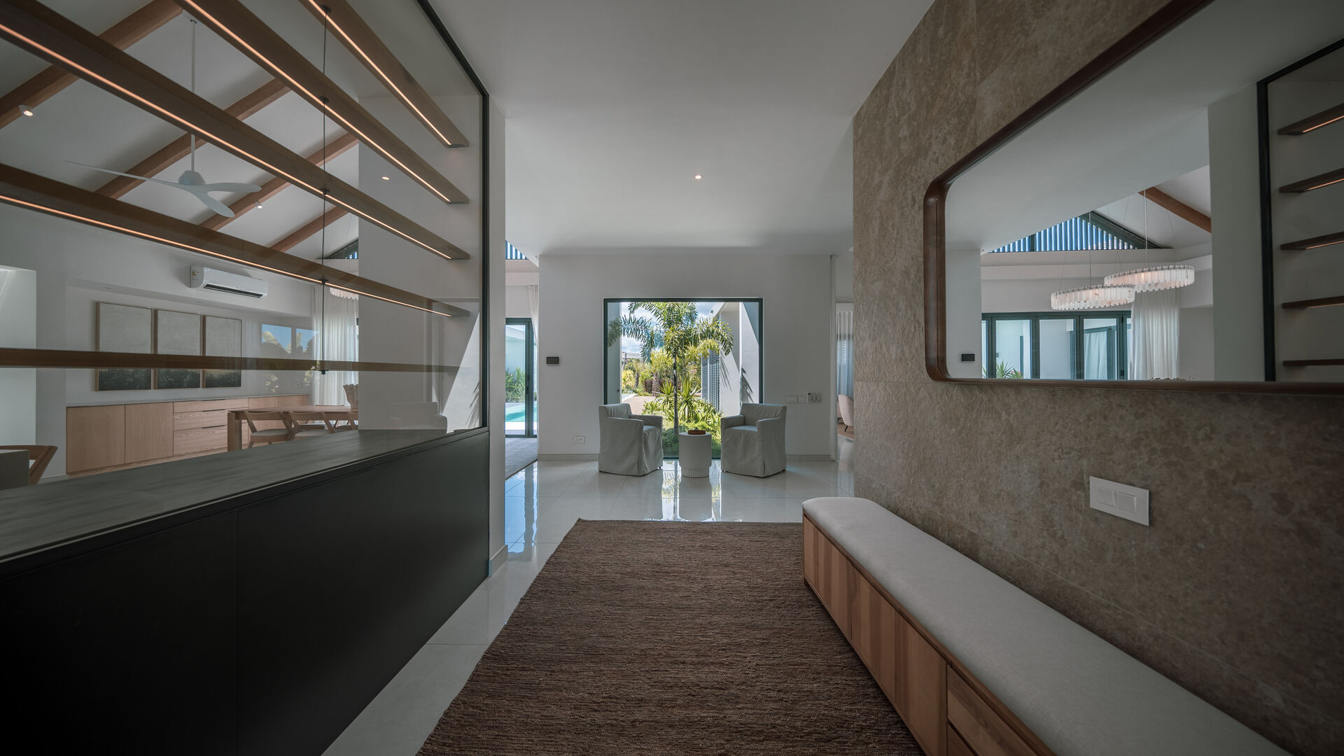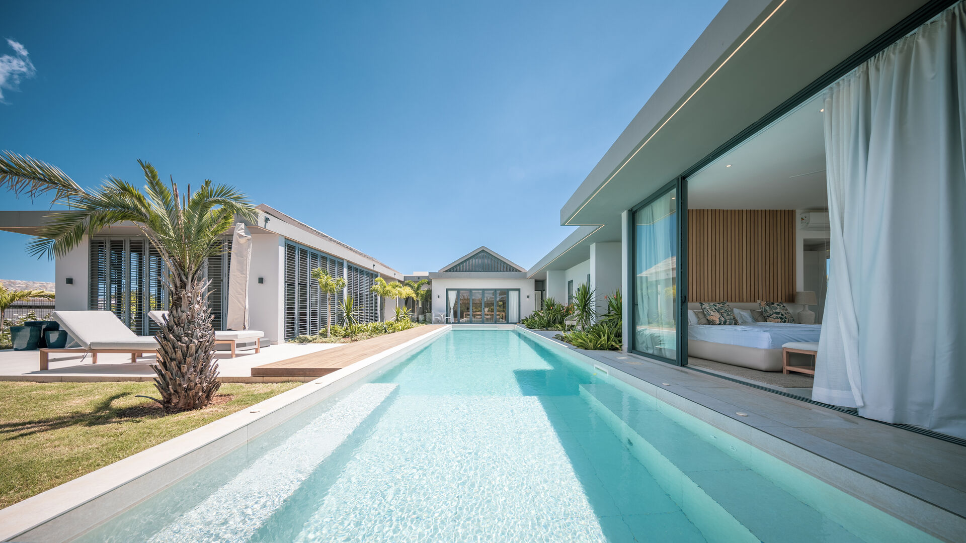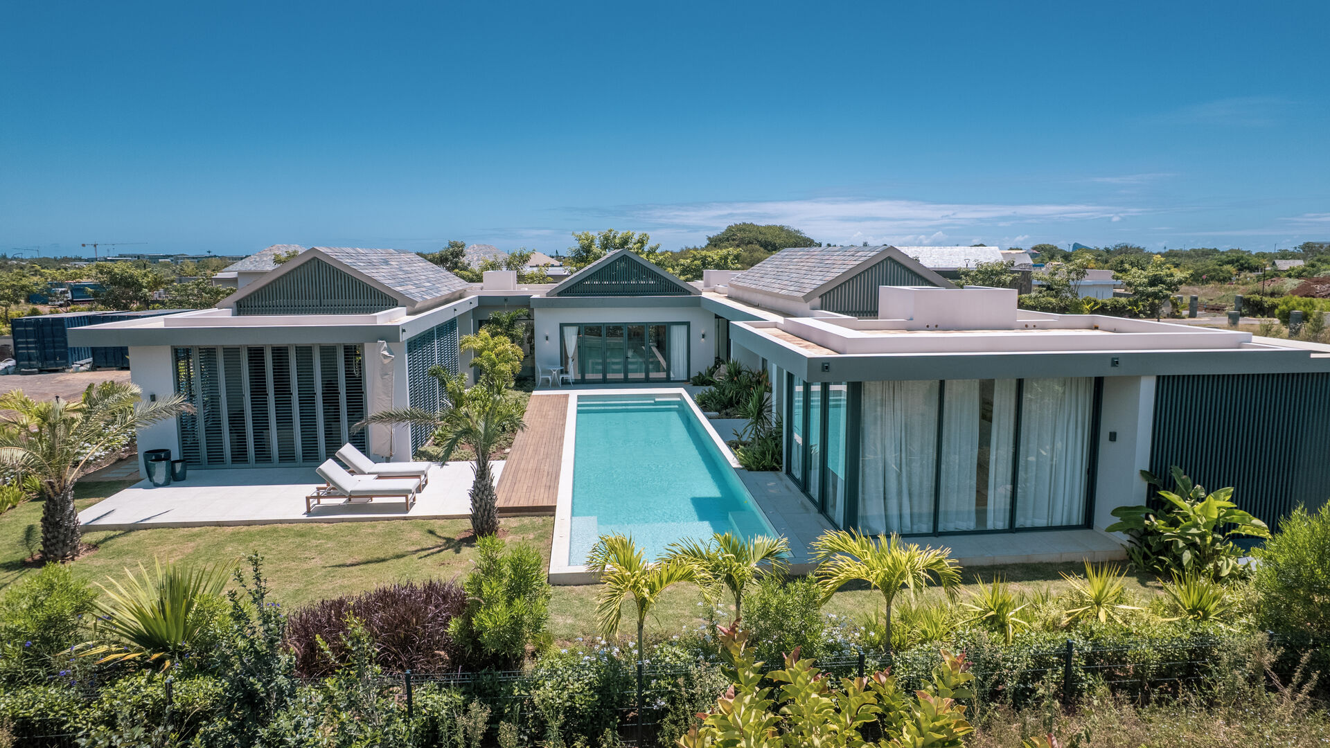 Set within the prestigious Mont Choisy Golf Estate, this brand-new luxury villa offers an exceptional blend of refined design, comfort, and effortless island living. Thoughtfully crafted across a single level, the home boasts a seamless flow that enhances both everyday living and entertaining.From the moment you enter, you are greeted by expansive living spaces bathed in natural light, opening gracefully onto a private outdoor terrace. Here, a beautifully designed pool becomes the centerpiece—perfect for relaxing afternoons or hosting guests in complete privacy. The outdoor dining area invites al fresco living at its finest, framed by striking stone walls that add both character and a sense of tranquility.Every detail has been carefully considered, from the villa's clean architectural lines to its harmonious indoor-outdoor connection. The single-story layout ensures ease and accessibility, while maintaining a sense of openness and sophistication throughout.Located in one of the island's most sought-after estates, residents enjoy world-class golfing, security, and a vibrant yet serene community atmosphere. This villa presents a rare opportunity to own a turnkey luxury residence where modern elegance meets relaxed tropical living.