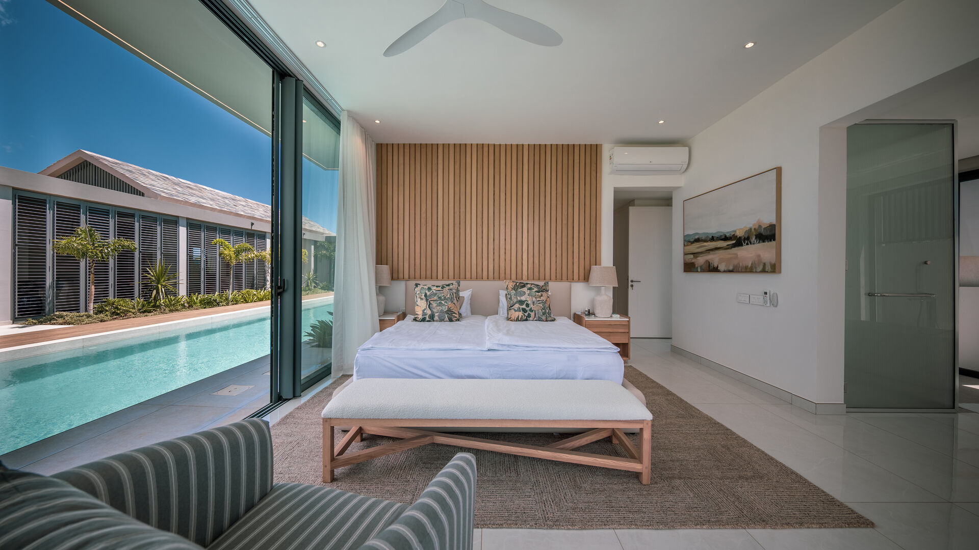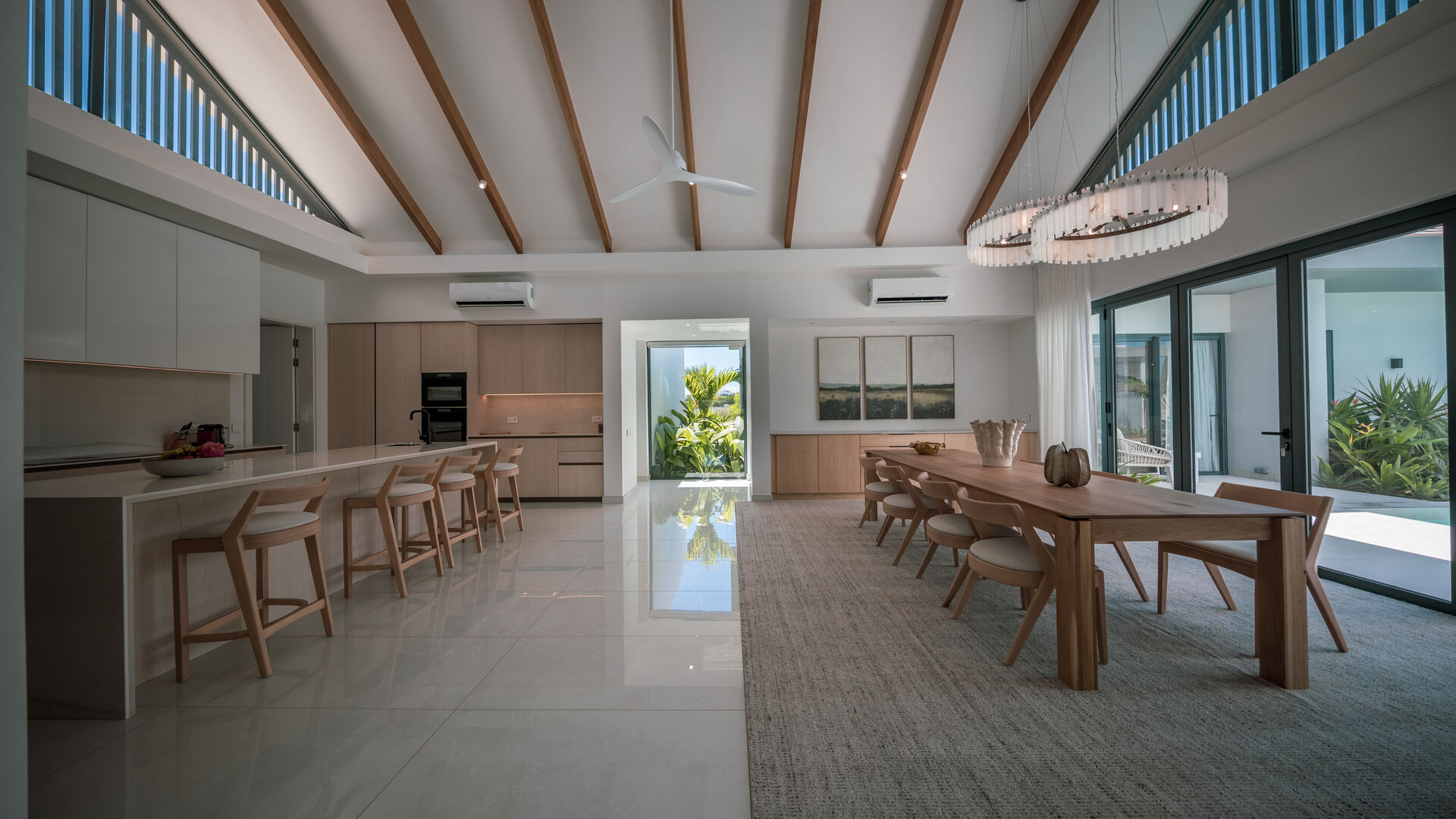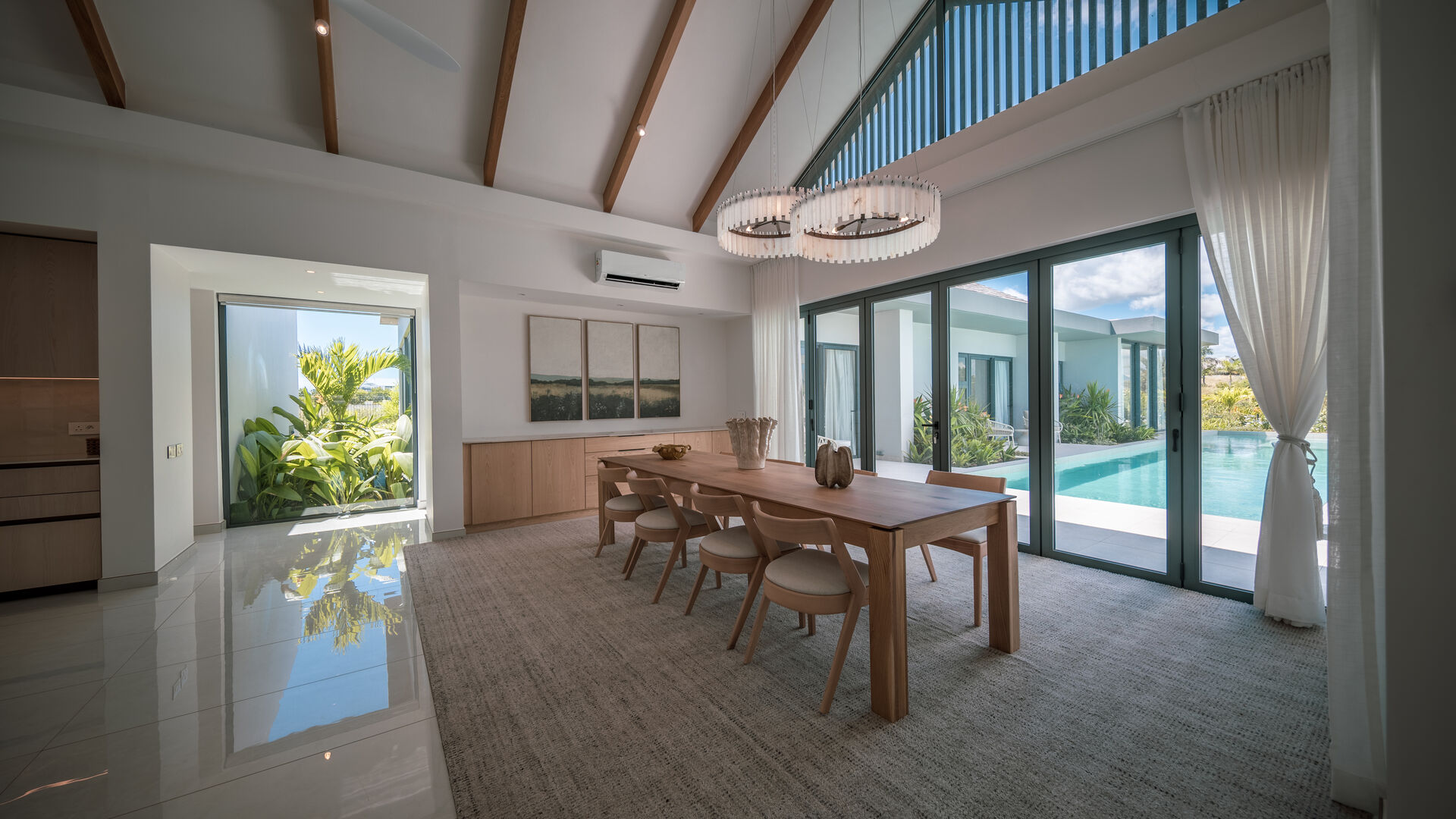 Set within the prestigious Mont Choisy Golf Estate, this brand-new luxury villa offers an exceptional blend of refined design, comfort, and effortless island living. Thoughtfully crafted across a single level, the home boasts a seamless flow that enhances both everyday living and entertaining.From the moment you enter, you are greeted by expansive living spaces bathed in natural light, opening gracefully onto a private outdoor terrace. Here, a beautifully designed pool becomes the centerpiece—perfect for relaxing afternoons or hosting guests in complete privacy. The outdoor dining area invites al fresco living at its finest, framed by striking stone walls that add both character and a sense of tranquility.Every detail has been carefully considered, from the villa's clean architectural lines to its harmonious indoor-outdoor connection. The single-story layout ensures ease and accessibility, while maintaining a sense of openness and sophistication throughout.Located in one of the island's most sought-after estates, residents enjoy world-class golfing, security, and a vibrant yet serene community atmosphere. This villa presents a rare opportunity to own a turnkey luxury residence where modern elegance meets relaxed tropical living.