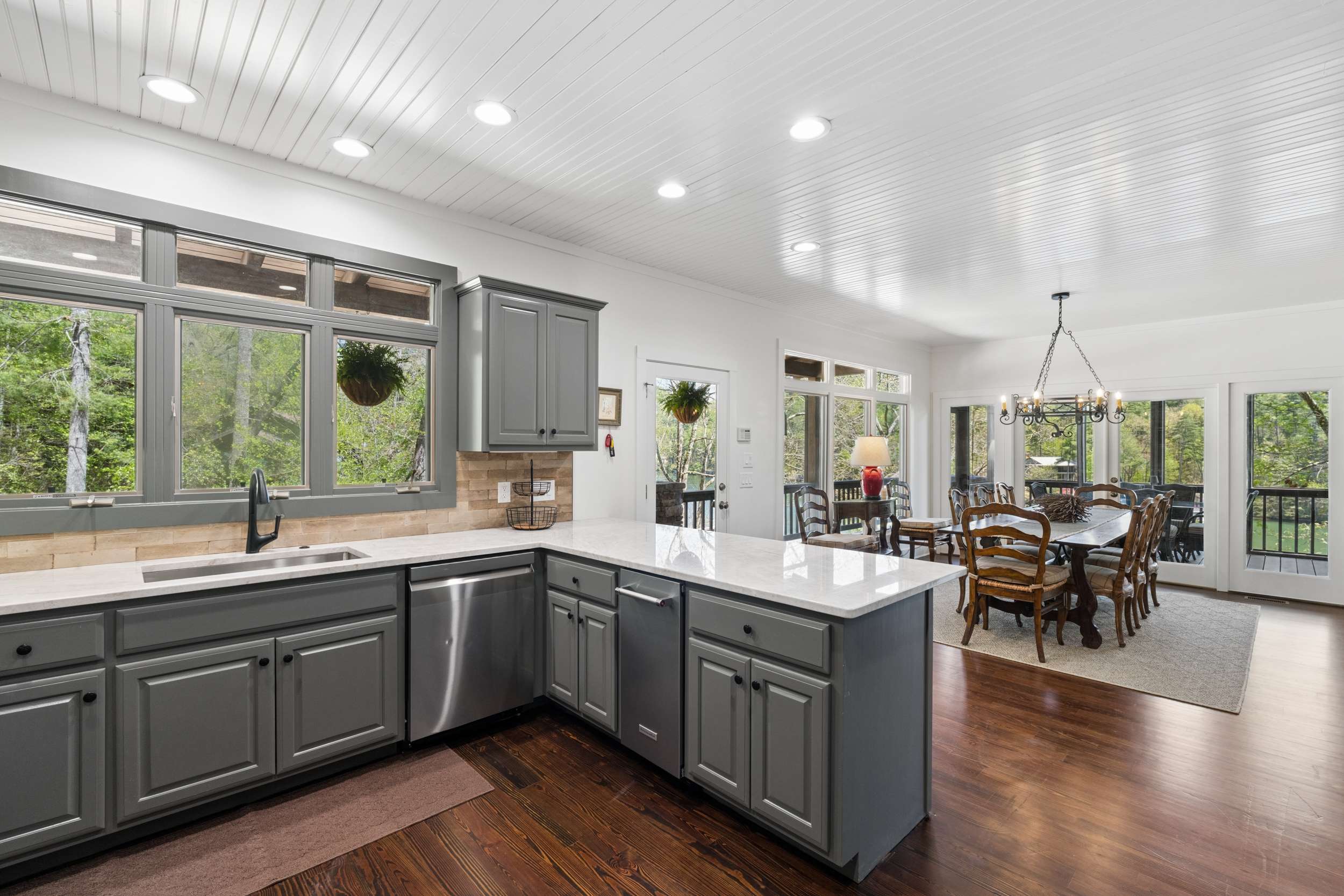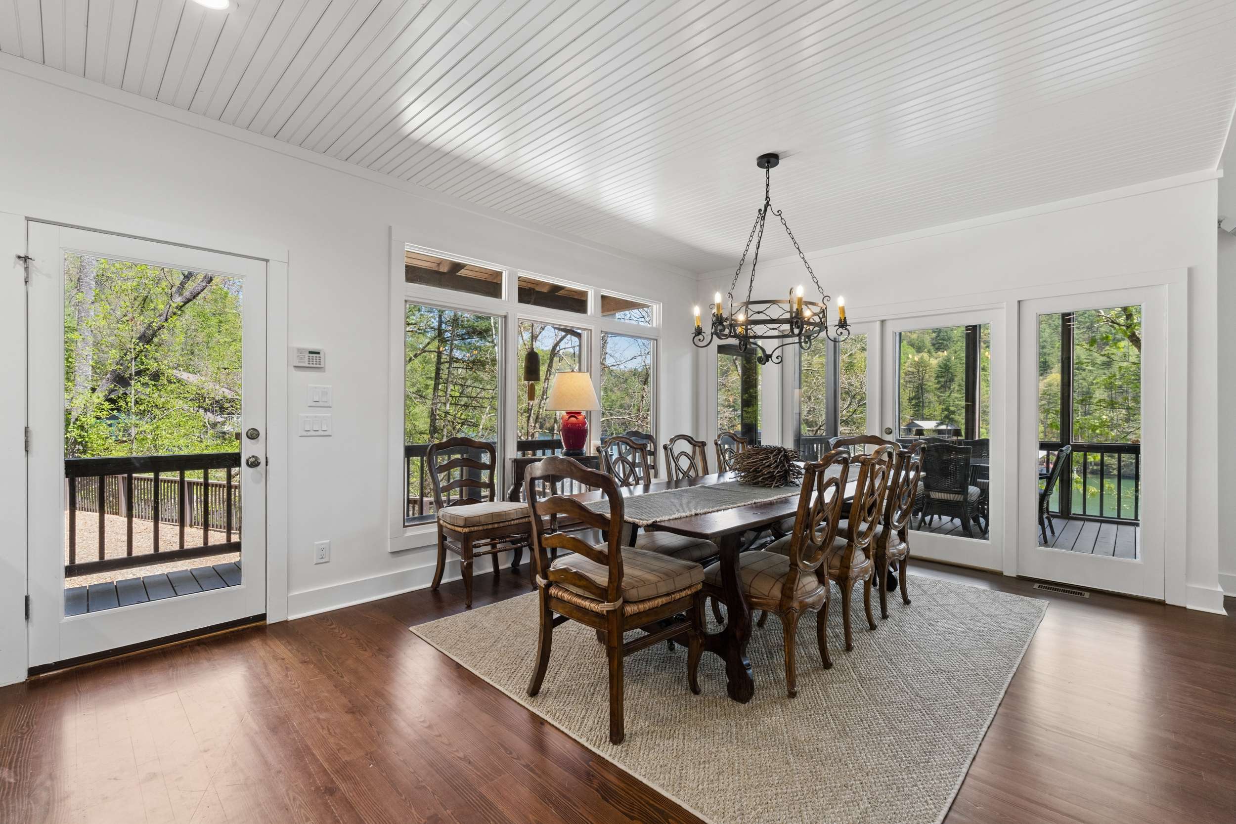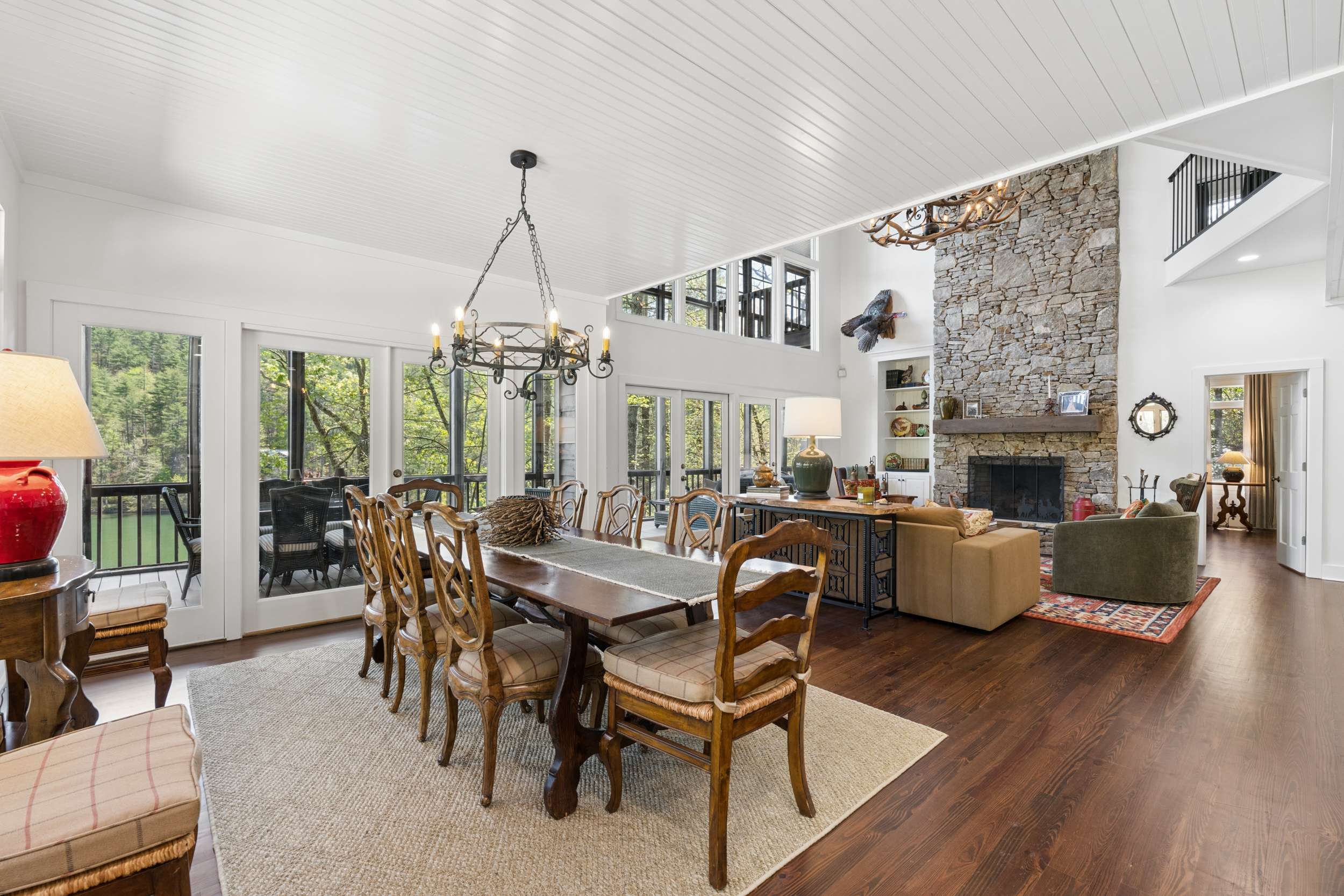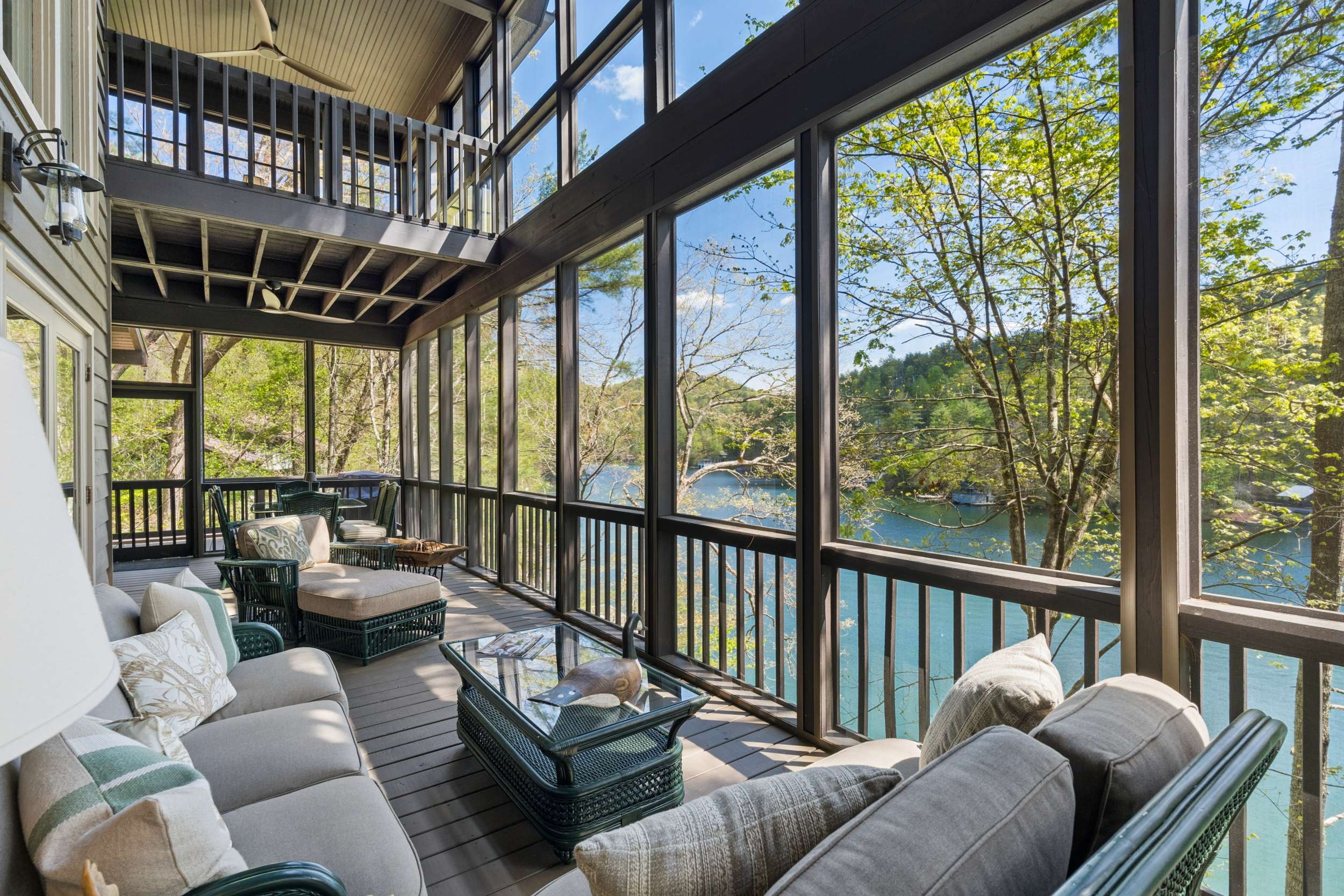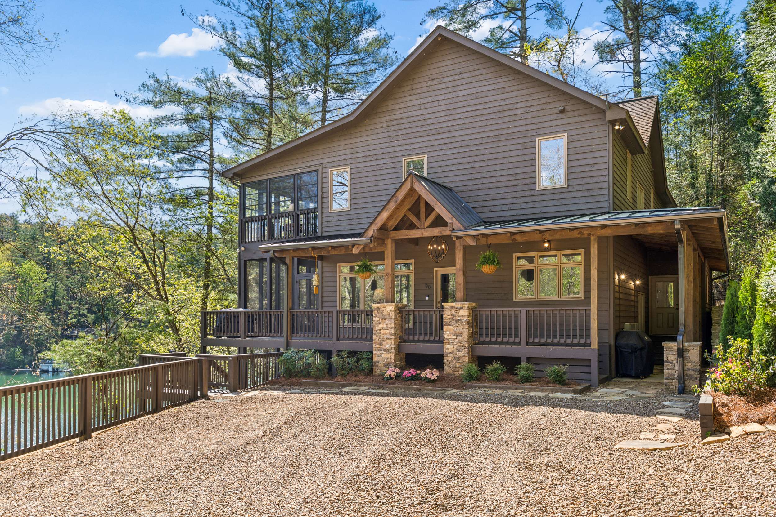 If you’re seeking a peaceful and timeless Lake Rabun waterfront retreat, look no further. This beautifully updated five-bedroom, five and a half-bath home is designed in a classic lake cottage style for comfort and effortless entertaining. Step inside to an open-concept floor plan on the main level. The dining area is spacious and perfectly suited for family gatherings. The updated kitchen features a breakfast bar, Taj Mahal granite countertops, new stainless steel appliances and painted custom cabinets for ample storage. A new butler’s pantry and mudroom compliment the updated kitchen and are great additions for entertaining large groups. The great room, offers a two-story masonry stone fireplace and soaring two-story windows that frame breathtaking lake views, filling the space with natural light. Just beyond, a large screened porch provides an outdoor living space that’s perfect for casual dining and relaxing with the sounds of nature. The primary bedroom on the main level is spacious with an updated ensuite bathroom complete with soaking tub, double vanities and a separate tiled shower. Upstairs, you’ll find three guest rooms with hardwood floors and a flex room that would make an ideal nursery, home office or studio. The two lake side guest rooms offer all-seasons private porch enclosures and a shared hallway bath. The third upper bedroom presents as an additional primary suite and offers an updated ensuite full bathroom. Downstairs, enjoy an additional guest suite that also presents as a primary with ensuite bath. A spacious and more casual secondary living area is the perfect spot to play games or watch your favorite movies. Another full bathroom off of the living area is convenient for overflow guests. French doors lead to an expansive covered porch and stairs lead to the updated two-story boathouse with new wharf and swim dock. The thoughtful upgrades that elevate this home are too many to mention. The listing agent can provide a detailed summary of recent updates. Ideally located just a short boat ride to Hall’s Marina, Max's Lakeside and the iconic Lake Rabun Hotel. This home is less than a 20-minute drive to the amenities of Clayton, GA; approximately a 25-minute drive to the Orchard golfing community and only minutes to area hiking trails including Tallulah Gorge State Park.