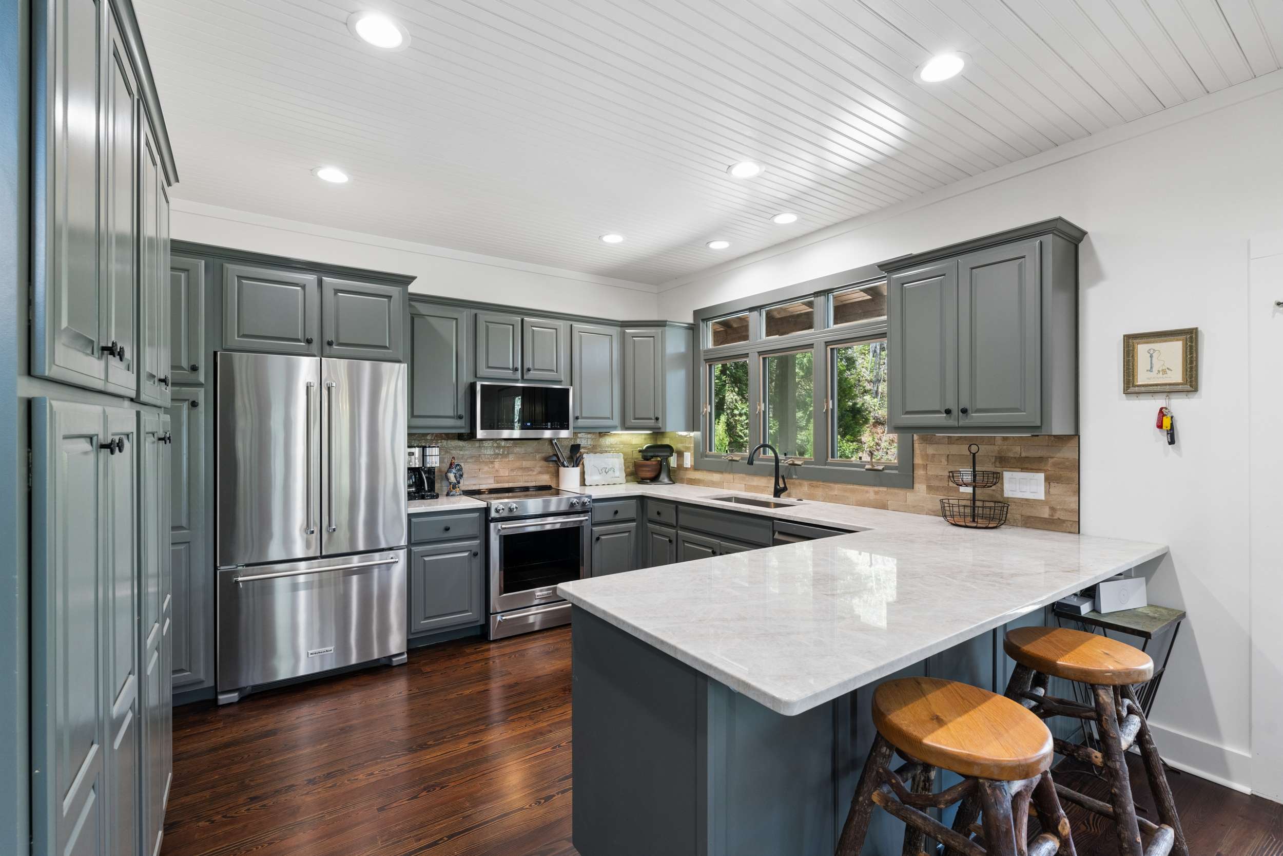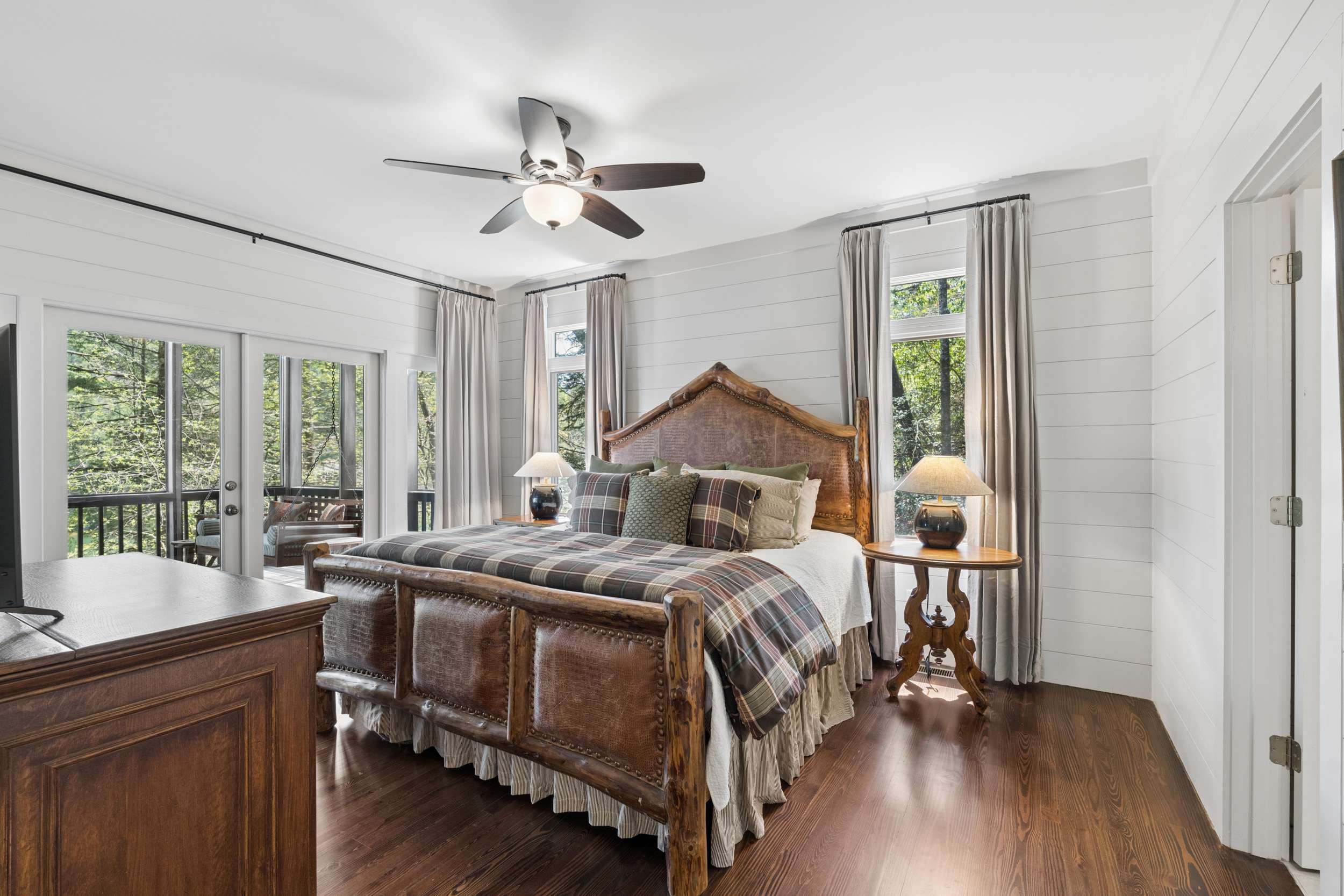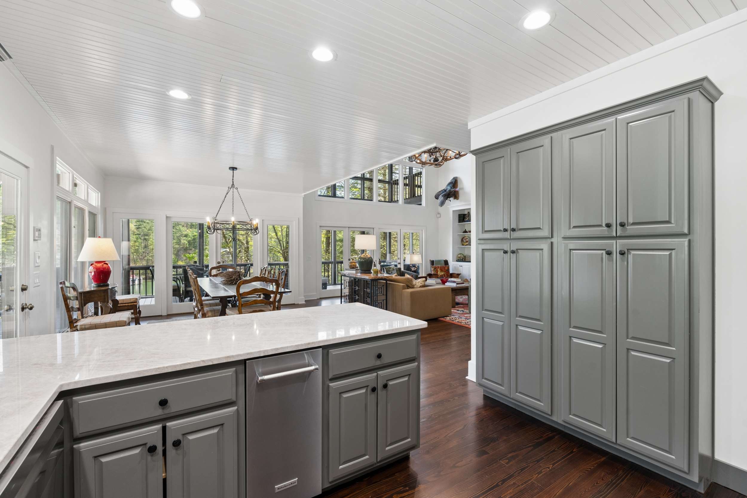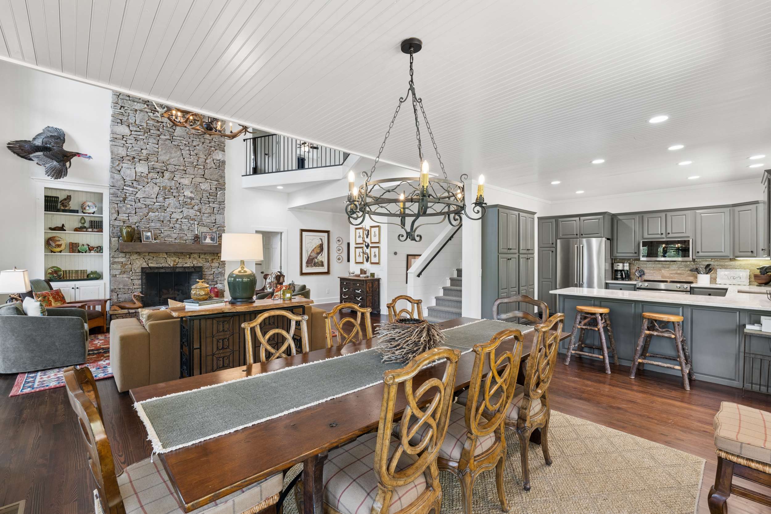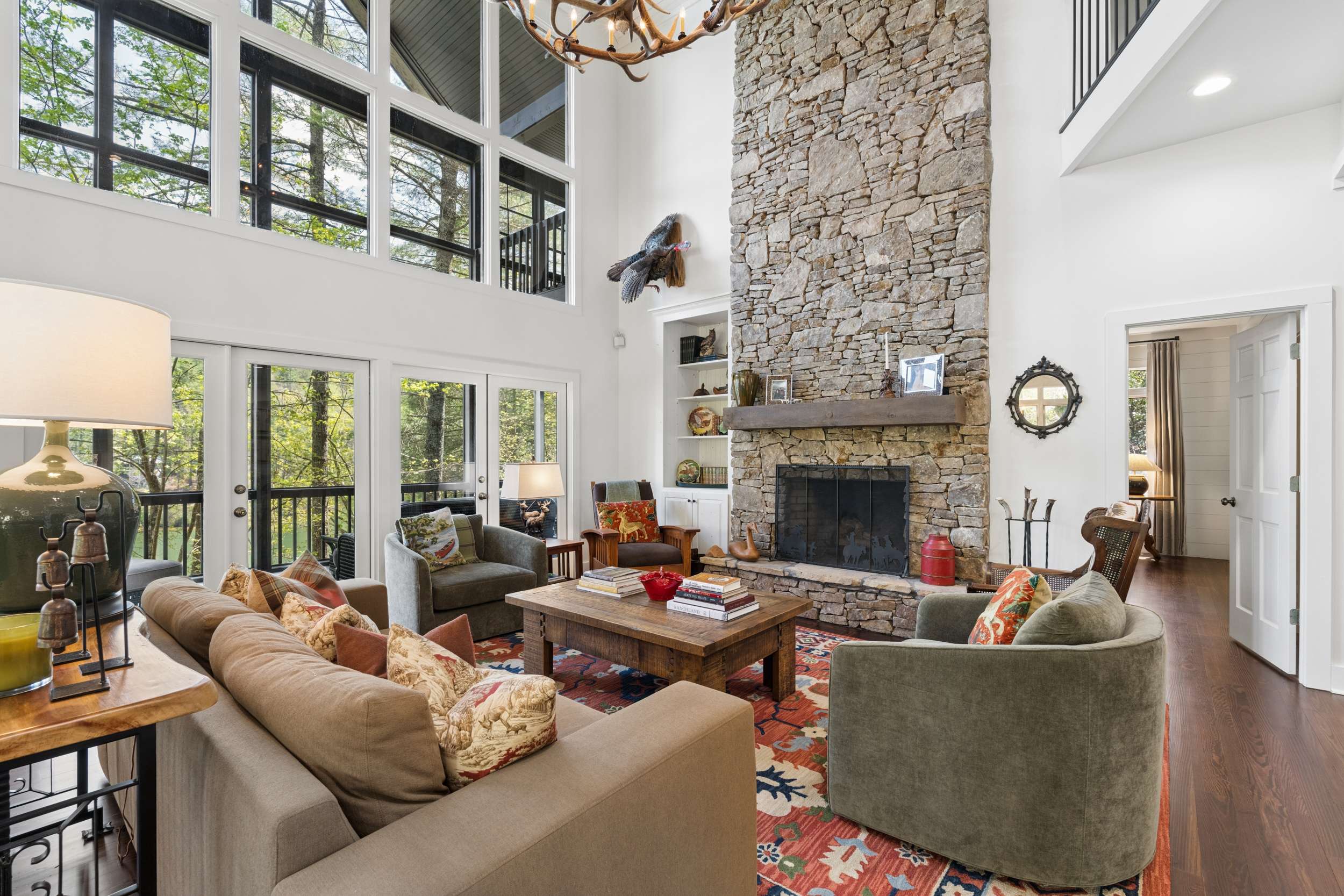 If you’re seeking a peaceful and timeless Lake Rabun waterfront retreat, look no further. This beautifully updated five-bedroom, five and a half-bath home is designed in a classic lake cottage style for comfort and effortless entertaining. Step inside to an open-concept floor plan on the main level. The dining area is spacious and perfectly suited for family gatherings. The updated kitchen features a breakfast bar, Taj Mahal granite countertops, new stainless steel appliances and painted custom cabinets for ample storage. A new butler’s pantry and mudroom compliment the updated kitchen and are great additions for entertaining large groups. The great room, offers a two-story masonry stone fireplace and soaring two-story windows that frame breathtaking lake views, filling the space with natural light. Just beyond, a large screened porch provides an outdoor living space that’s perfect for casual dining and relaxing with the sounds of nature. The primary bedroom on the main level is spacious with an updated ensuite bathroom complete with soaking tub, double vanities and a separate tiled shower. Upstairs, you’ll find three guest rooms with hardwood floors and a flex room that would make an ideal nursery, home office or studio. The two lake side guest rooms offer all-seasons private porch enclosures and a shared hallway bath. The third upper bedroom presents as an additional primary suite and offers an updated ensuite full bathroom. Downstairs, enjoy an additional guest suite that also presents as a primary with ensuite bath. A spacious and more casual secondary living area is the perfect spot to play games or watch your favorite movies. Another full bathroom off of the living area is convenient for overflow guests. French doors lead to an expansive covered porch and stairs lead to the updated two-story boathouse with new wharf and swim dock. The thoughtful upgrades that elevate this home are too many to mention. The listing agent can provide a detailed summary of recent updates. Ideally located just a short boat ride to Hall’s Marina, Max's Lakeside and the iconic Lake Rabun Hotel. This home is less than a 20-minute drive to the amenities of Clayton, GA; approximately a 25-minute drive to the Orchard golfing community and only minutes to area hiking trails including Tallulah Gorge State Park.