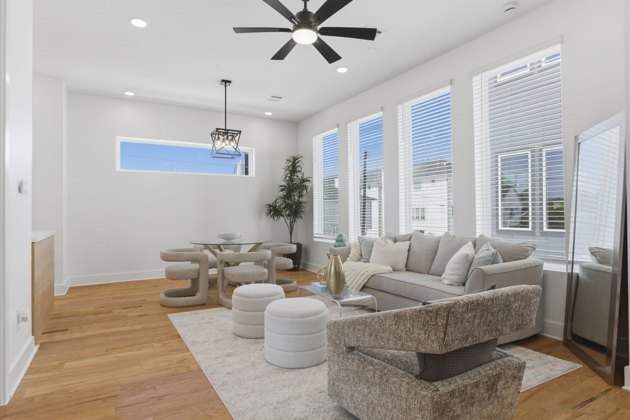 Welcome to 1936 Laverne Street—an inviting 3-bedroom, 3 full bathroom home thoughtfully designed for both everyday living and effortless entertaining. The first floor features a private guest suite with a full en-suite bath, perfect for visitors. On the second level, enjoy an open-concept kitchen and living area filled with natural light, ideal for hosting, along with an additional bedroom or flexible office space. The third floor offers a spacious primary retreat complete with an oversized en-suite bathroom, a large walk-in closet with built-ins, and access to a generous private balcony. Step outside to a wraparound-style private patio, perfect for intimate gatherings or cozy evenings enjoying the Houston weather. Conveniently located near Memorial City with easy access to major interstates, shopping, and dining. Ask about available $0 down loan programs for qualified buyers