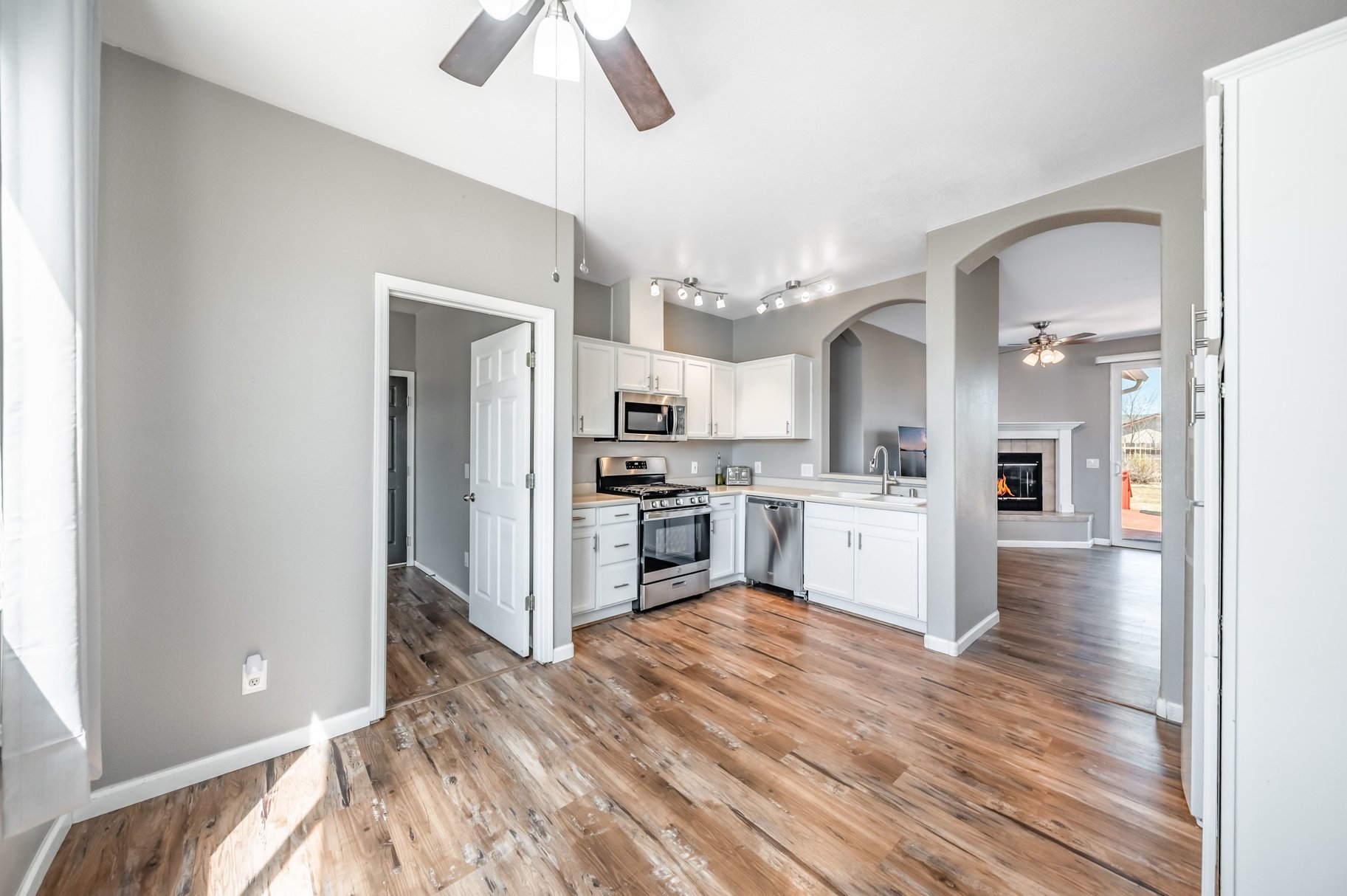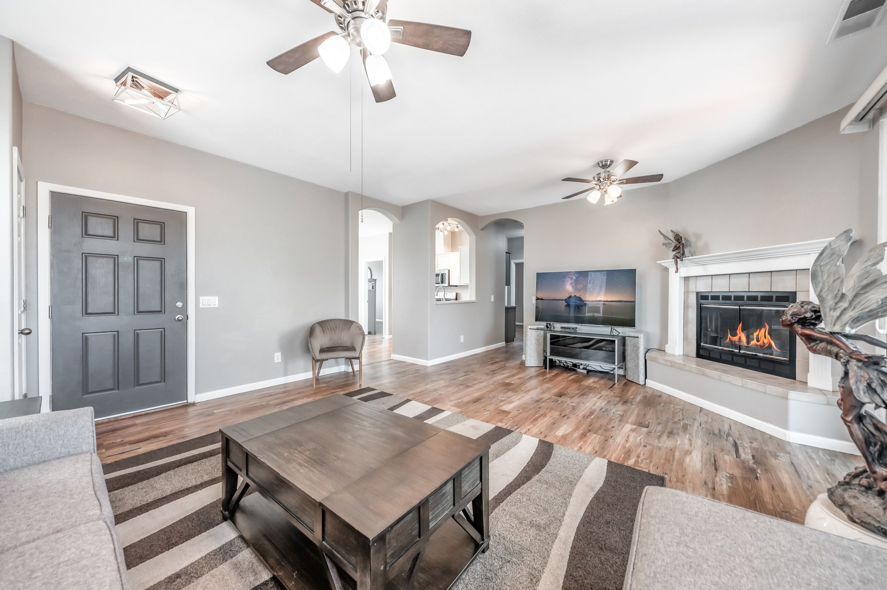 Situated on a spacious corner lot, this home offers abundant natural light, privacy, and room to breathe. Inside, you'll find luxury vinyl plank flooring, soaring ceilings, and a cozy wood-burning fireplace that creates a warm, inviting atmosphere. The layout is functional and comfortable, designed for easy everyday living.