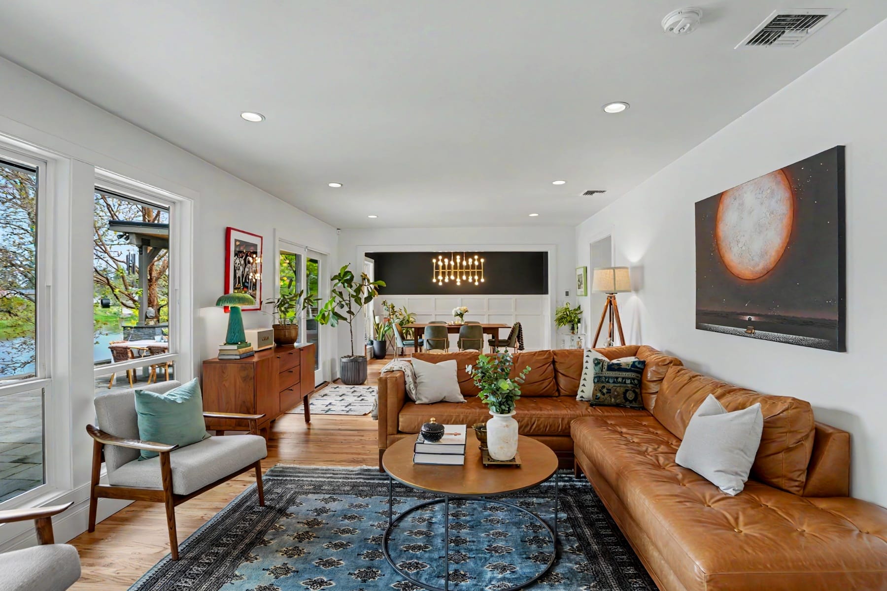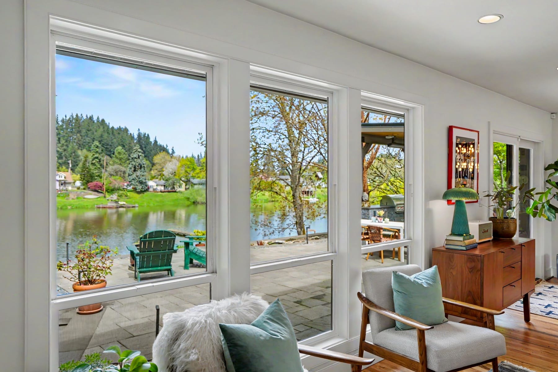 Lakeside retreat on West Thornton Lake! Wake to tranquil views in this beautifully updated home where every detail is thoughtfully curated. Newer roof & windows. Kitchen w/ soapstone counters, custom cabinetry, & KitchenAid appliances. Hardwood floors, gas fireplace, & formal dining. Luxurious primary suite w/heated tile, walnut vanities, & custom closet. Downstairs bath with tile heated floors. Flexible family room/3rd bedroom. Covered outdoor kitchen, private dock, minutes to downtown Albany 1.86 acres.