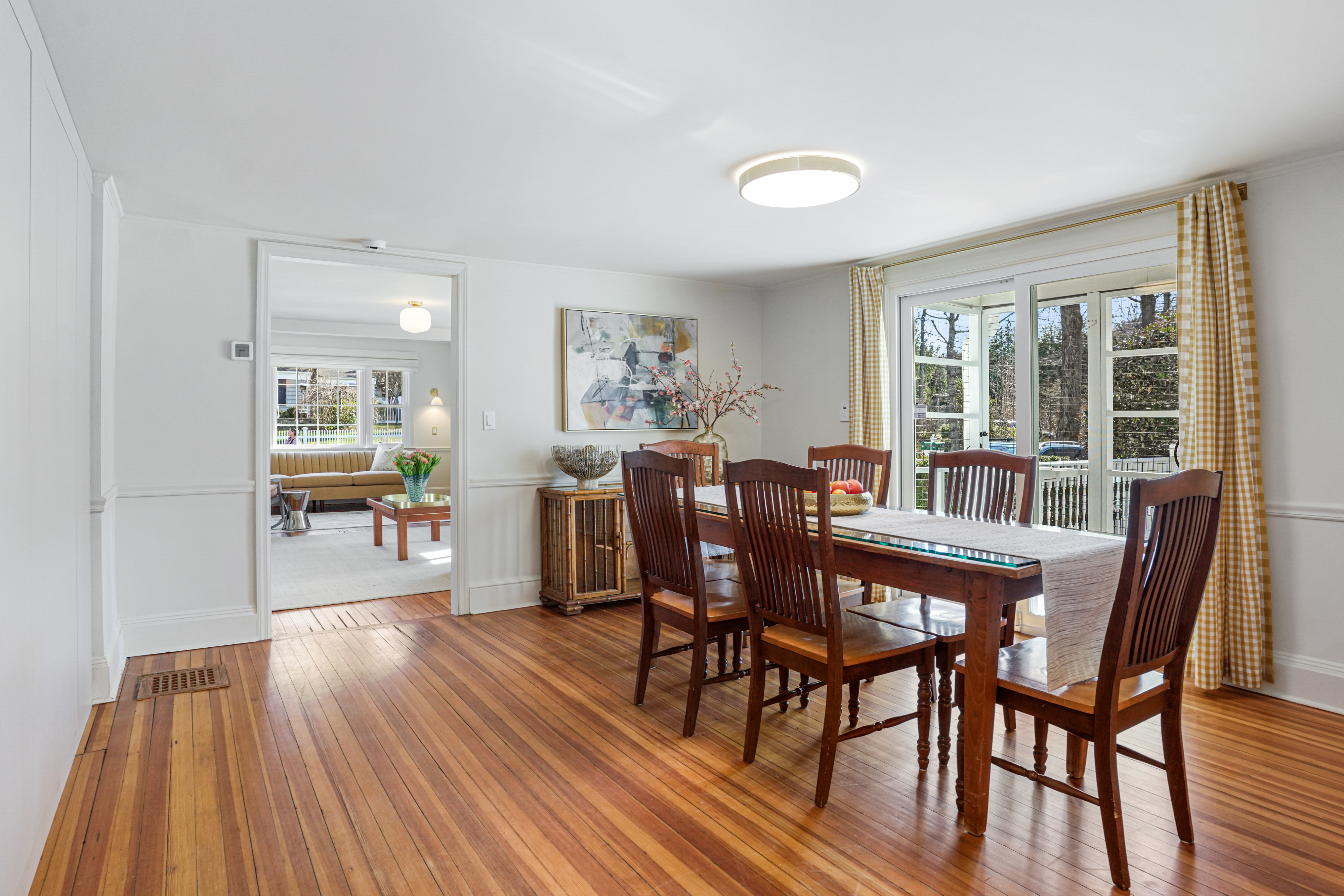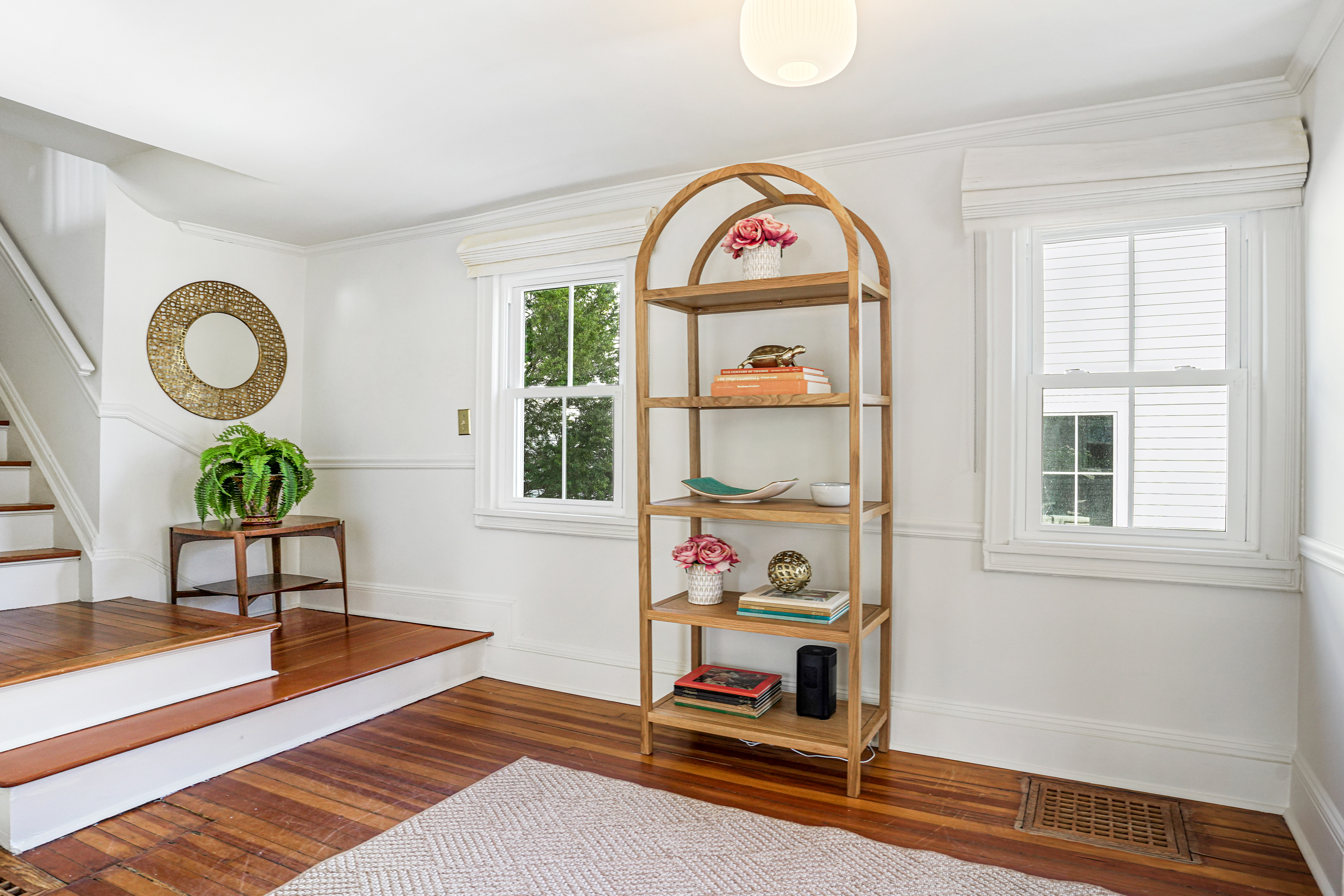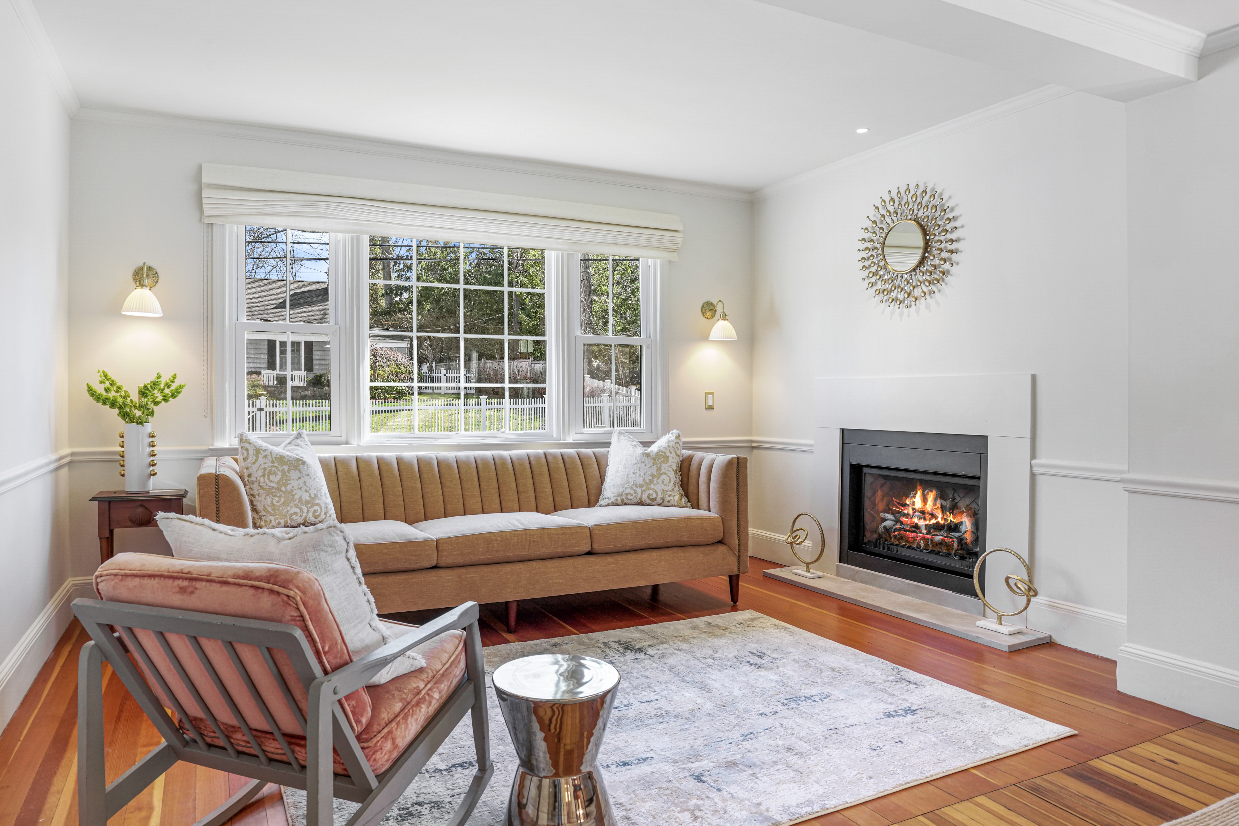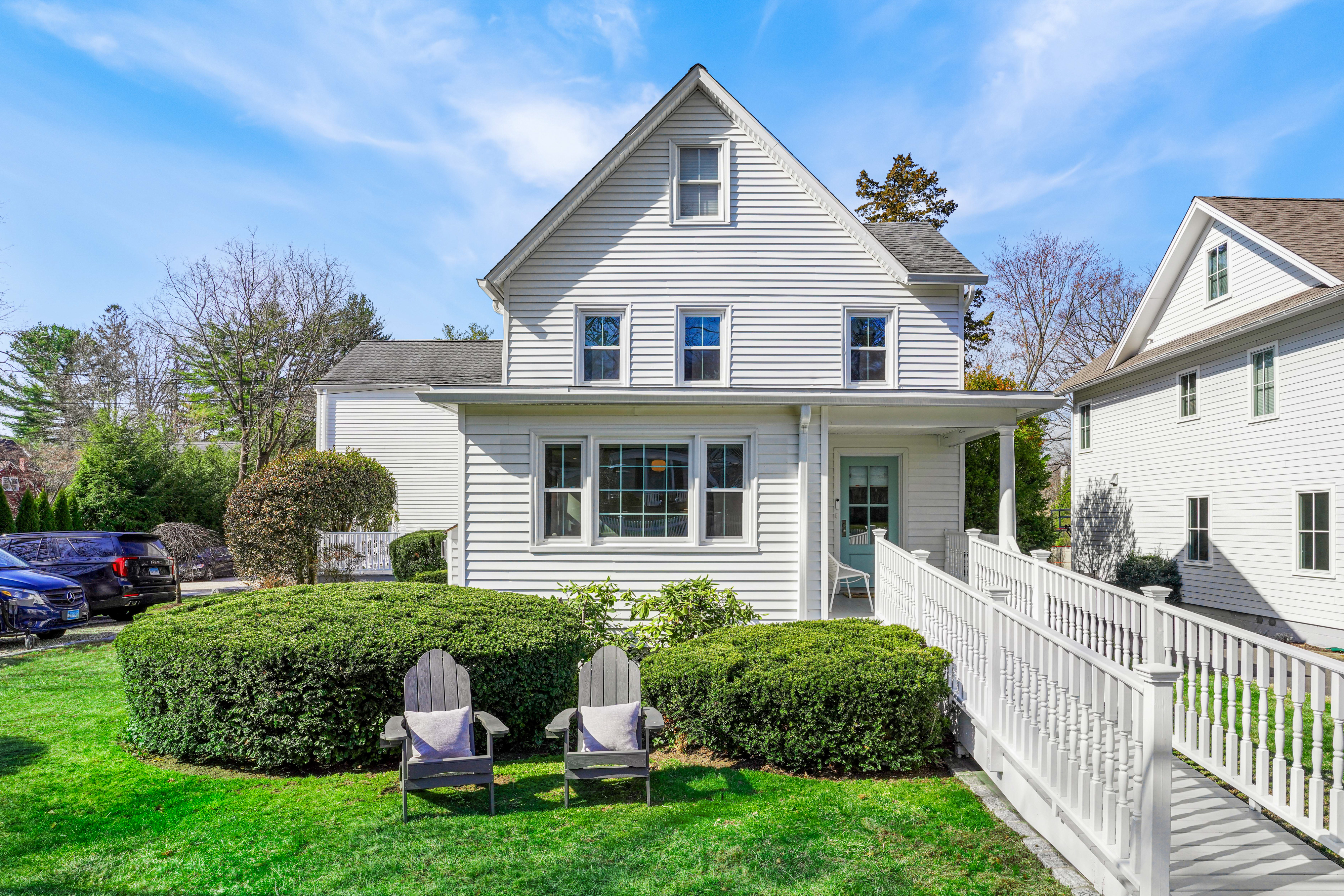 Rich in warmth and history, this enchanting antique gable-front home has been thoroughly updated to offer the rare combination of timeless character and modern ease. A townhouse in a small condo association, the home lives like a single-family home, blending privacy, space, curb appeal, and charm with the convenience of shared exterior maintenance. The home welcomes guests with an inviting foyer leading to open living spaces. The thoughtfully renovated chef's kitchen features elegant marble countertops and a stunning Lacanche range, handcrafted in Burgundy, France. Upstairs are three bedrooms, including a spacious primary suite with an updated en suite bath. The third floor, with its sun-filled skylights, built-in shelving, and new flooring, offers exceptional flexibility. It is ideal as a home office, playroom, private guest space, or as the coolest kids' bedroom ever, with its hangout area featuring a rattan swing chair. The recently fully-finished basement expands the home's living space and is perfect for recreation, fitness, or a media room. Other significant recent upgrades include a new heat pump system, tankless water heater, and built-in cabinets. A private, south-facing deck invites morning coffee, outdoor dining, and summer entertaining. Dedicated outdoor parking spaces and a private garage add daily convenience. Located in a quiet, walkable neighborhood with a great sense of community. Near to New Canaan's village, schools, Bristow Bird Sanctuary, and Mead Park.