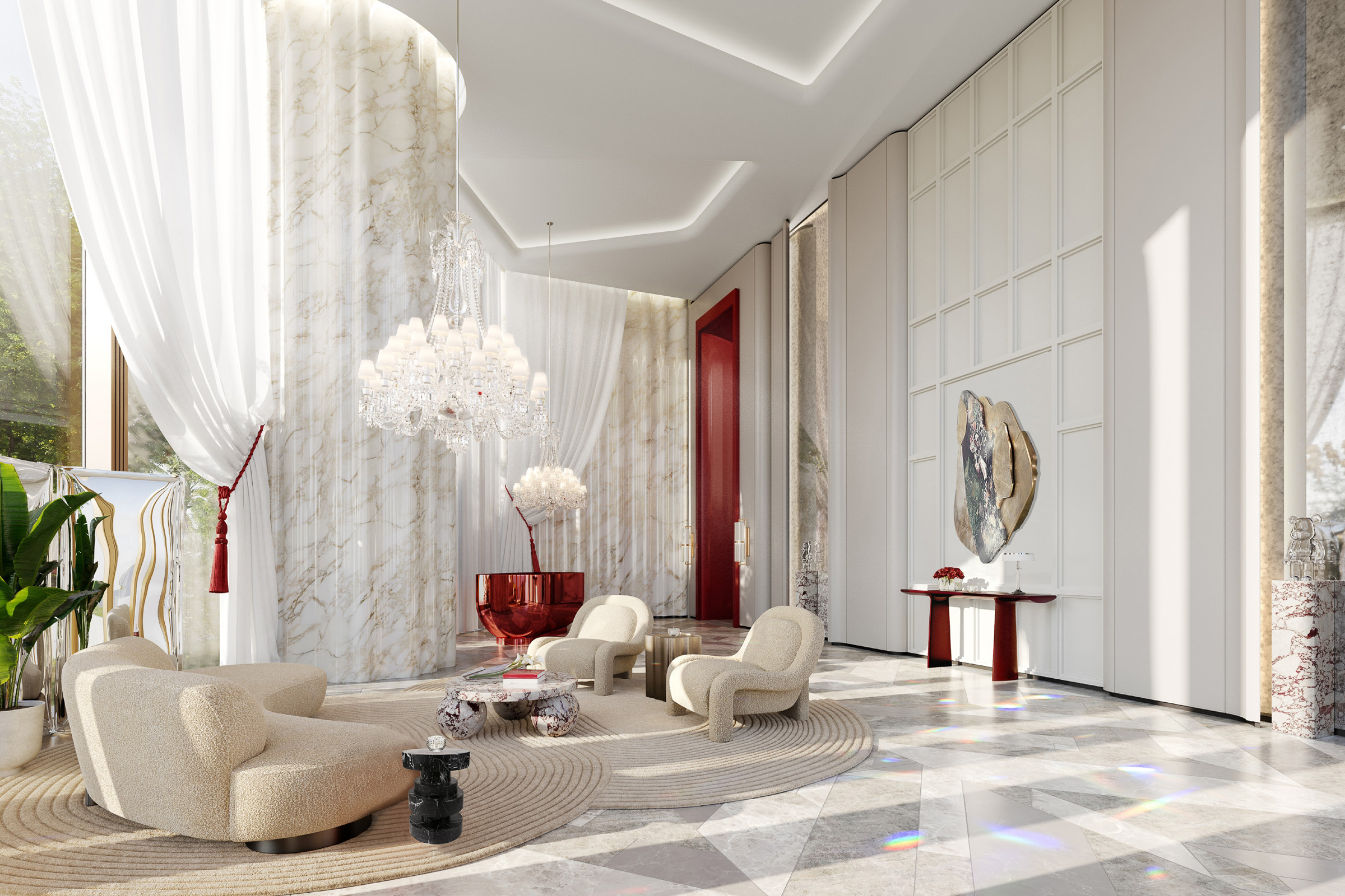 The development boasts the architectural signature of Studio Libeskind, while interiors have been styled by 1508 London — an internationally renowned design studio. Fully furnished, serviced, and managed by Baccarat, the residence is anchored by an elegant, restrained palette punctuated by characterful tones.