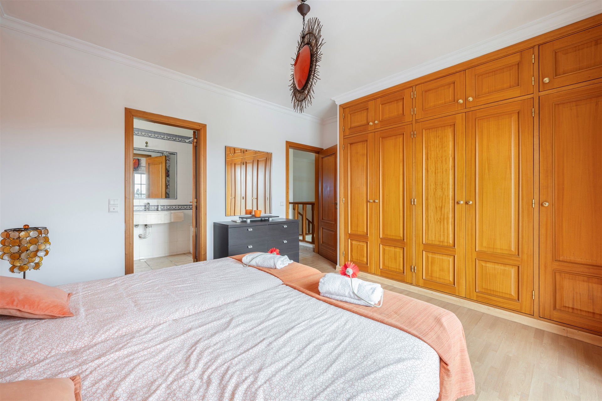 Set in the sought-after residential area of Encostas das Oliveiras, this elegant 3-bedroom villa stands out for its tranquil environment, privacy, and proximity to the marina, golf courses, and beaches, offering the perfect balance between serenity and sophisticated living. With excellent sunlight exposure and abundant natural light, the property features spacious, well-laid-out interiors that extend to inviting outdoor areas, including a private pool, garden, and terraces ideal for leisure and entertaining. On the main floor, the living room enjoys direct access to the exterior, complemented by a fully equipped kitchen, one bedroom, and a bathroom. Upstairs, there are two bedrooms, including a suite, and a second bedroom with access to a generous balcony overlooking the pool. The lower floor offers a versatile area suitable for multiple uses, as well as a private garage/basement. This is an excellent opportunity for a permanent residence, holiday home, or investment.