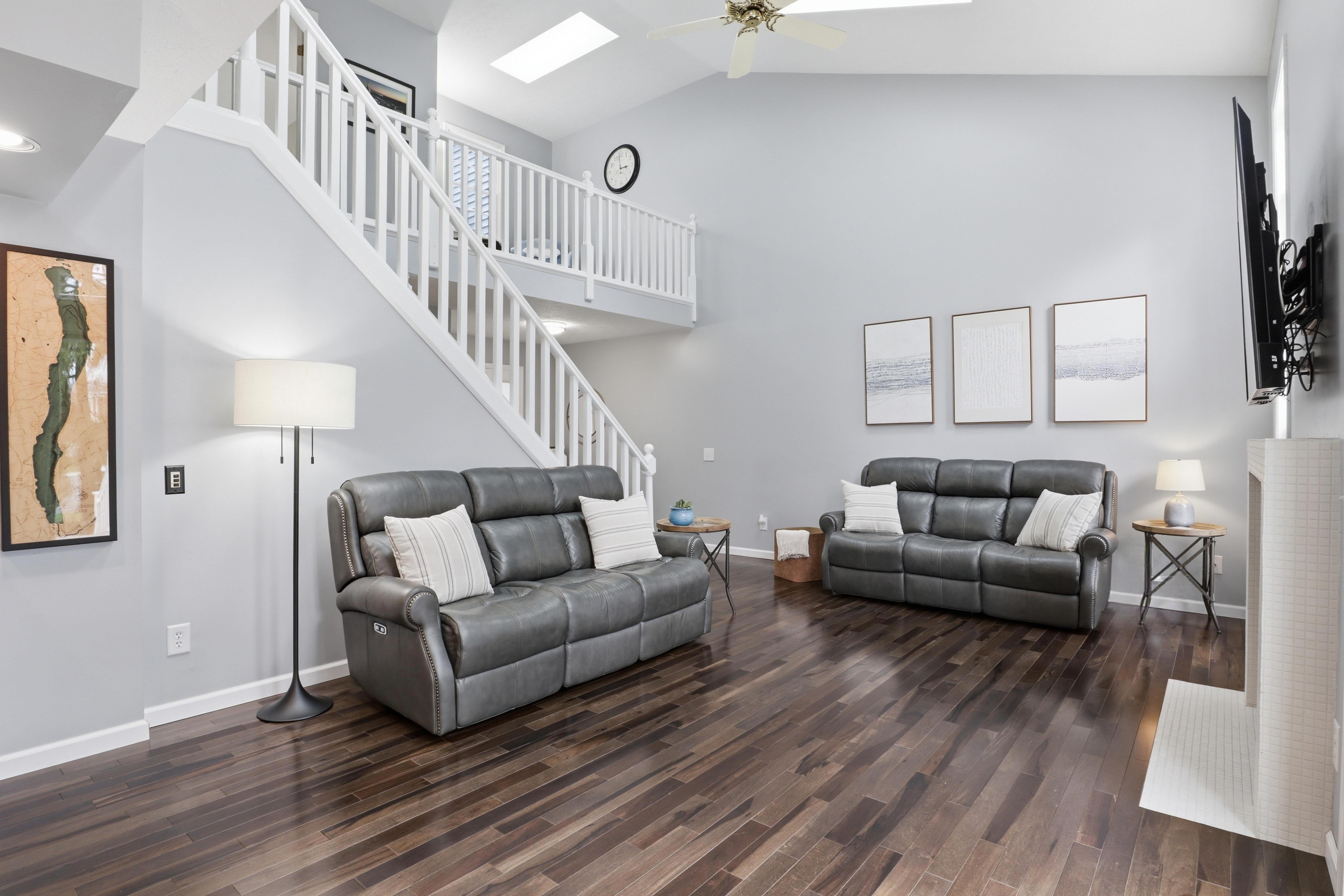 Exceptional Canandaigua Lakefront Community Townhouse offering a great location, it is updated, very well maintained, and ready to move into! Foyer/entry with ceramic tile flooring, living room with cathedral ceiling, hardwood flooring, skylights, gas fireplace, and a sliding glass door leading to the private rear deck with a natural gas grill hookup, and water views, dining area with Brazilian hardwood flooring, kitchen with Brazilian hardwood flooring, stainless steel appliances, 1st floor half bathroom with ceramic tile flooring, first-floor laundry with washer/dryer, second-floor loft/office with skylight, spacious second-floor primary suite with water view, skylights, double closets, private primary bathroom featuring ceramic tile flooring, double bowl vanity and a walk-in shower, guest bedroom, and guest full bathroom with ceramic tile flooring and tub/shower. Two-car garage with an opener, epoxy flooring, and a full basement featuring a small finished room for TV, sitting, hobbies, or recreation. It's just a short walk to the clubhouse, which features an in-ground pool, hot tub and your own designated boat slip, currently #98. Walkable to downtown Canandaigua shops and restaurants, and close to CMAC, Kershaw Park, Wegmans, Bristol Mountain, Canandaigua Country Club and more! Negotiations are delayed and will begin on Tuesday, April 21st, 2026, at 4:00 PM. Two open houses are scheduled: The first on Friday, April 17th, from 4:00 PM to 6:00 PM, and the second on Saturday, April 18th, from 12:00 PM to 2:00 PM.