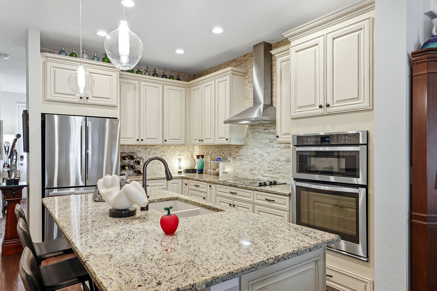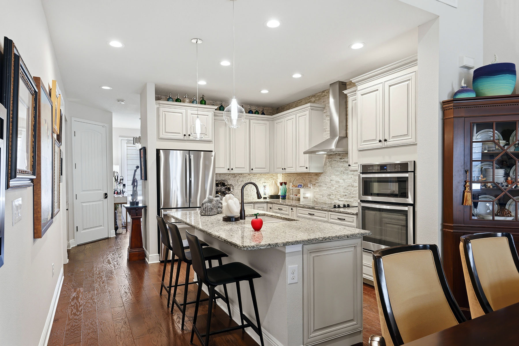 Location is everything and this exceptional townhome in Enclave at Forest Lakes delivers. Ideally in the heart of Sarasota, this gated community offers unmatched convenience with two public golf courses nearby, direct access to the Legacy Trail just beyond the Webber Street gate, and seamless connectivity in every direction, north, south, east and west. Inside the community, residents enjoy a welcoming gathering area, resort-style pool and dog park, ideal for relaxation and an active lifestyle. Built in 2018, this residence stands out as one of Mattamy's finest offerings, showcasing a range of thoughtful upgrades and refined finishes throughout. Engineered hardwood flooring adds warmth and durability underfoot, while the French Country–inspired kitchen features rich cabinetry with bronze accents, elegant granite countertops, a stacked stone backsplash, wall-mounted oven and microwave, and a sleek electric cooktop. Designed for everyday living and entertaining, the open layout includes a breakfast bar with seating for three, a spacious dining area accommodating up to six, and a comfortable living room that opens through sliding glass doors to a fully covered lanai, ideal for year-round enjoyment. Architectural details such as solid wood and wrought iron stair railings add character and sophistication. Upstairs, a versatile loft and additional flex space provide endless possibilities, whether used as a media room, home office, fitness area or creative studio. Two generously sized bedrooms offer comfort and privacy, complemented by a well-appointed bath with granite countertops, French Country cabinetry, and a tub/shower combination. The primary suite, conveniently on the main floor, is a retreat featuring crown molding, a spacious dual-sink vanity with extended granite countertop and an oversized walk-in closet with ample dressing space. In the garage is a new whole-house water purifying system by WaterExpress. This is more than just a home, it's a lifestyle. Discover the comfort, quality and convenience waiting for you at Enclave at Forest Lakes.