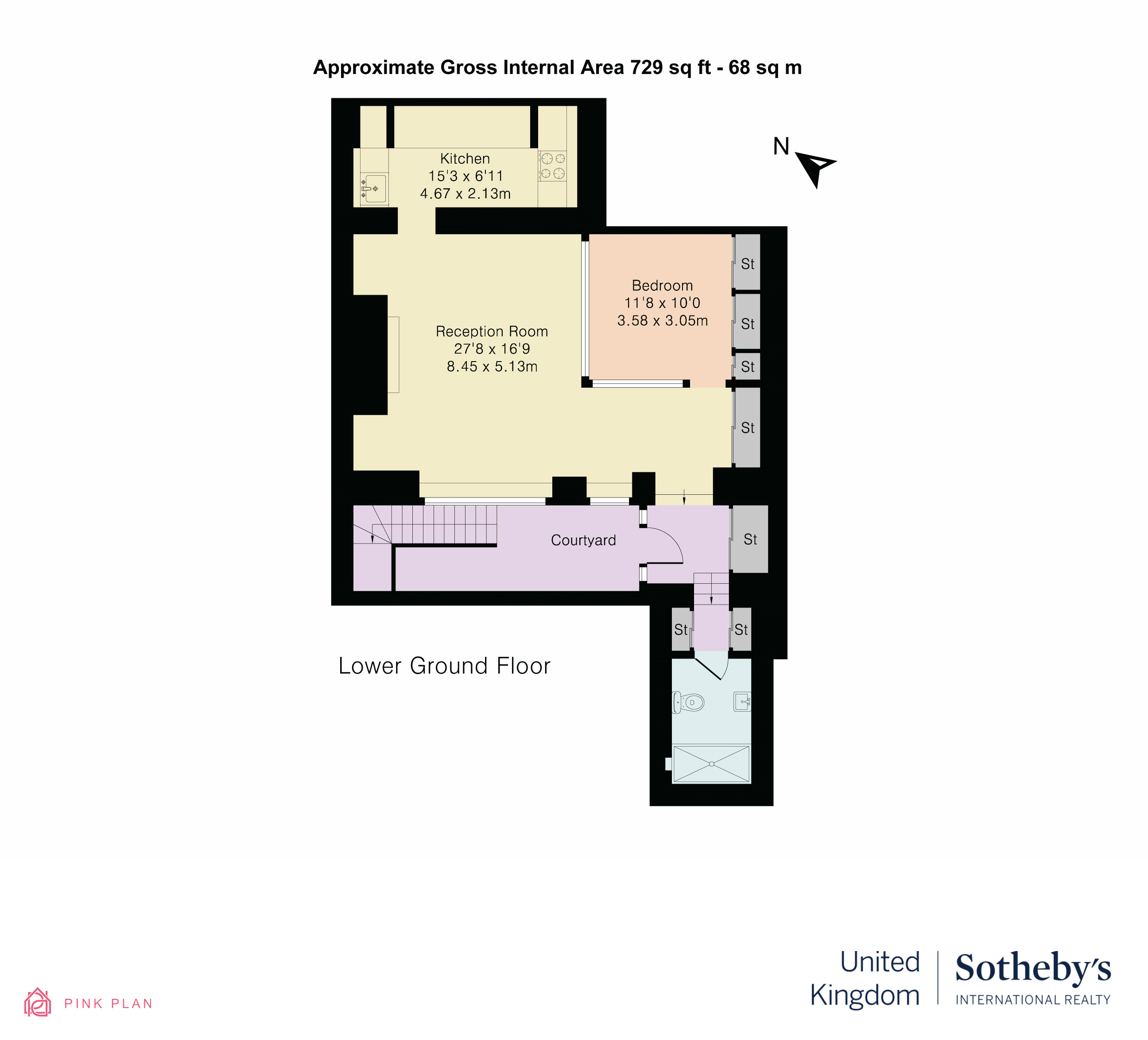 建筑面积 : 729 ft² / 68 m²