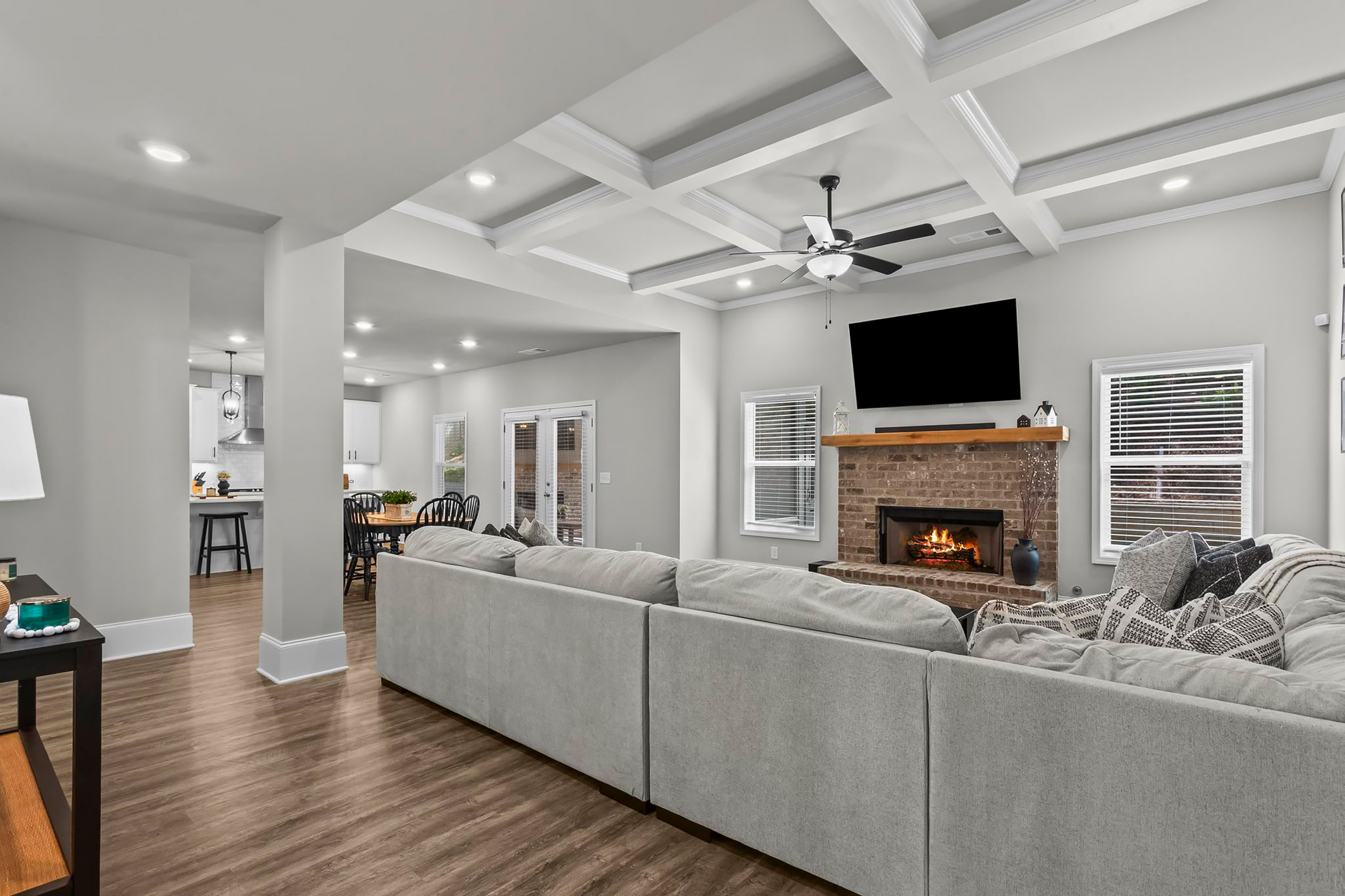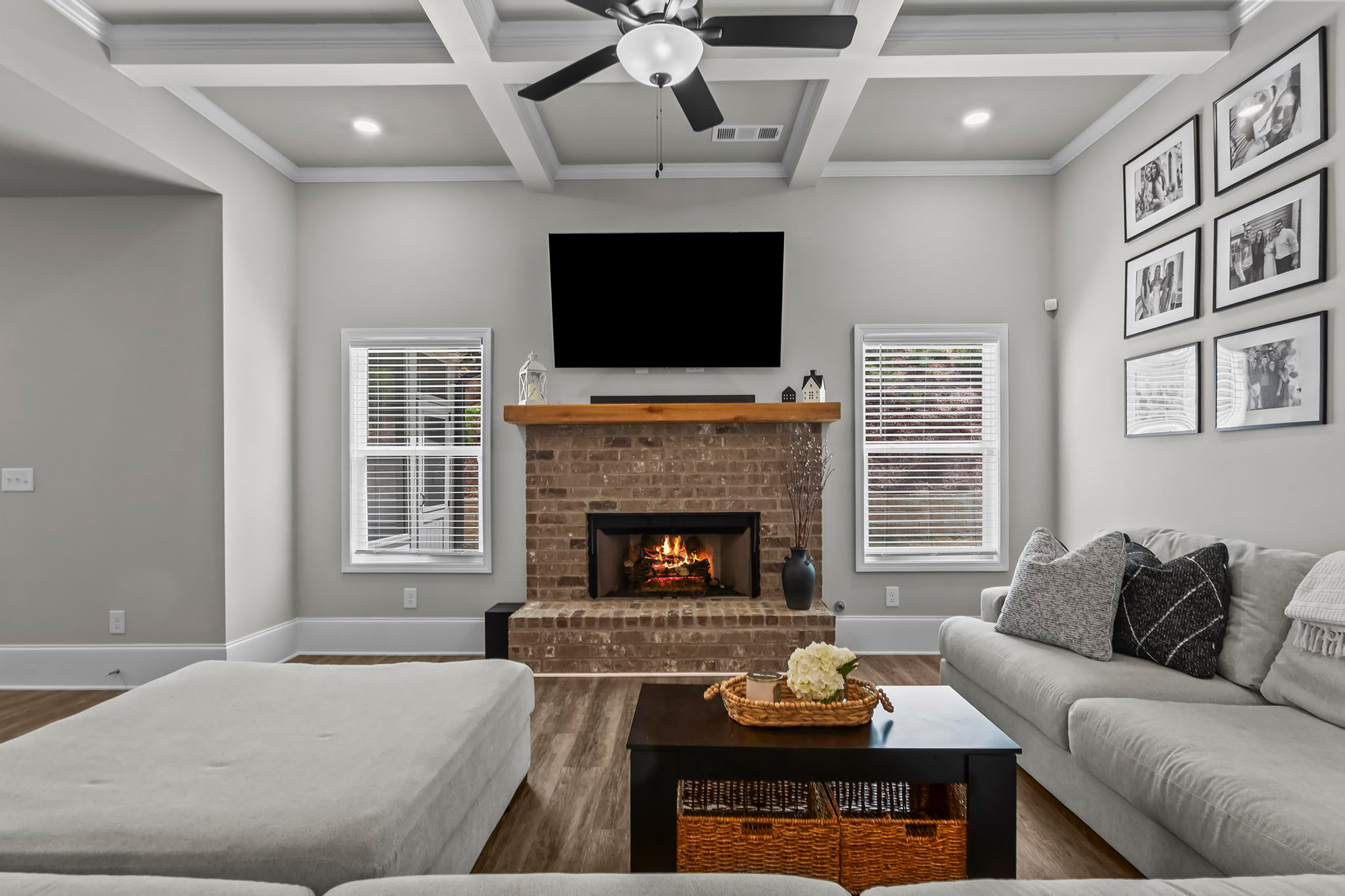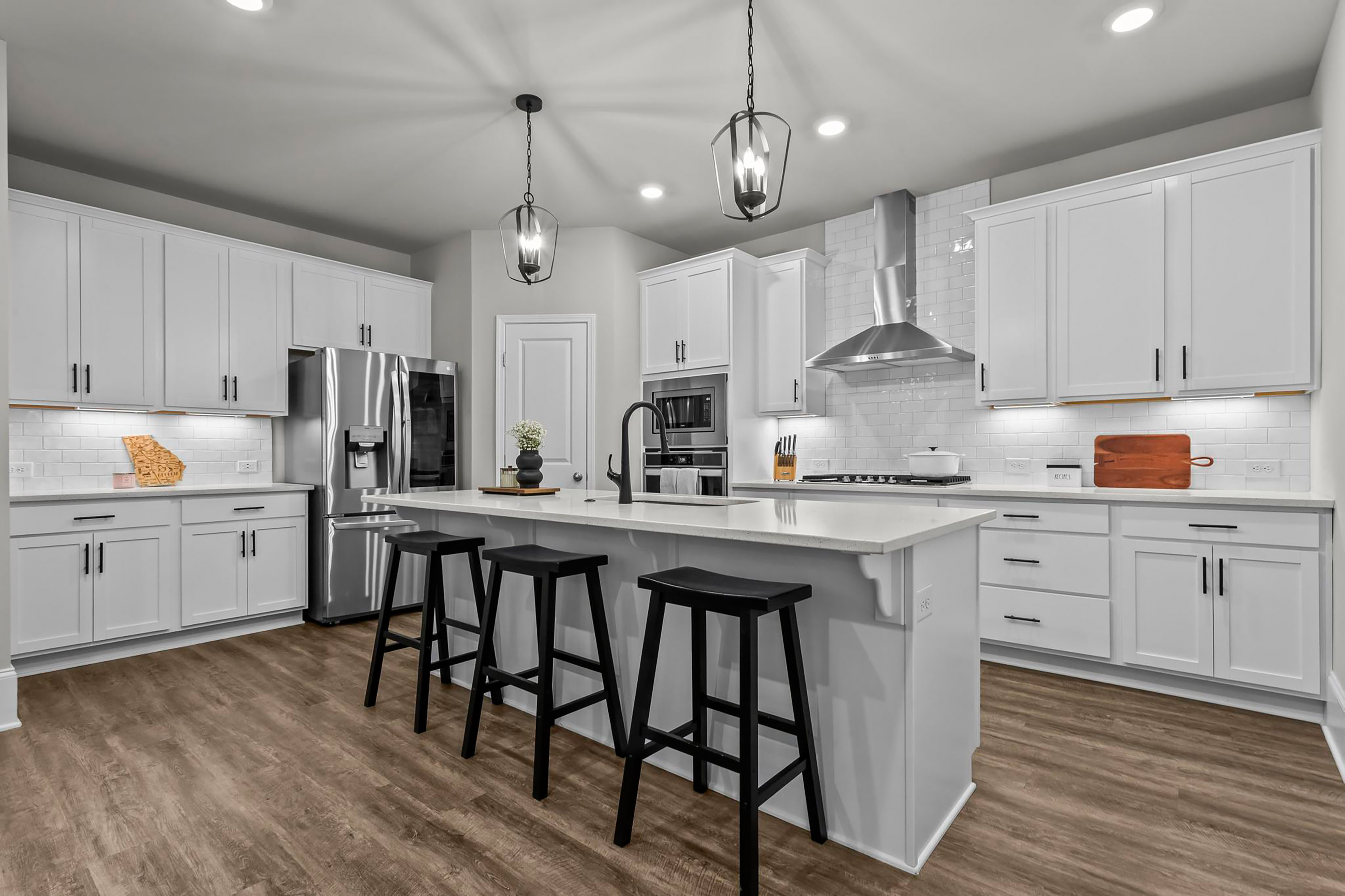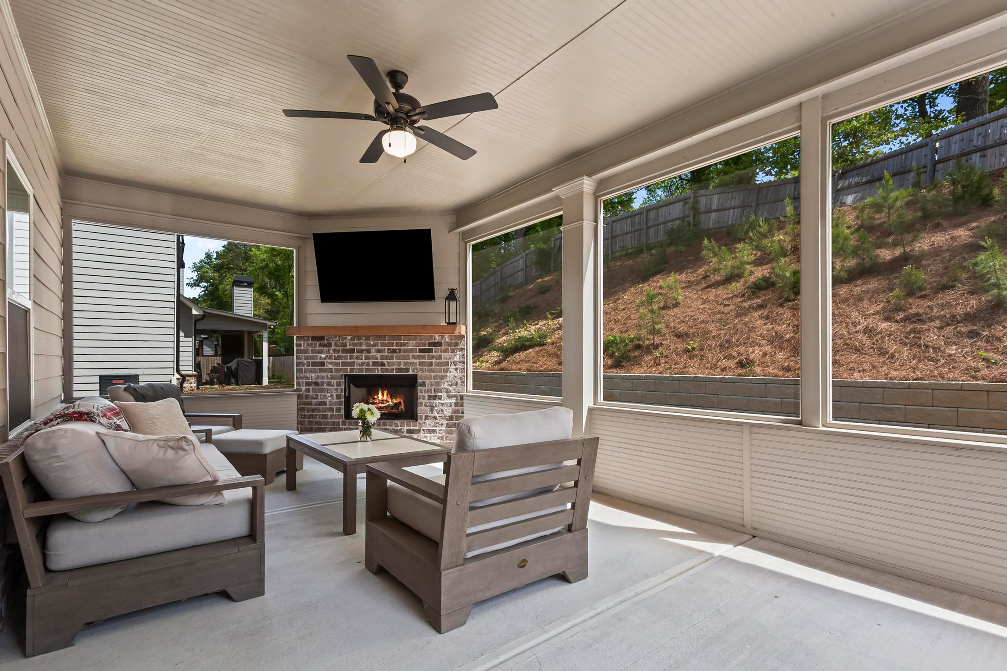 Welcome to this beautifully maintained five-bedroom, four-bathroom home in The Reserve at Lanier, ideally located in Buford just minutes from Lake Lanier! Built in 2021 and offering over 3,500 square feet, this thoughtfully designed home combines modern finishes with functional living spaces throughout! The main level features a bright, open-concept layout with a stunning all-white kitchen complete with stone countertops, stainless steel appliances, an undermount sink, and a six-burner gas range. Enjoy both indoor and outdoor fireplaces, perfect for entertaining year-round, along with a screened-in back porch overlooking a flat, usable backyard. A full bedroom and bathroom on the main level provide ideal guest accommodations, in addition to a dedicated office or flex space and formal dining room. A convenient mudroom adds everyday functionality. Upstairs, you’ll find four additional bedrooms plus a spacious bonus room, offering flexibility for a media room, playroom, or additional office. The oversized primary suite features vaulted ceilings, dual vanities, a glass-enclosed walk-in shower with dual shower heads, and a massive walk-in closet. Additional highlights include a two-car garage and newer major systems, all approximately five years old, including the roof, HVAC, and water heater. This home truly checks every box—space, style, and location. Don’t miss your opportunity to make it yours! Five-bedroom builds in this community rarely ever hit the market!