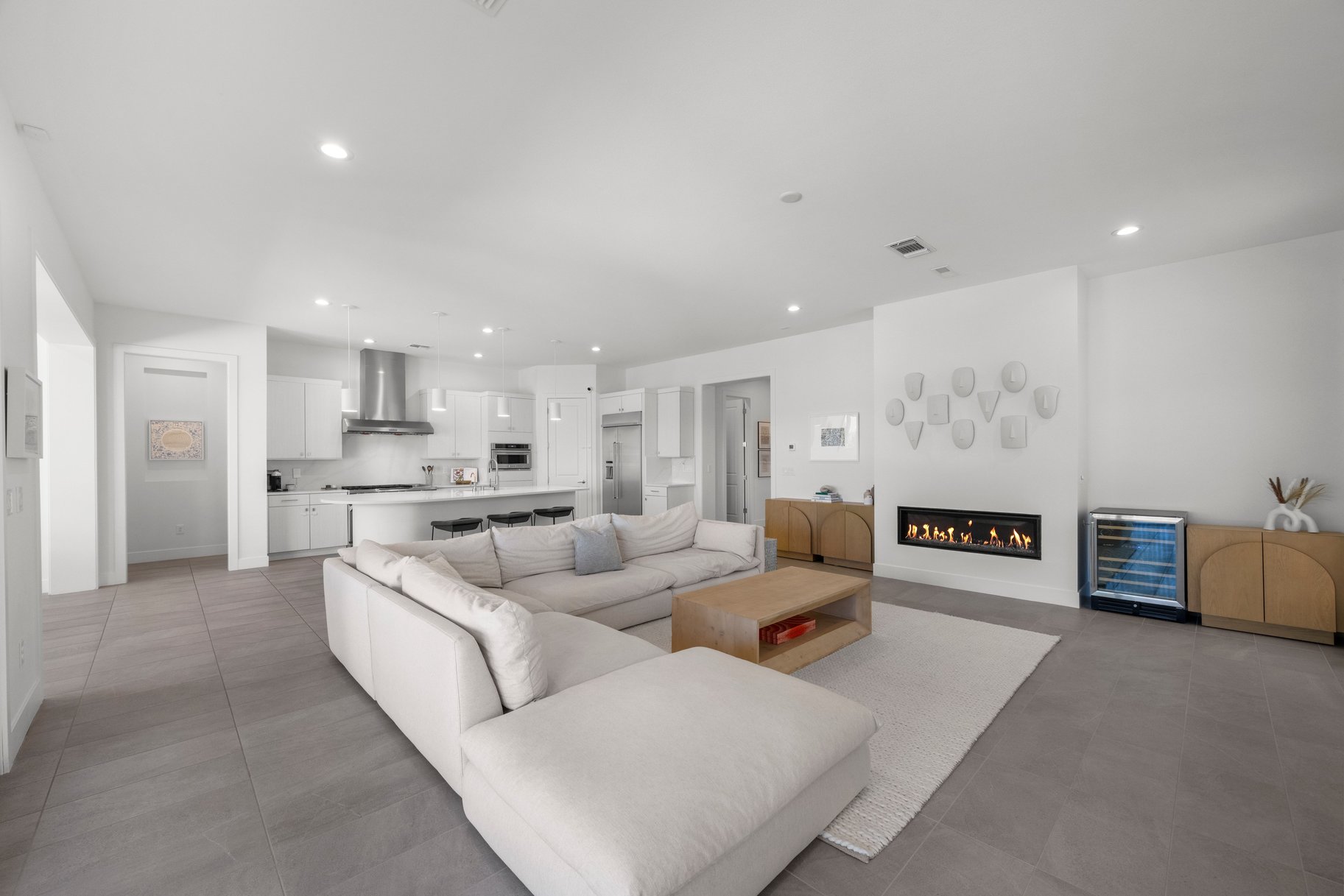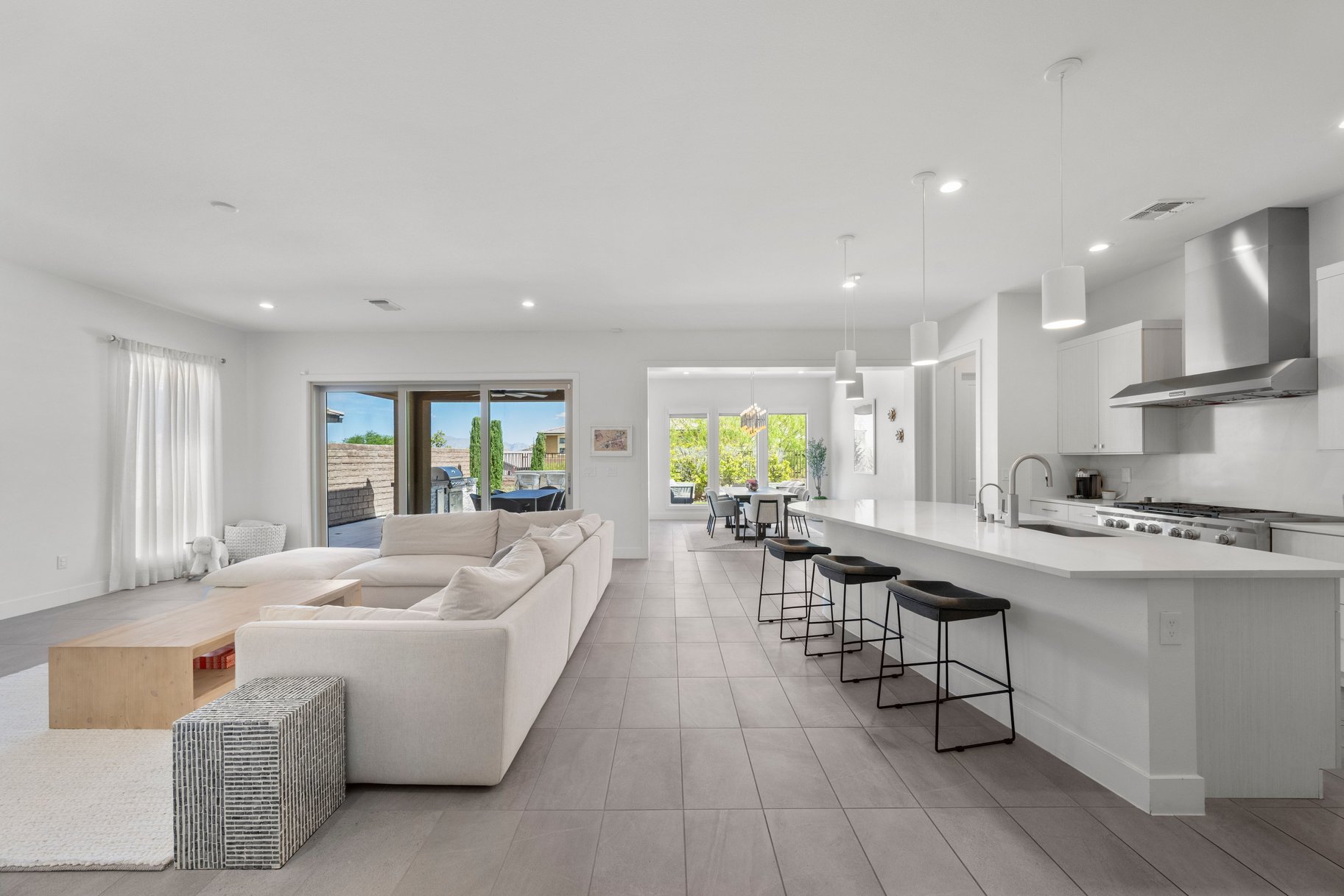 Experience refined desert living in this stunning single-story home located in the highly sought-after guard-gated community of Reverence in Summerlin. 3 bedrooms, a dedicated office, 2.5 baths, with a 2.5 car garage, this thoughtfully designed residence blends luxury & functionality. The gourmet kitchen showcases custom cabinetry, an oversized island, & stainless steel appliances, including a 48-inch double oven, & built-in refrigerator, perfect for both everyday living & entertaining. Step outside to a beautifully designed backyard featuring a built-in BBQ, fireplace, & custom outdoor table, creating an ideal space for relaxing or hosting. The spacious primary suite offers double sinks & a stunning custom walk-in closet. Enjoy breathtaking mountain views & a prime location just minutes from Downtown Summerlin’s premier dining, shopping, & entertainment. The Reverence award-winning clubhouse features cabanas, a state-of-the-art fitness center, resort-style pool, hot tub, & much more!