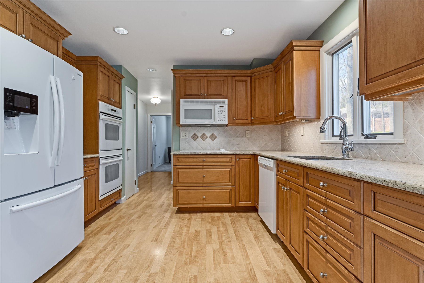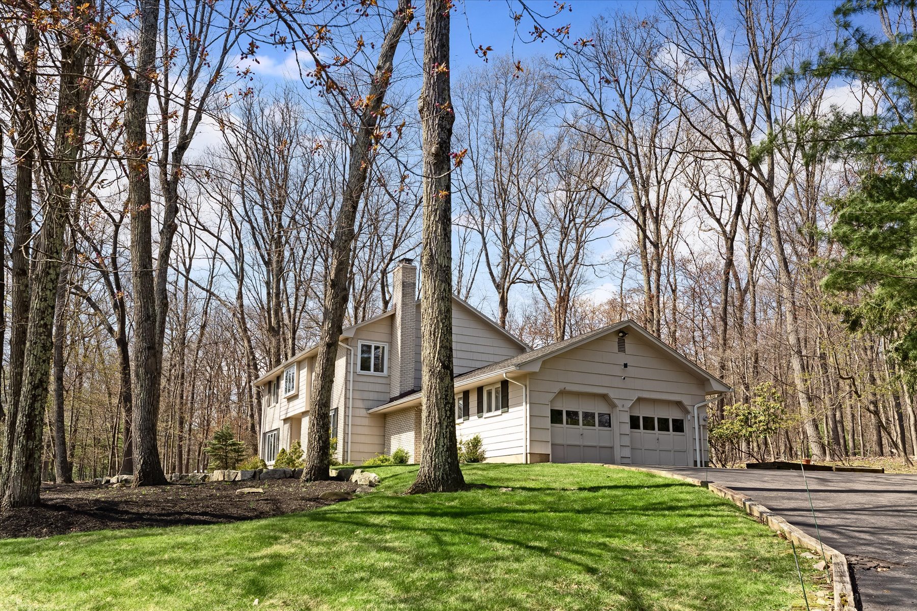 This warm and inviting center hall colonial home is located on a quiet tree-lined street in the lovely Powder Mill North development section of Parsippany. Tons of natural sunlight in every room.. Spacious entry with double front door gives access to both formal living and dining rooms with hardwood floors and floor-to-ceiling windows. The kitchen is the heart of the home with double GE ovens, GE stovetop, Samsung refrigerator, custom wood cabinets, pantry, and granite countertops. Step down into the family room where there is access to an outdoor patio, English-style wood burning fireplace, and access to a two-car garage. First floor office/playroom, powder room and laundry complete the first floor. Second level gives four generous bedrooms.. one being the spacious primary with lots of sunlight and luxury bathroom with granite vanity, tiled shower and walk-in closet. Lower level can easily be finished for additional living space. Hardwood floors throughout house except for family room and office.. Multi-zoned baseboard hot water heat, central air. Beautiful curb appeal, private yard with patio. Convenient to major highways, shopping, parks, schools.. Beautiful home in superior location with top-of-the-line schools.