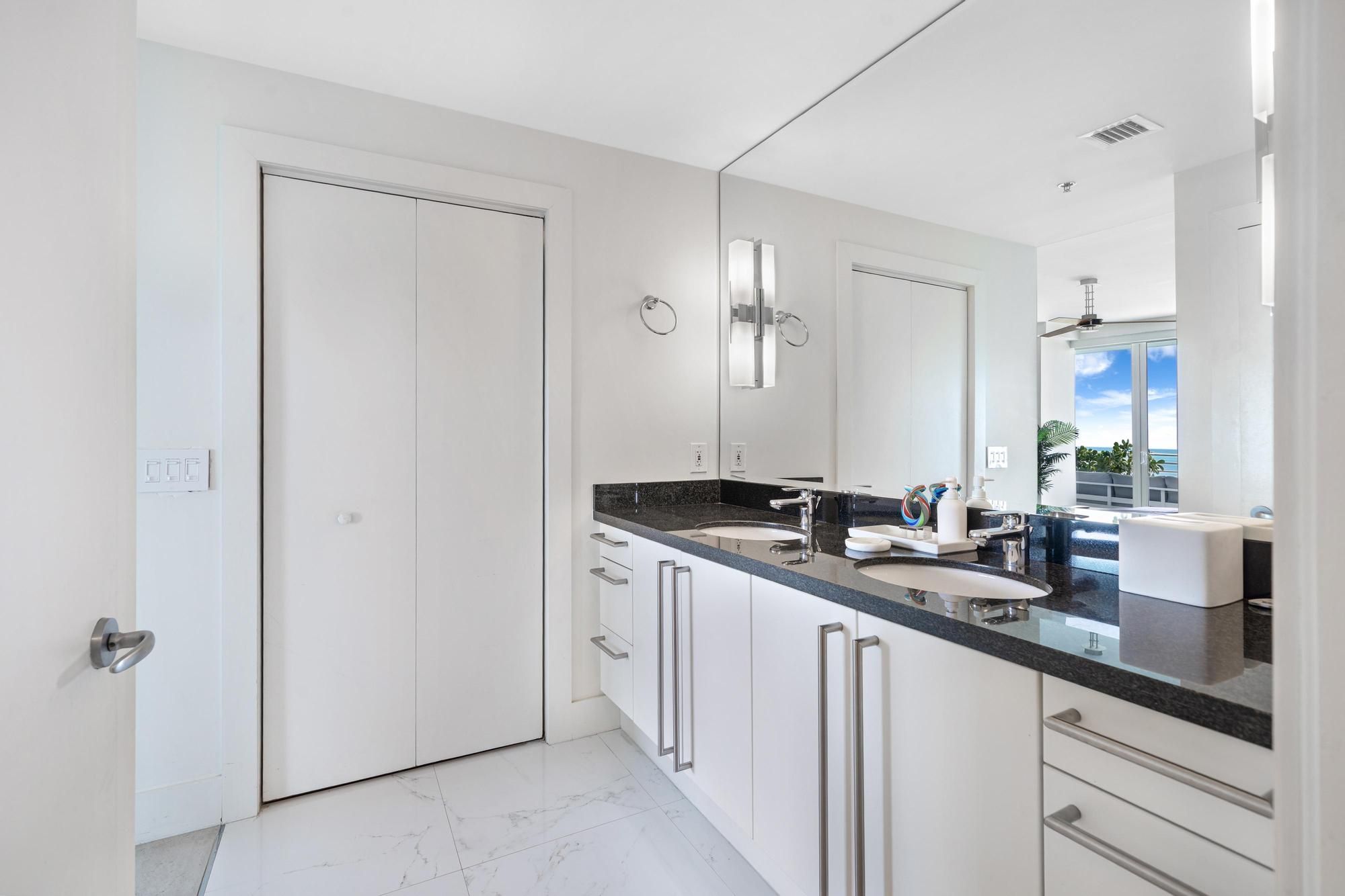 Positioned on the top floor of a boutique South of Fifth building, this southeast/southwest corner penthouse offers direct oceanfront exposure with unobstructed views of the Atlantic, South Pointe Park, and the Miami skyline — all from an expansive wraparound balcony spanning both exposures.The open-concept living and dining area flows seamlessly to the balcony, capturing sweeping ocean and park views from every angle. The primary suite faces east with direct ocean sightlines and morning light, while the west-facing guest suite frames the park and city skyline at sunset — each bedroom with private balcony access.The primary bath is appointed with dual vanities, a soaking tub, and a separate glass-enclosed shower. The guest suite features its own full en-suite bath. Both bedrooms offer generous closet space and direct terrace access.Building amenities include a pool, assigned parking, and a flexible rental policy permitting up to 12 short-term rentals annually — one of the most permissive in Miami Beach's most coveted neighborhood. Steps to Joe's Stone Crab, Milo's, and South Pointe Park. Available for short-term lease through November 15th.