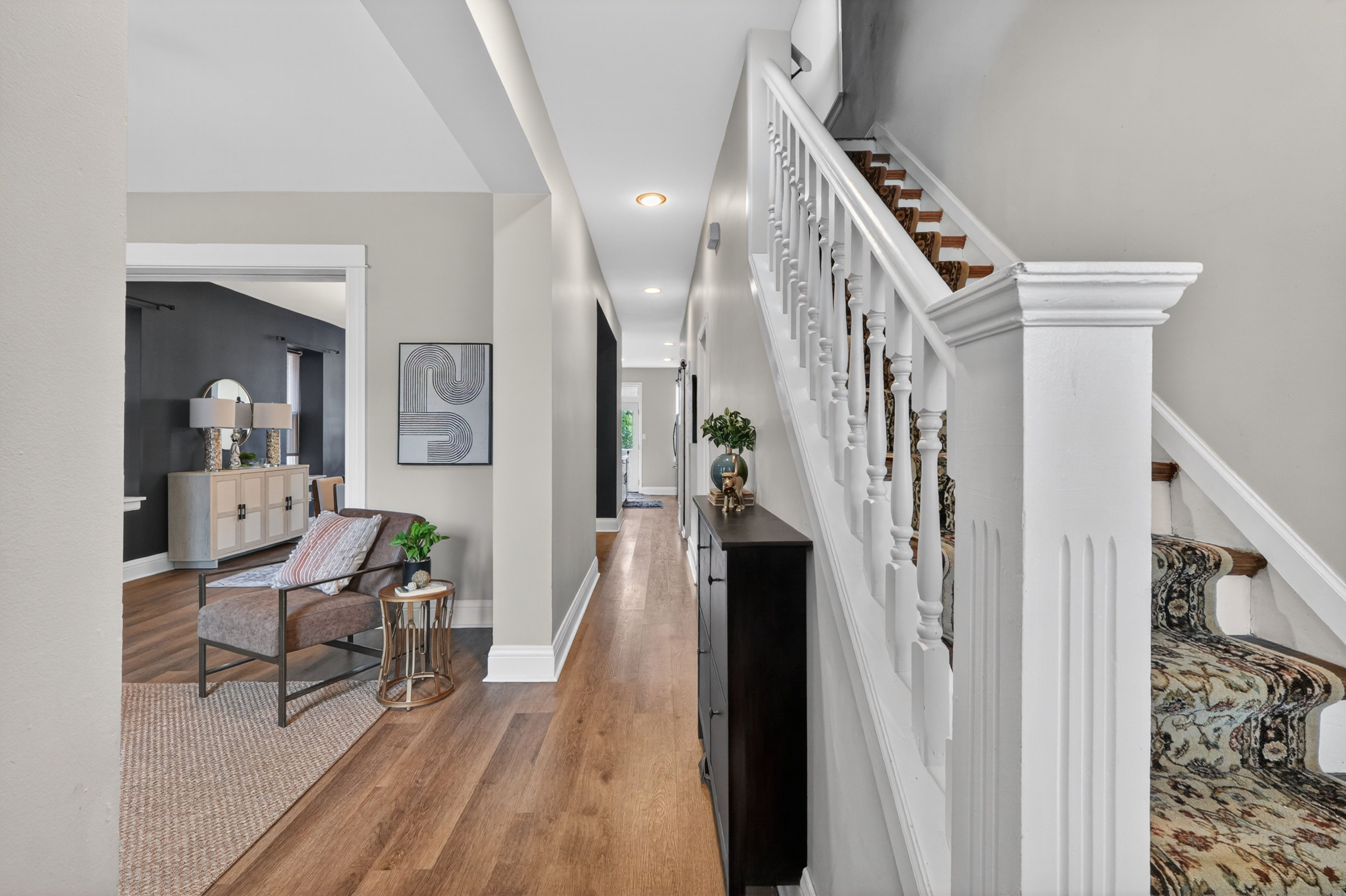 Step into this beautifully updated, inviting home where style meets everyday comfort. A welcoming entryway opens seamlessly into a spacious, light-filled living room, creating an immediate sense of warmth and flow. The layout effortlessly connects the living room to the dining area, additional living space, and a thoughtfully updated kitchen—perfect for both relaxed living and entertaining. The kitchen features modern updates and is complemented by the convenience of first-floor laundry, making daily routines a breeze. Large windows throughout the home fill each room with abundant natural light, enhancing the bright and airy feel. Upstairs, you’ll find two generously sized bedrooms along with a stunning primary suite complete with a walk-in closet and a beautifully appointed bathroom featuring a large shower and luxurious soaking tub. Ideally located just blocks from some of St. Louis’s best parks and restaurants, this home offers exceptional walkability and convenience. Don’t miss your chance to experience it in person!