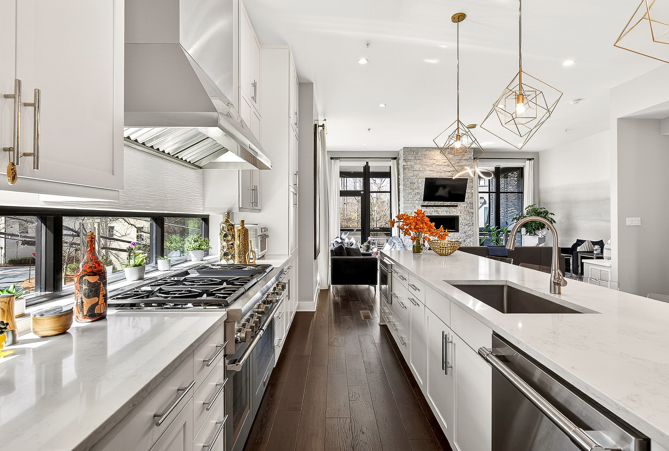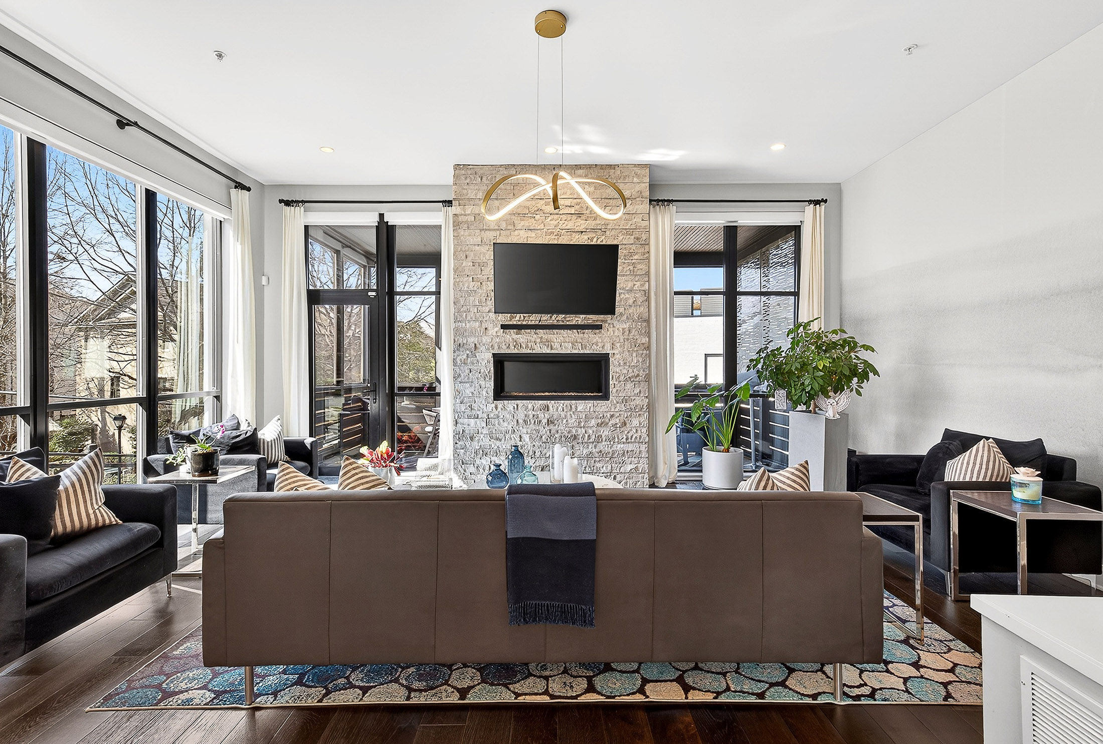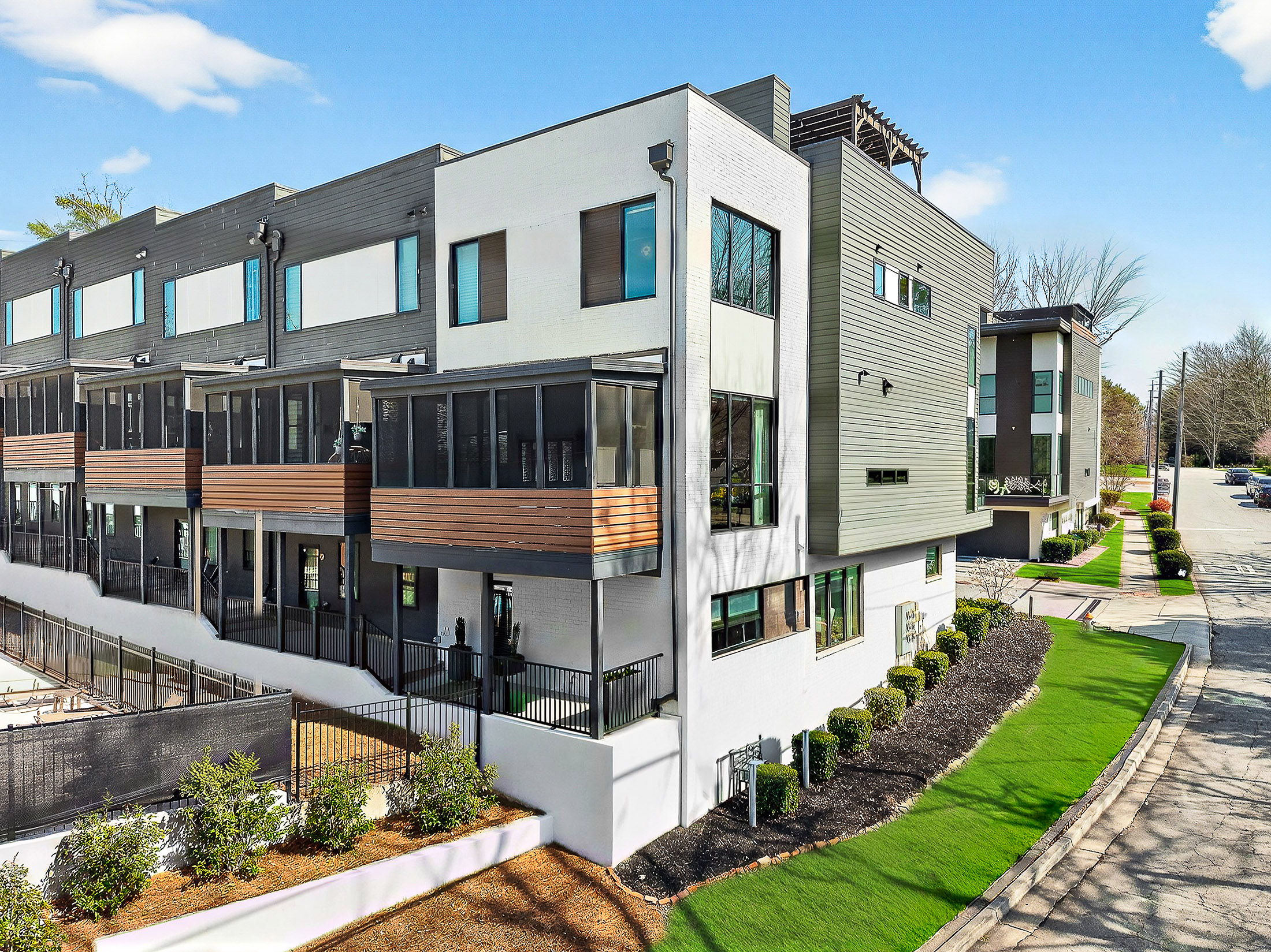 Set within the Moda- Decatur community, this exceptional end-unit townhome represents the largest floorplan available an architectural statement of modern luxury, refined with thoughtfully curated design and extensive upgrades throughout including 11' ceilings, wide plank hardwoods, designer lighting and custom window treatments. Bathed in natural light from expansive floor-to-ceiling windows, the residence unfolds across multiple levels with soaring ceilings and a seamless blend of sophistication and comfort. A private residential elevator provides effortless access to each floor, enhancing both convenience and livability. At the heart of the home, the chef's kitchen is a striking centerpiece anchored by an oversized waterfall quartz island and outfitted with premium Thermador appliances, custom cabinetry, stainless sink, and designer finishes. Adjacent living and dining spaces are elevated by a dramatic floor-to-ceiling stone fireplace and refined architectural details, complemented by remote-controlled blinds and custom drapery that frame the main living areas with both function and elegance. Designed for both everyday living and elevated entertaining, the home offers multiple indoor and outdoor gathering spaces. Four distinct outdoor living areas include a screened porch, and a rooftop retreat complete with a wet bar, fireplace, privacy enhancements, and integrated entertaining features creating a rare, resort-like experience in the heart of Decatur. The upper levels reveal a serene primary suite with custom closet build-outs and a spa-inspired bath, alongside additional bedrooms and flexible living spaces. A secondary bedroom is complemented by an exceptionally large closet with a window, offering both natural light and remarkable storage. The walk-in laundry room accommodates a full-size washer and dryer, enhanced by custom cabinetry and shelving, and is discreetly enclosed with a sliding barn door for a polished finish. The terrace level offers exceptional versatility, featuring a private en-suite bedroom and an additional bonus room with remote-controlled blinds ideal for a home office, media room, or quiet retreat. Thoughtful storage solutions are integrated throughout the entire home, including pull-out kitchen shelving systems, custom closet installations, and built-in organization features. The garage is a notable enhancement, exceeding what is typically found within the community, and features natural light from a window, custom Garaginization cabinetry, a wall-mounted storage system, and a powered overhead rack for optimal organization and functionality. Additional enhancements include hardwood flooring throughout, under-cabinet lighting, designer wall treatments, rooftop gas line for grilling, integrated pergola features, and curated lighting selections that elevate every space. Ideally located just moments from Decatur Square, Emory University and Hospital, Glennwood Park and the DeKalb Farmers Market, this residence offers a rare combination of modern design, everyday convenience, and access to some of Decatur's most desirable destinations. Enjoy special community amenities including the saltwater swimming pool and firepit. A true statement property where modern architecture meets intentional living.