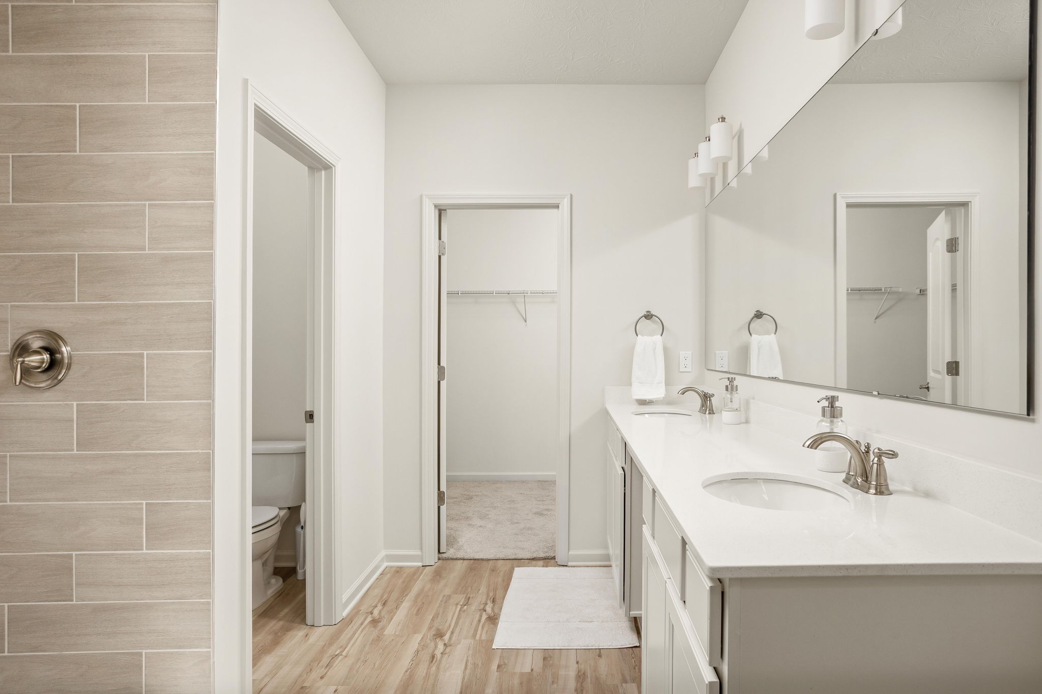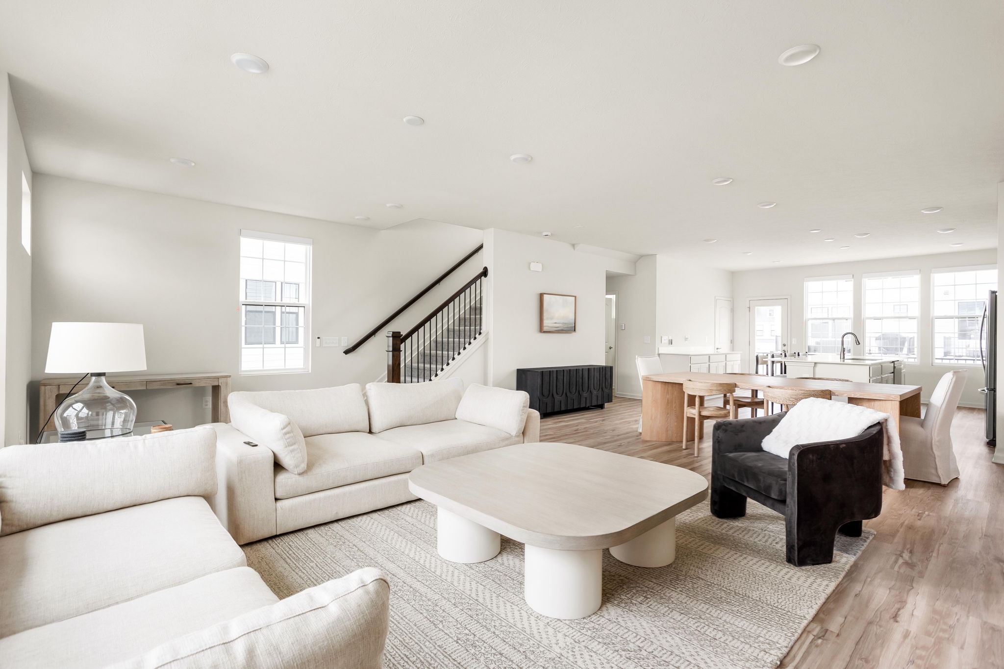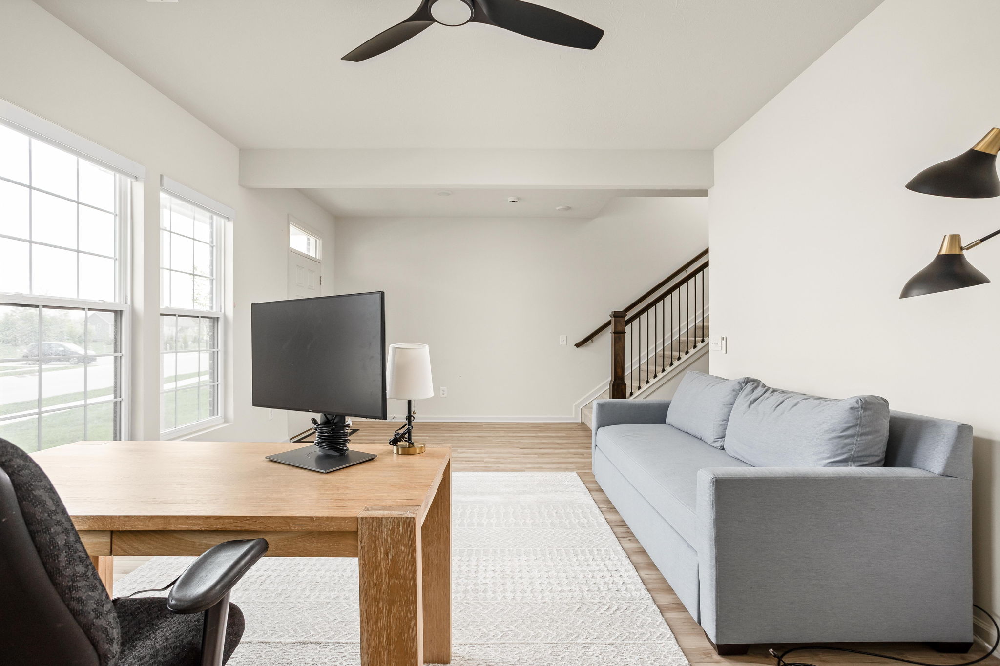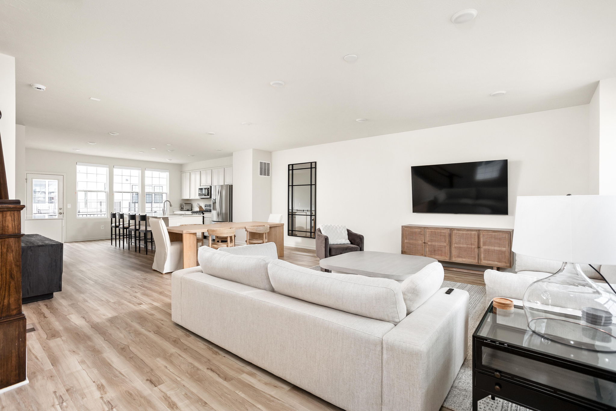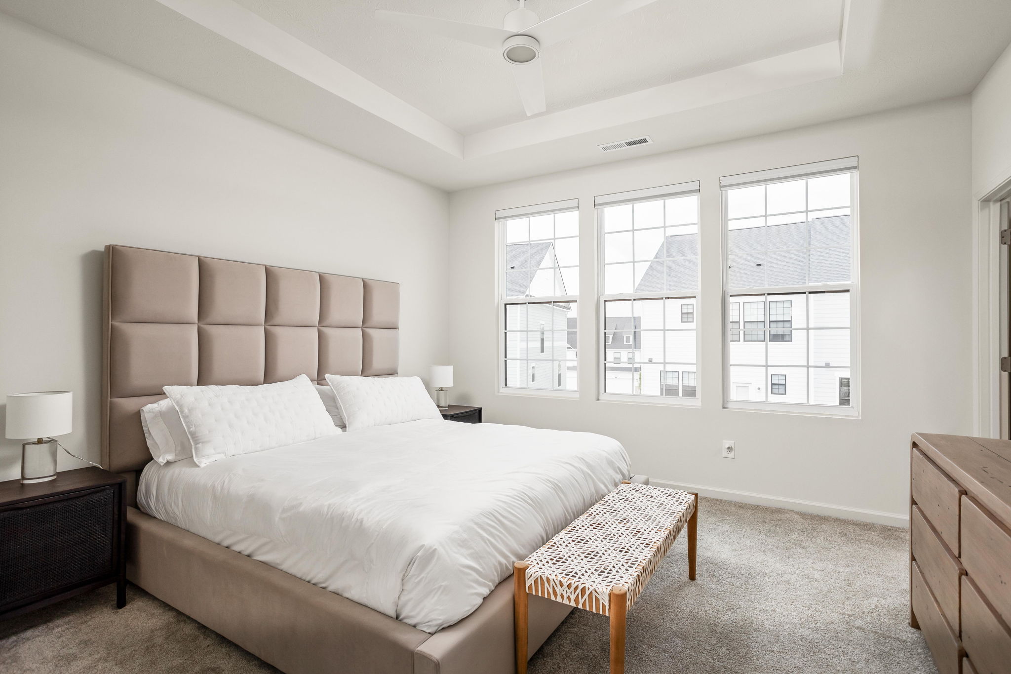 A standout end-unit with a pond view in the Towns at Appaloosa Crossing, this 2024-built townhouse offers the advantage of newer construction, a functional three-level layout, and abundant natural light-all in a highly convenient Zionsville location. The home includes 3 bedrooms, 2 full baths, 2 half baths, and an open main living space that seamlessly connects the kitchen, dining, and family room. The kitchen is well-designed with white cabinetry, a large center island, a gas range, and a walk-in pantry, along with access to a private deck for outdoor living. As a corner unit, the home is filled with natural light thanks to additional windows throughout, all equipped with custom mechanical shades. Upstairs, the primary suite features tray ceilings, a wall of windows, a spacious layout, and a well-appointed bath with a large walk-in shower, double vanities, and a generous walk-in closet. Two additional bedrooms offer flexibility for guests, a home office, or everyday living. The lower level adds valuable flexibility, currently used as an office but easily suited for a workout space, hobby area, playroom, or the option to enclose for a fourth bedroom. The two-car garage is finished with epoxy floors and provides extra storage space. Ideally located with quick access to shopping, dining, and the interstate, this home combines low-maintenance living with everyday convenience.