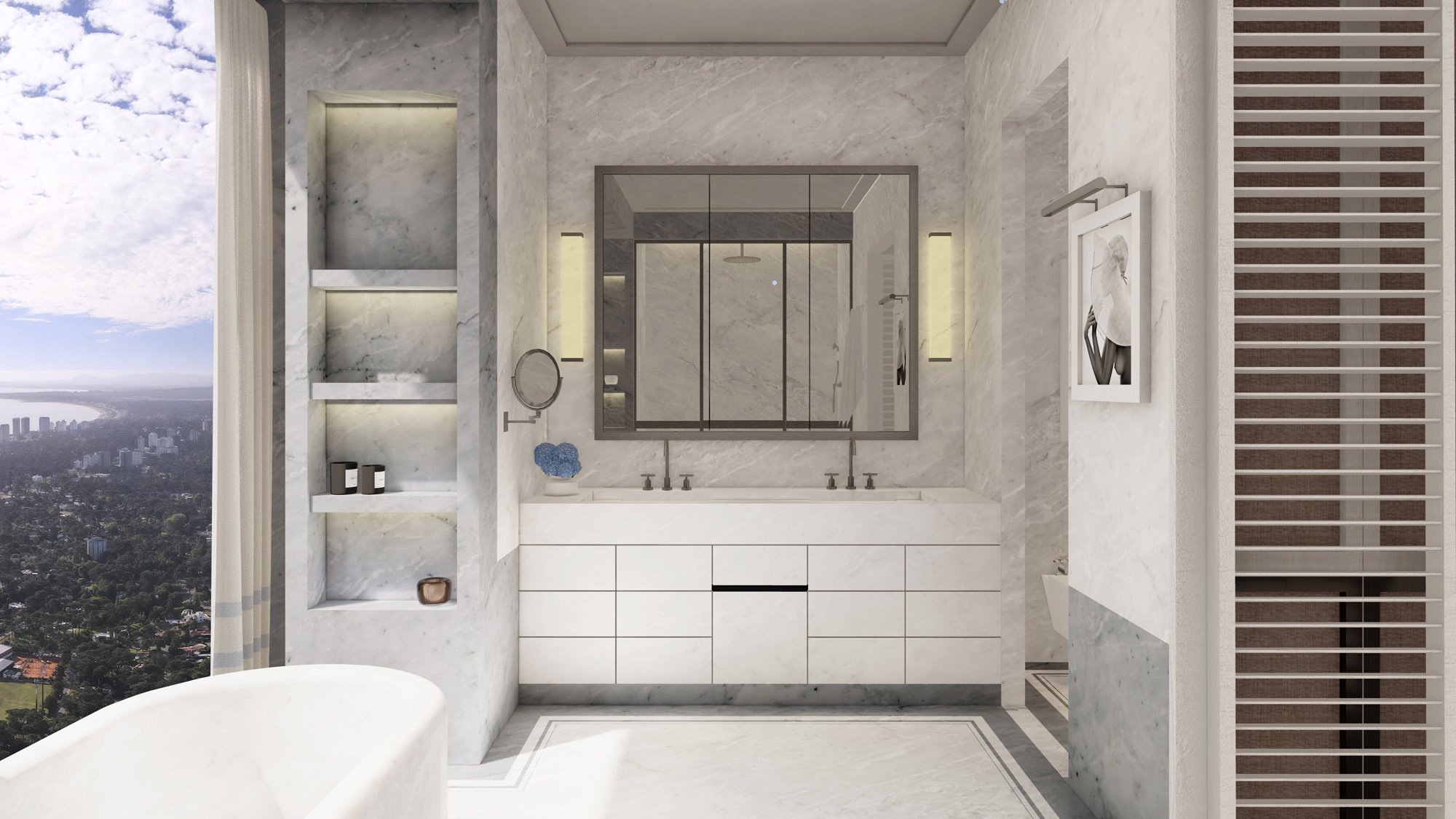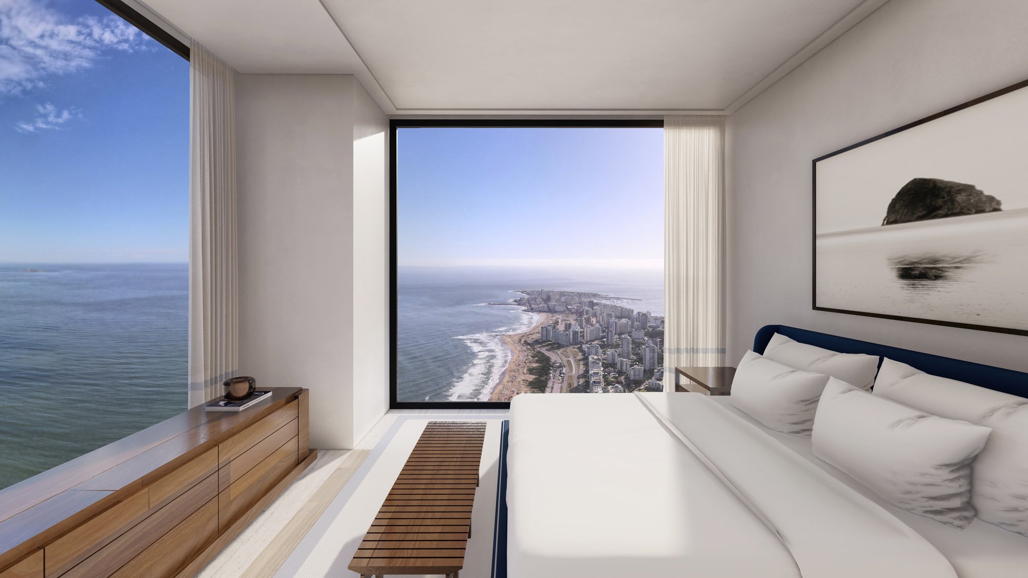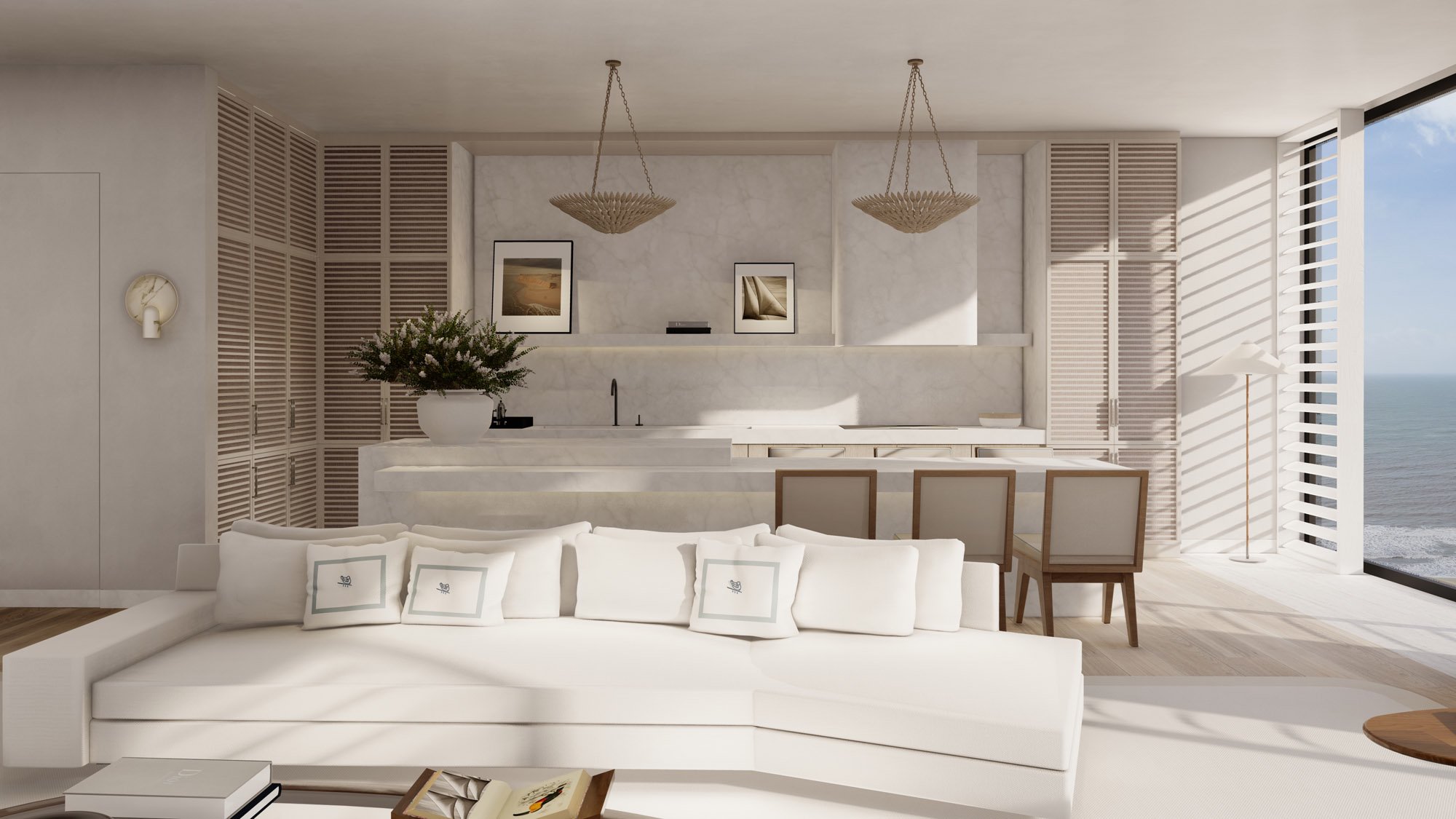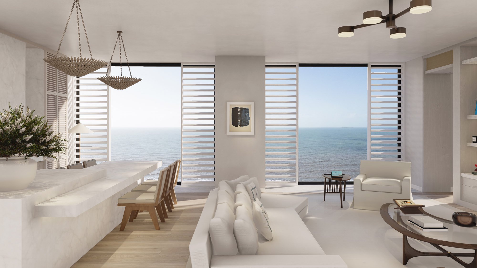Cipriani Resort, Residences & Casino. Discover 203 m2 of coastal sophistication in these corner units. Each space has been meticulously designed, featuring two bedrooms, two full bathrooms, and a powder room, blending elegance and functionality. The living room harmoniously integrates with a modern kitchen diner, ideal for hosting guests or enjoying family moments. The privileged views, along with high-quality finishes, create an ambiance of luxury and comfort, perfect for those seeking an exclusive seaside lifestyle.