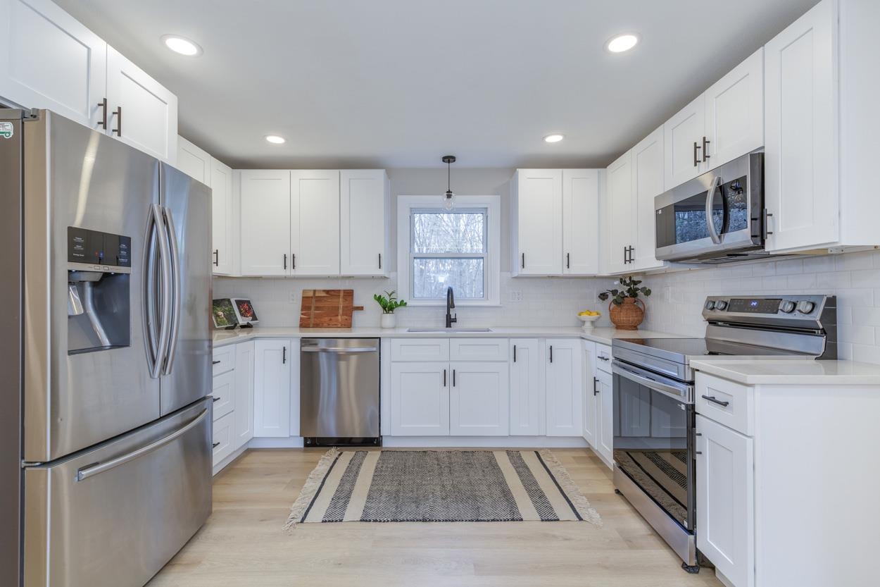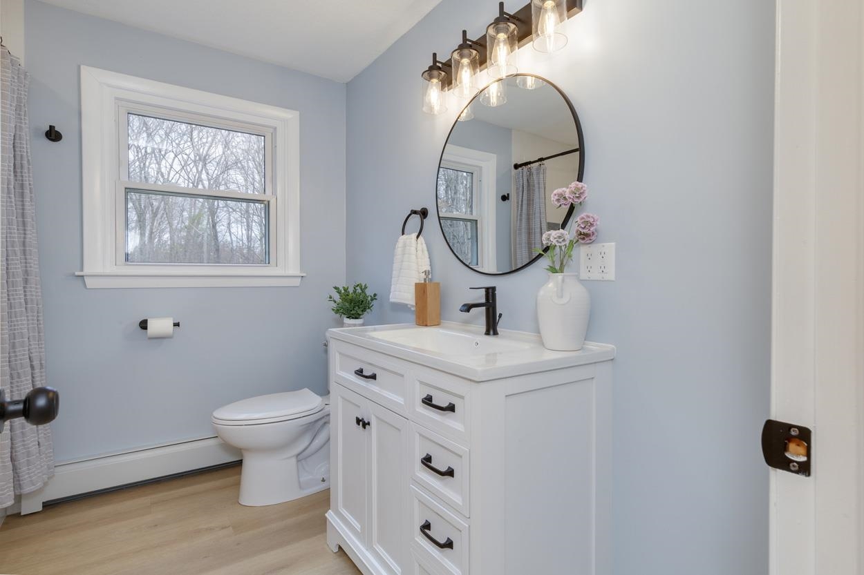 Welcome home to this beautifully renovated gem in Boscawen! Step inside through the mudroom of your dreams - perfectly designed with space and style to keep life organized. This home has been recently updated from top to bottom, offering modern finishes and a fresh, clean feel throughout. The stunning brand-new kitchen features gleaming granite countertops, sleek stainless steel appliances, modern tile backsplash and gives plenty of reason to be the envy of all your friends. The bright, open floor plan flows with ease, creating a warm and inviting feel throughout. The first floor offers incredible flexibility with a spacious bedroom, full bath, a large dining room, and a sun-filled living room. The bathroom is a true highlight, featuring beautiful tile work, a rain head shower, and a body wand - creating a spa-like experience right at home! Head upstairs to find two large and inviting bedrooms, each offering comfort and privacy. The finished lower level adds even more living space - perfect for a bonus room, home office, or gym. Step outside and enjoy the huge, level lot, ideal for outdoor fun, gardening, or relaxing evenings. Located in a desirable cul-de-sac neighborhood, this property offers both peace and convenience. A detached garage offers incredible flexibility, with tons of space for a workshop, storage, or hobbies - ideal for anyone needing extra room to create or build. Plus, enjoy easy access to the highway and nearby shopping - both less than 10 minutes away! Move-in ready, stylish, and packed with updates - this home is ready to impress and is not one you will want to miss! Schedule your private showing or stop by one of the open houses this weekend! Quick close possible! *Agent related to Seller
