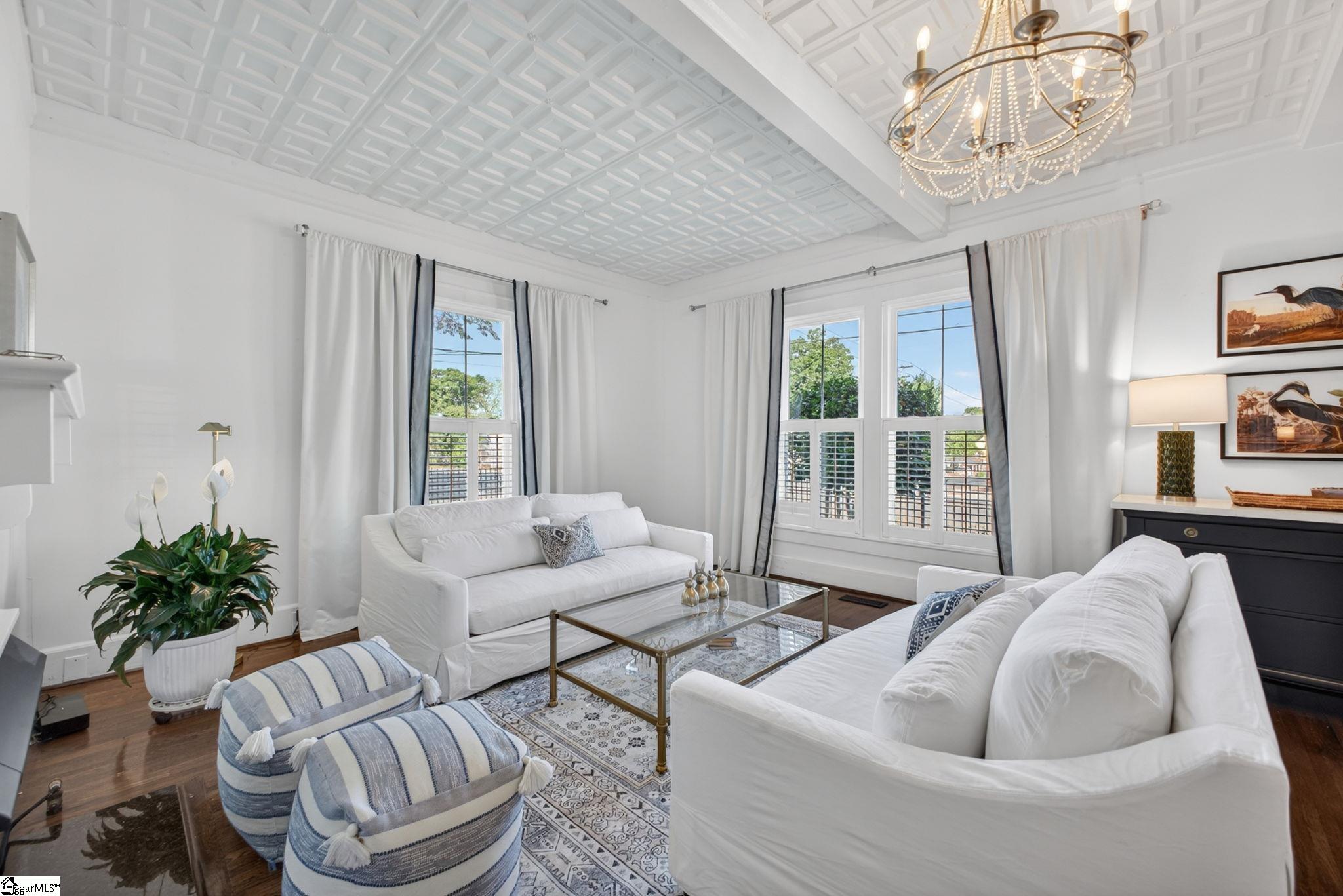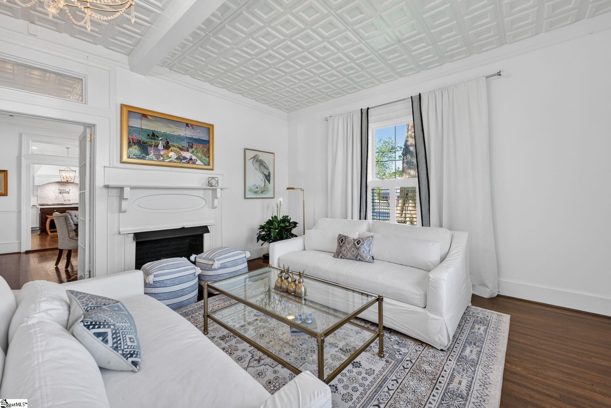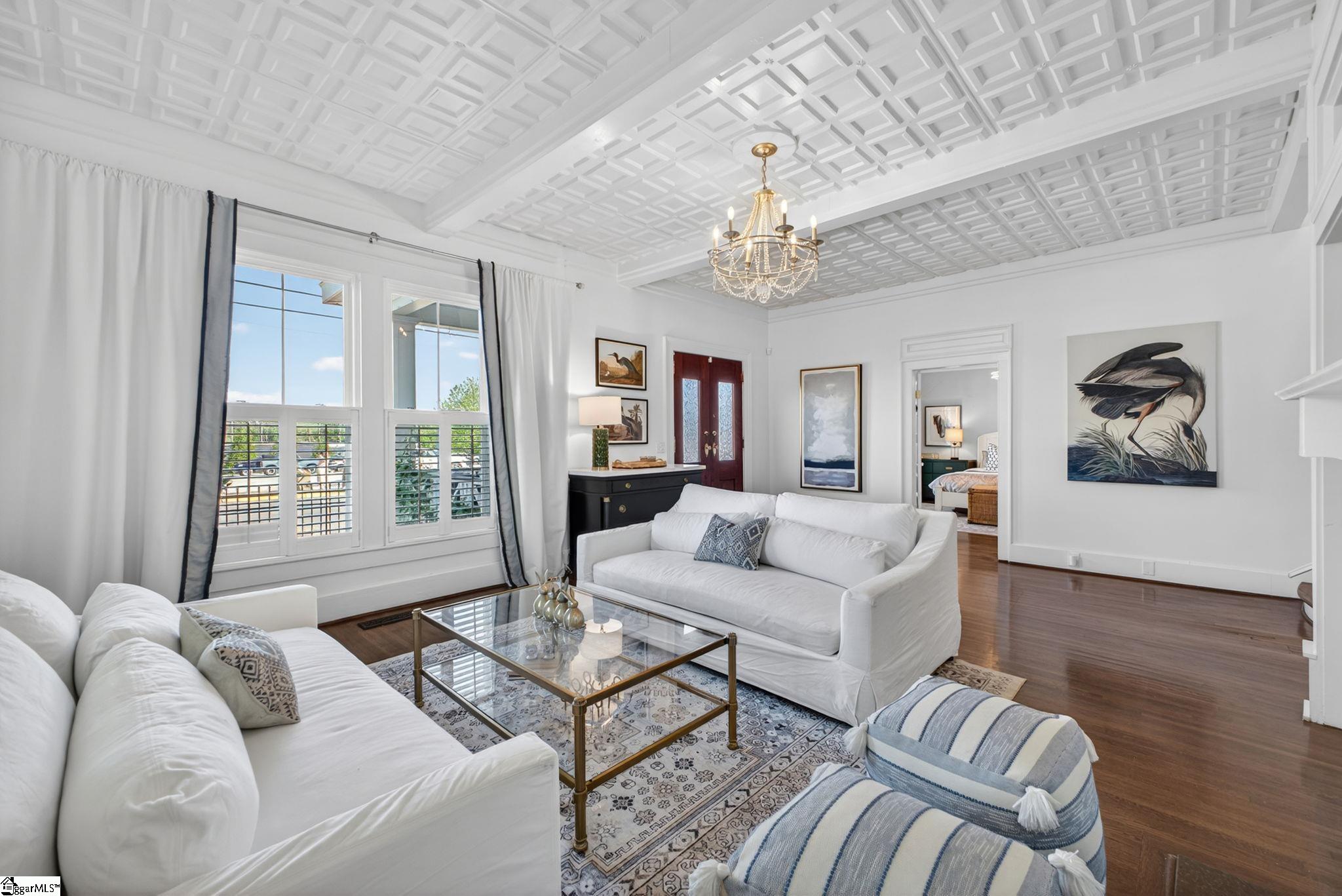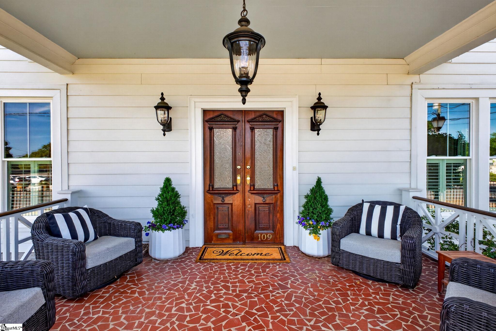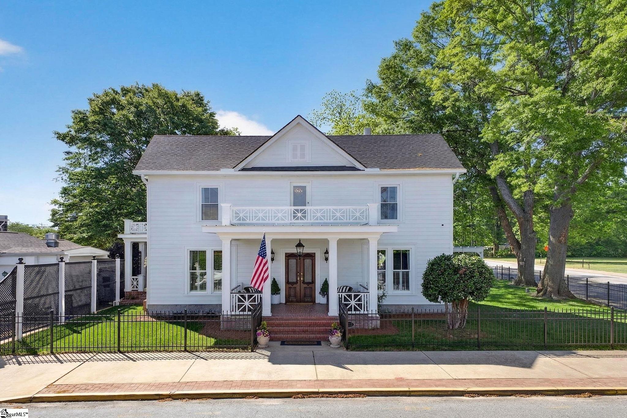 Refined downtown living in a timeless historic property right in the heart of Simpsonville. This exceptional residence offers an elevated lifestyle just steps from the energy, dining, and boutique shopping of vibrant Main Street. Come live your best Hallmark life in this incredible historic home that was lovingly built in 1885, making it the most historic house in downtown Simpsonville. The character and integrity have been carefully preserved throughout the decades of dedicated maintenance and updates. This is truly a one- of a-kind home. The curb appeal of this stately southern beauty can only be outdone by the beauty you'll find inside . which will take your breath away. Elegant lighting, brilliant details, rich hardwood floors from the entry through the elegant formal living and dining spaces and into the kitchen, which is both functional and warm, blending historic character with modern convenience. A boutique style laundry area at the courtyard entry adds everyday practicality. A main-level primary suite offers privacy, complete with a beautifully appointed bathroom and overlooks a charming, covered patio. The second level features one bedroom and full bathroom at the top of the stairs plus two additional bedrooms that share a stunning full bathroom along with a finished storage closet. A loft area opens to a balcony with views of downtown. Step outside to discover a surprisingly private, fenced courtyard with storybook charm surrounded by a lush lawn and sets a new bar for landscaping. An additional 400-square-foot detached structure, fully heated and cooled, provides endless possibilities for a guest suite, art studio, or home office. The outdoor kitchen is a true highlight, complete with built-in Traeger and Weber Grill. This unique residence is grandfathered in as residential use in the heart of downtown and you have the flexibility to convert to commercial or live/ work mixed use since its zoned Business urban. Historically known as the Greene- Lewis house, this property has some stories to tell. The house has played a key role in the history of downtown Simpsonville. The original telephone switchboard and the original water tower were once on this property. It's modernized in every way with electrical, plumbing, crawlspace, HVAC, tankless water heater and more! The owners have added a finished storage closet as well as an abundance of floored attic storage. A two-car covered carport has an attached garden shed and you can find plenty of guest parking on the street or in the free parking lot across the street as well. It's an easy walk or golf cart ride to College Park and Gracely Park which feature brand new pickle ball courts for your enjoyment. Simpsonville Parks & Recreation has so much to offer for all ages. There are so many activities within walking distance including youth sports, movies in the park, holiday events, and festivals, The Simpsonville Senior Center is within walking distance and features a lounge, pool tables, exercise equipment, line dancing, Tai chi, bingo and more. Downtown living +Historic charm + Unbeatable walkability.
