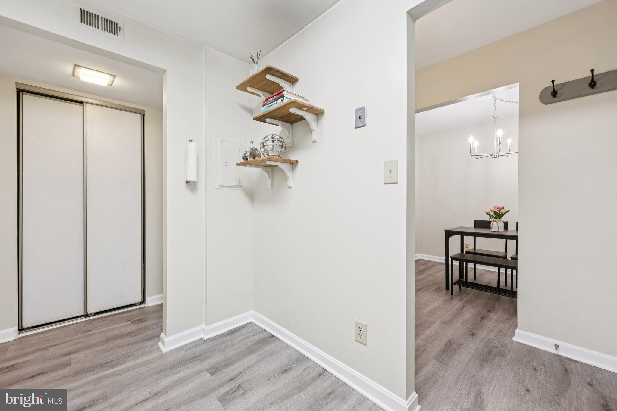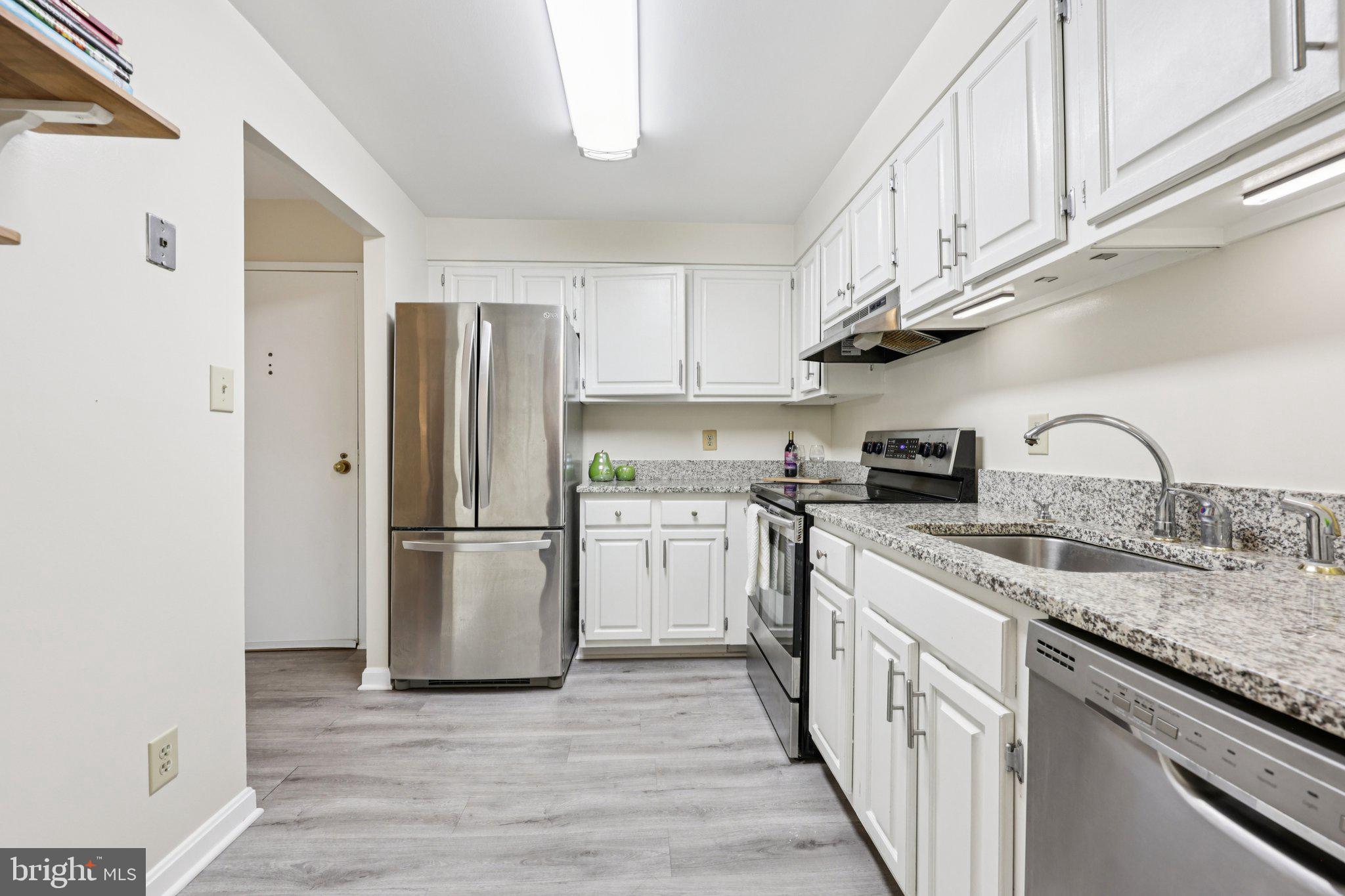 Move right in to this updated 2 bedroom, 2 full bathroom condo. The lovely kitchen features granite countertops and stainless steel appliances. Off the kitchen is the separate dining area and spacious living room. These areas all have updated floor. The light filled living room has a sliding glass door to the balcony surrounded by trees. The large primary suite has carpet in the bedroom and laminate flooring in the dressing/closet area. There is also an en-suite bathroom with shower and washer & dryer. The second bedroom is just across the hall from the other full bath. This unit has a garage parking space and a storage unit. Popcorn ceiling has been removed. This condo is a commuter's dream, as it's minutes to 395, Seminary Road and 495. The Condo amenities include an outdoor pool, tennis courts, gym, private courtyard and party room. Truly a must see.
