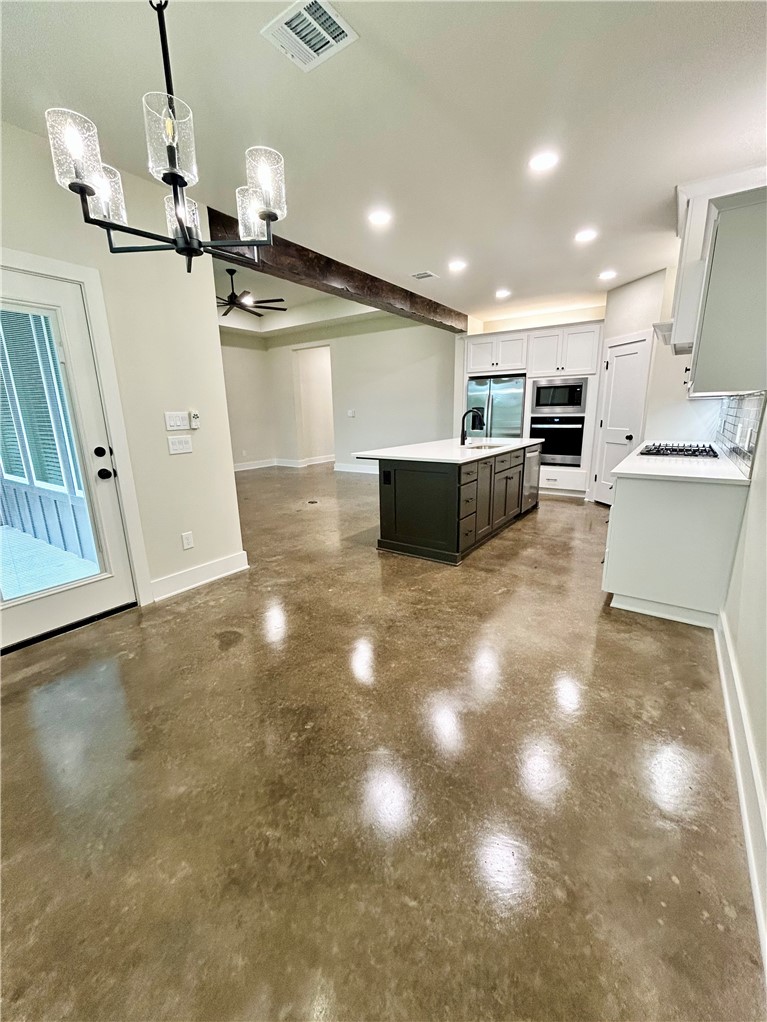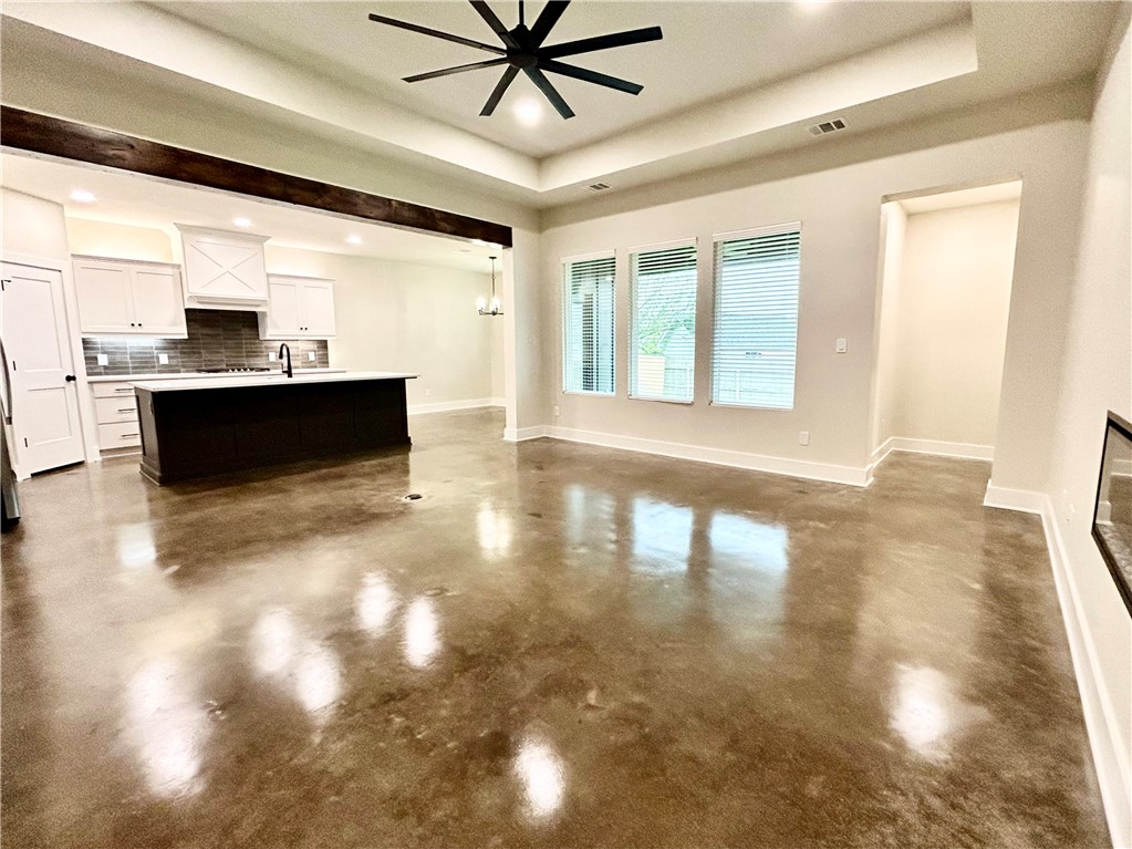 The home includes a study/nook area, sealed concrete floors throughout and stainless-steel appliances. The kitchen has a long island perfect for hosting! And opens up to the large living area with an electric fireplace. The primary suite features much space, granite countertops, and a walk-in shower! The popular Austin's colony subdivision is close to groceries, restaurants, and much more! Washer and dryer connections included.