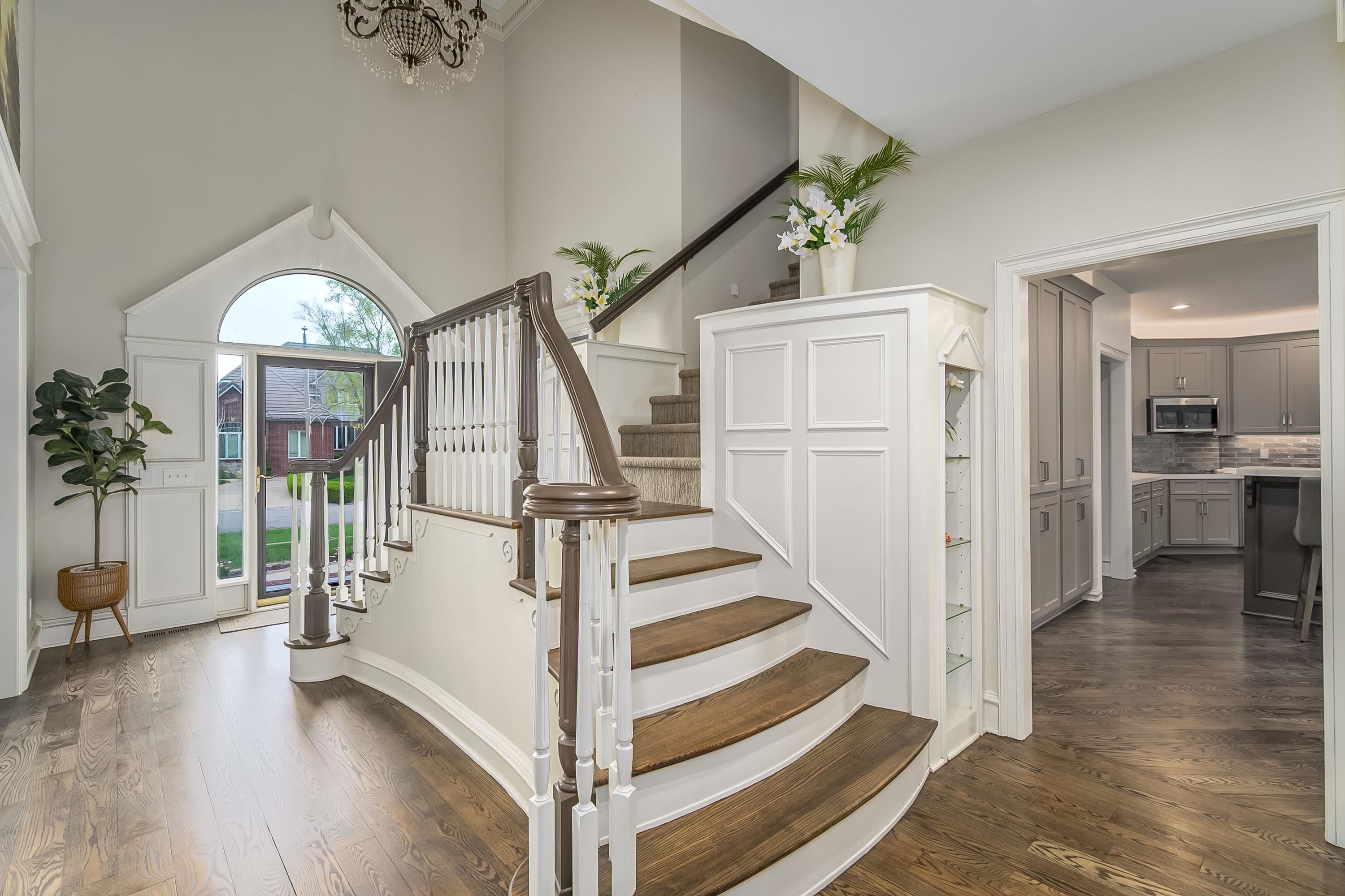 This beautiful home in the heart of Rainbow Lakes Estate addition is a must see!!!! Now is your opportunity to own a home within City limits with a million dollar view. This home is truly one of a kind in a well maintained neighborhood with lots of updates. This home has a spacious feel inside and out, featuring 4541 total sq. ft. on a .40 acre lot. The entry features beautiful grand wood staircase with two exits, hard wood floors on the main and upper (bedrooms)level, high ceilings and large windows with lots of natural lights all under a newer Da Vinci roof and stucco skim. The updated open kitchen allows you to entertain with ease featuring granite counters, wonderful wood cabinets and flooring, a breakfast nook and sitting area by the 2 way gas fireplace. The coffee bar is a delight for easy access. Main floor also has a room that can be used as a formal dinning room or sitting area, laundry, office and living room, plenty of space for everyone to spread out. Master bedroom is located upstairs, features include wood floors, coffered wood ceilings, a gas fireplace and bathroom with real slate floors, dual sinks, deep soaker tub and walk-in shower, spacious walk-in closet with built ins. The second bedroom has an attached bathroom and walk-in closet. The remaining 2 bedrooms upstairs are connected with a Jack & Jill bathroom. One with a walk-in closet and the other with a walk-in closet with room you can use as a multipurpose space (playroom, dress up, extra storage, hide and seek, etc.) Abundance amount of space in the finished basement including 1/2 bath, large family room with another 2 way gas fireplace. French doors lead you to a very large billiards room with attached bonus room. In addition, there is multipurpose room that can be used (craft room, man cave, play area, office), and a storage room and utility room with storage. You will have a hard time staying indoors when you see the million dollar view of the lake from the living room and kitchen. You will enjoy your time outdoors on the brick deck with easy access to the lower level with the newly installed staircase. The iron fence creates a privacy area with a beautiful new builtin pergola. For the convenience of your guests enjoy the outside access bathroom. The outdoor bathroom could be converted into a third car garage.