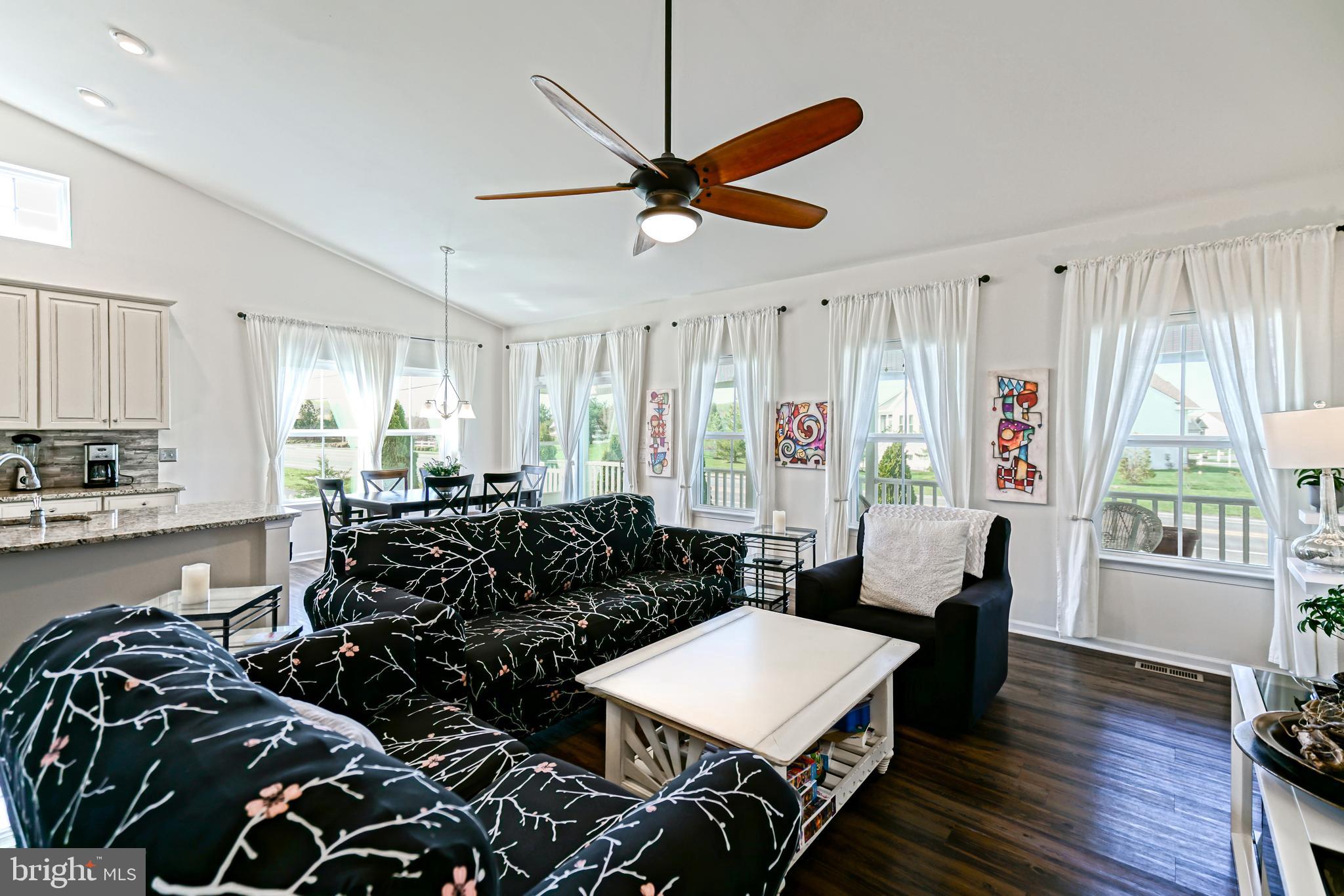COASTAL LIVING WITH ROOM TO ROAM! This isn't just another ranch-style home; it's a thoughtfully expanded sanctuary featuring a primary suite "wing" on the main floor and a hidden lower-level suite that's perfect for long-term guests or the ultimate home theater. From the moment you pull into the paved driveway, the home's striking stone-accented facade and professional landscaping set a tone of refined comfort. Inside, the open-concept main level is defined by soaring vaulted ceilings and rich, wood-toned luxury vinyl plank flooring that flows seamlessly from the sun-drenched living area into the stylish kitchen. The chef in the family will appreciate the expansive granite center island, crisp white cabinetry, and stainless steel appliances, all perfectly positioned for effortless entertaining. Adjacent to the kitchen, the dining area opens to a bright, airy space framed by large windows that invite the outside in. The main floor is thoughtfully designed for longevity and ease, featuring three bedrooms and two full baths, including a primary suite that acts as a private sanctuary. This primary retreat is notably spacious, boasting a dedicated sitting nook perfect for morning coffee and a spa-like ensuite bathroom with a double vanity. While the main level offers everything you need for daily life, the partially finished basement expands your horizons with a massive recreation room currently outfitted for fitness and leisure. This lower level also hosts a large fourth bedroom with charming French doors and a third full bathroom, providing an ideal setup for a multi-generational suite or a private haven for guests. Life in Vincent Overlook means more than just a beautiful home; it's a lifestyle upgrade. Residents enjoy access to the community's clubhouse with fitness center, and a sparkling outdoor pool, all while being nestled just minutes from the historic charm of downtown Milton and the world-class beaches of Lewes and Rehoboth. Whether you are searching for a full-time residence with plenty of room to grow or a sophisticated beach getaway capable of hosting the whole extended family, this property delivers on every front. Experience the perfect balance of quiet neighborhood charm and coastal convenience in a home that truly has it all.