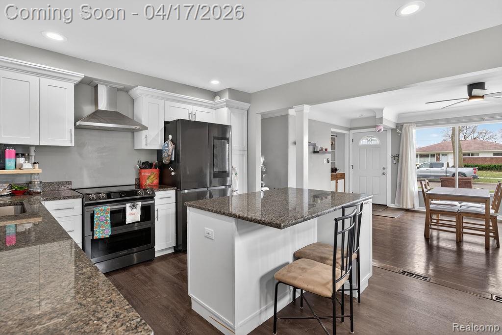 RARE FIND in St. Clair Shores! This fully updated, move-in-ready home checks every box buyers are fighting over. The open-concept kitchen and dining room are designed to impress and feature granite countertops, a large island with tons of storage, recessed lighting, newer stainless steel appliances, modern fixtures, updated flooring, and a large picture window for amazing nautral light. The large and cozy family room off the kitchen is complete with natural fireplace, recessed lighting, a wall of windows with backyard access. Outside you'll find your fenced-in backyard retreat featuring a new patio, driveway, and garage (2023) plus a recessed trampoline that your kids will just love! All three bedrooms feature hardwood flooring, including a unique second bedroom with a built-in loft bed (removable) and a closet with custom shelving! The bathroom has been fully updated with a tiled shower, newer tub, modern vanity, and tile flooring. This home is just minutes from the lake, marinas, waterfront parks, and schools. Other amenities include Roof with transferable warranty 2024, Furnace 2021, Hot Water Heater 2021, newer windows, new back door with built in blinds, and newer ceiling fans. Homes with this combination of updates, layout, and location don't last - schedule your showing today!