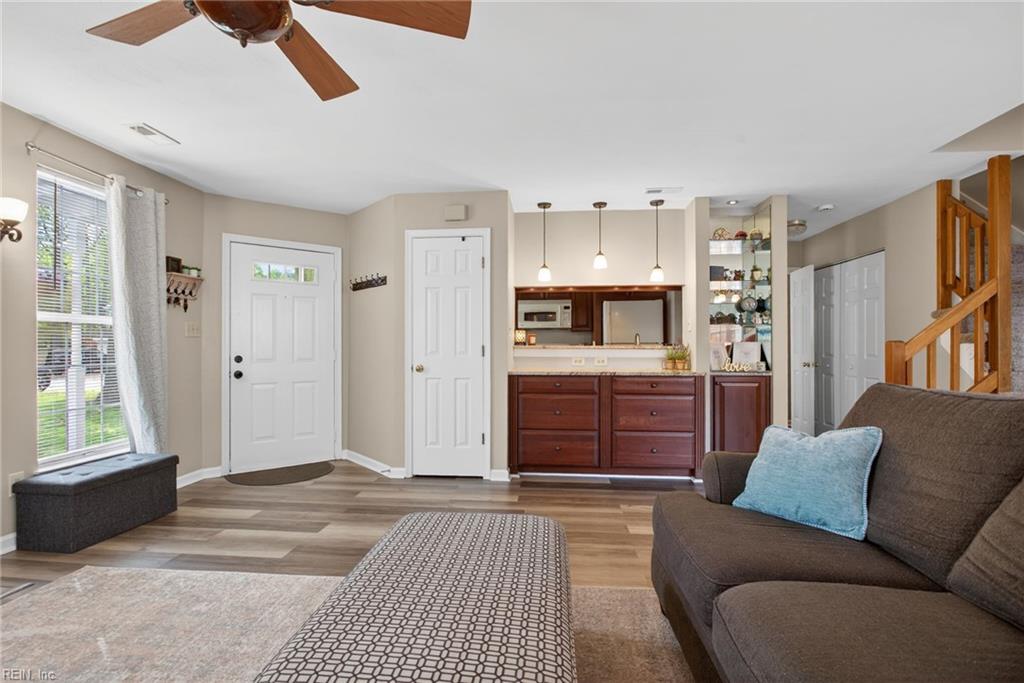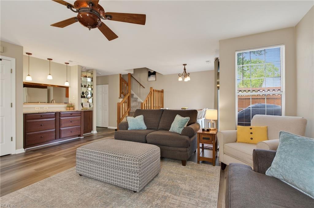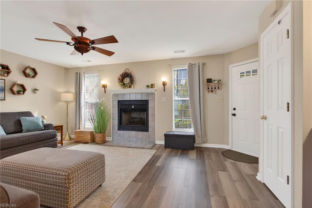 Welcome to 113 Grindstone Turn, a beautifully updated 3-bedroom, 2.5-bath townhome in Coventry. This home offers comfortable, low-maintenance living in a friendly community. Inside, enjoy a bright living area, a functional kitchen with breakfast bar, and seamless flow for everyday living. Sliding doors lead to a fenced backyard with patio perfect for relaxing or entertaining. Upstairs features a spacious primary suite, two additional bedrooms, full bath, and convenient laundry area. Every surface has been freshly painted and all flooring replaced with carpet and luxury vinyl plank for a modern feel. Coventry amenities include a clubhouse, pool, tennis courts, playgrounds, and trails. Convenient to military bases, schools, shopping, dining, and highways. Don't miss this Yorktown gem!