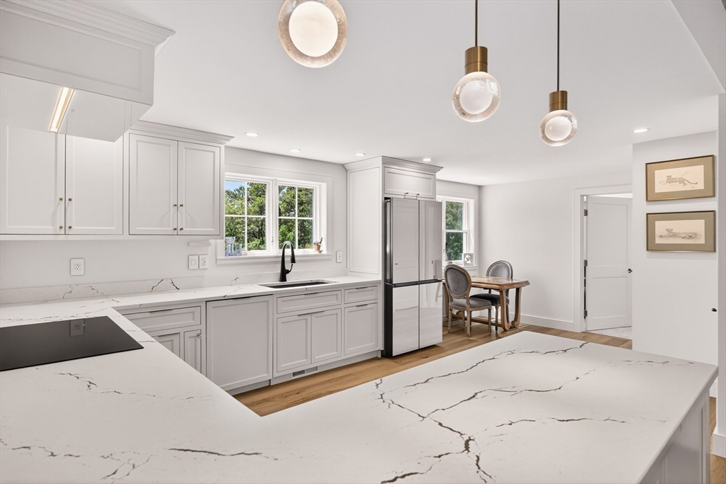 Completed in 2023, this newly built, fully electric home blends elevated design, sustainability, and timeless Cape Cod charm. Privately sited on 1.15 acres across two parcels and surrounded by conservation, the property offers gated access to Blueberry Pond and 2,400 sq ft of living across three levels. Designed with a primary suite on each main level, the layout supports multigenerational living or hosting with ease. The expansive second-floor suite features a sitting room, workspace, and views over wildflower meadows to the water. A walk-out lower level - with separate entrance and driveway - serves as a guest suite or income-producing Airbnb ($30K/year). Finishes include Miele appliances, engineered hardwoods, Stanton carpets, Pella windows, and heated towel rails. A HERS rating of 50, 400-amp power, solar-ready infrastructure, and dual EV chargers reflect true efficiency. A screened porch, outdoor shower, and curated gardens complete this rare Brewster retreat.