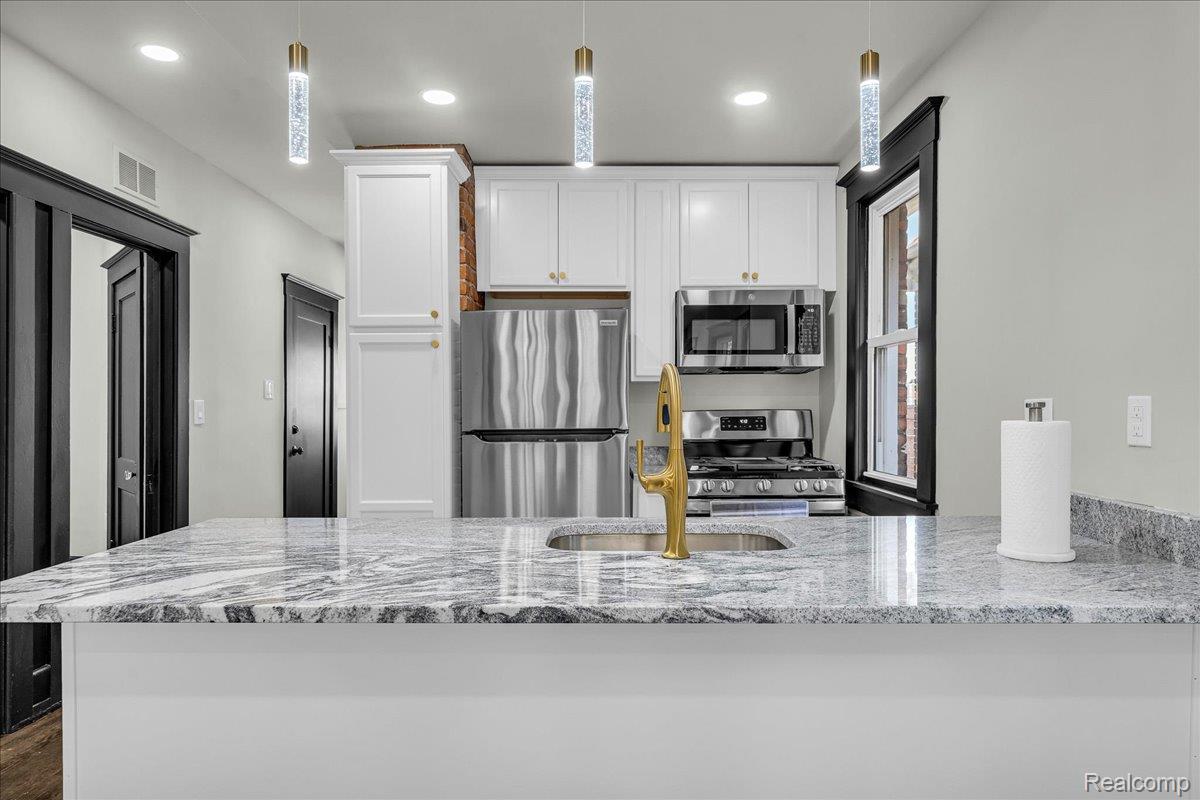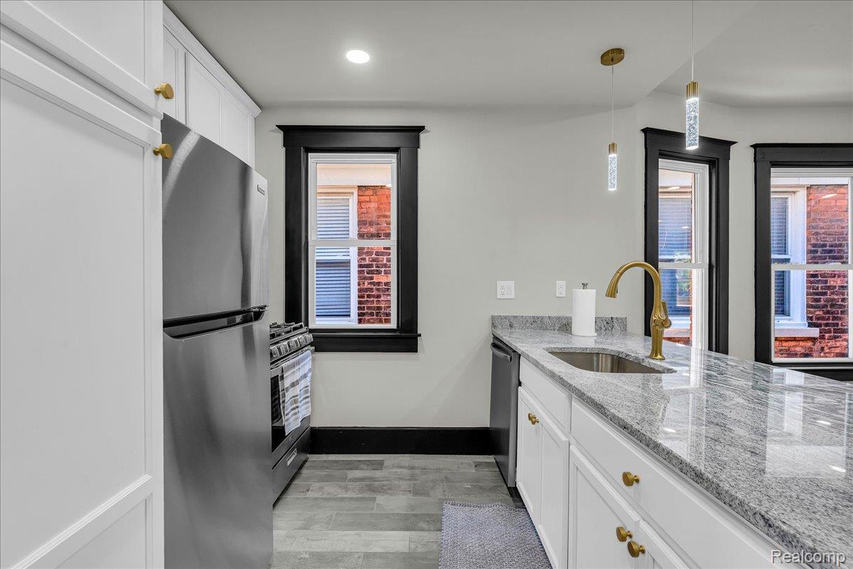 MOVE RIGHT IN! THIS STUNNING UPPER FLAT IS READY! This beautiful, fully renovated upper duplex unit features modern living with the elegance of historic charm, and has 1200sf and features 3 bedrooms 1 bath, with a modern open concept kitchen, in-unit laundry, radiant with natural light, and original trim and hardwood floors. A great location with an easy walk to neighborhood restaurants and entertainment, and to the Wayne State Campus and Midtown. Excellent expressway access for getting around the Metro region. The best of urban living in the Woodbridge Neighborhood of Detroit! Come see this amazing duplex!