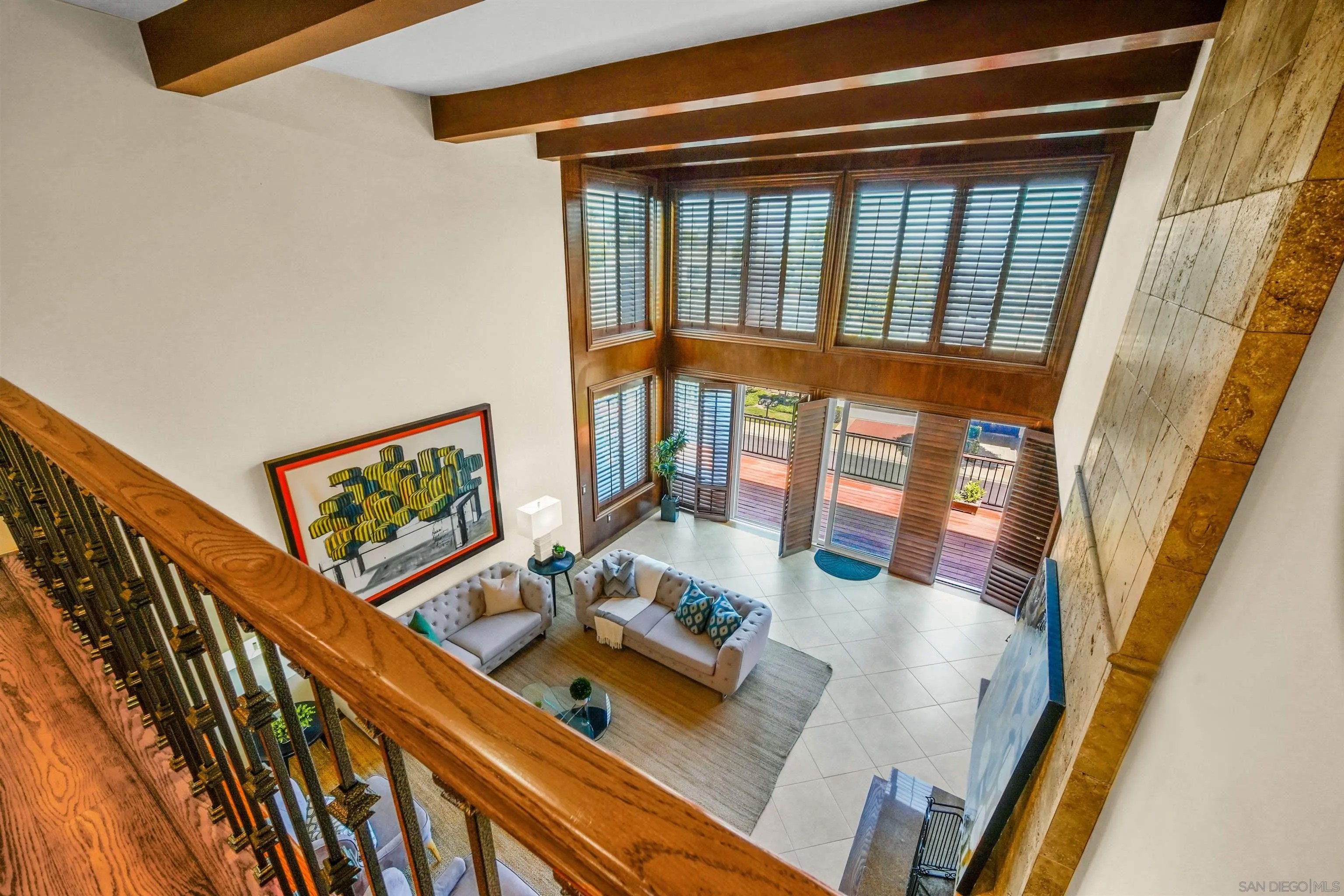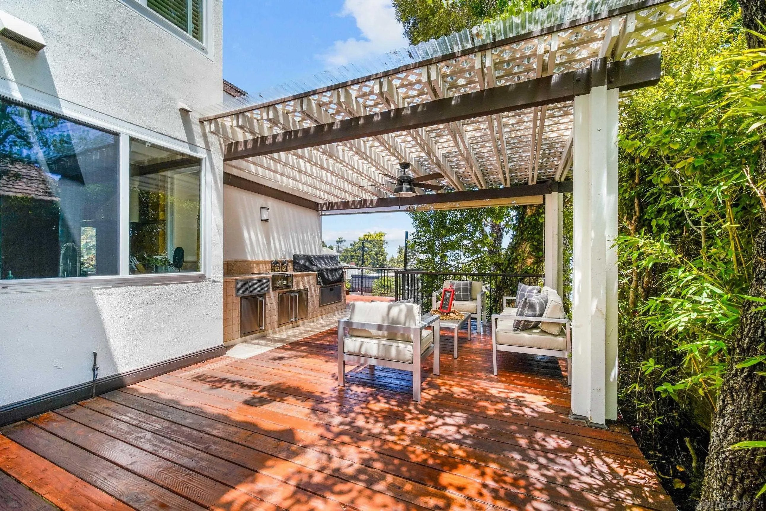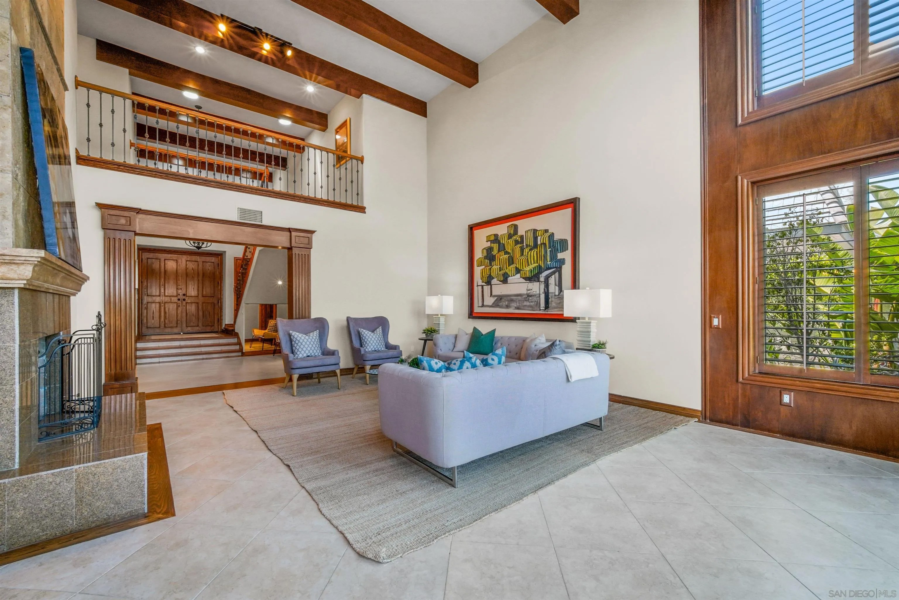 Exceptional 4 bedroom home in Windemere La Jolla gated neighborhood. This elegant home is move-in ready. A refined first floor primary bedroom, enclose a large suite with a fireplace, elegant wood cabinetry, and oversized dressing room that leads to a private and restful private patio. A stylish foyer welcomes you with lots of natural light, vaulted ceiling living room with an exquisite floor to ceiling natural stone fireplace. The contiguous decks provide the perfect combination of indoor/outdoor areas with panoramic views of the city. Creating the perfect entertaining atmosphere. New remodeled kitchen! Generous outdoor lounging and sitting areas with an extensive counter and built-in bbq grill. A large kitchen with an island integrates the inviting breakfast nook and tv-room. There are additional three bedrooms upstairs, one en-suite, all tasteful and well arranged. Windemere offers an unparalleled lifestyle of tranquility, security, and privacy. This is a very special property to be enjoyed. Windemere great Gated Community Complex .