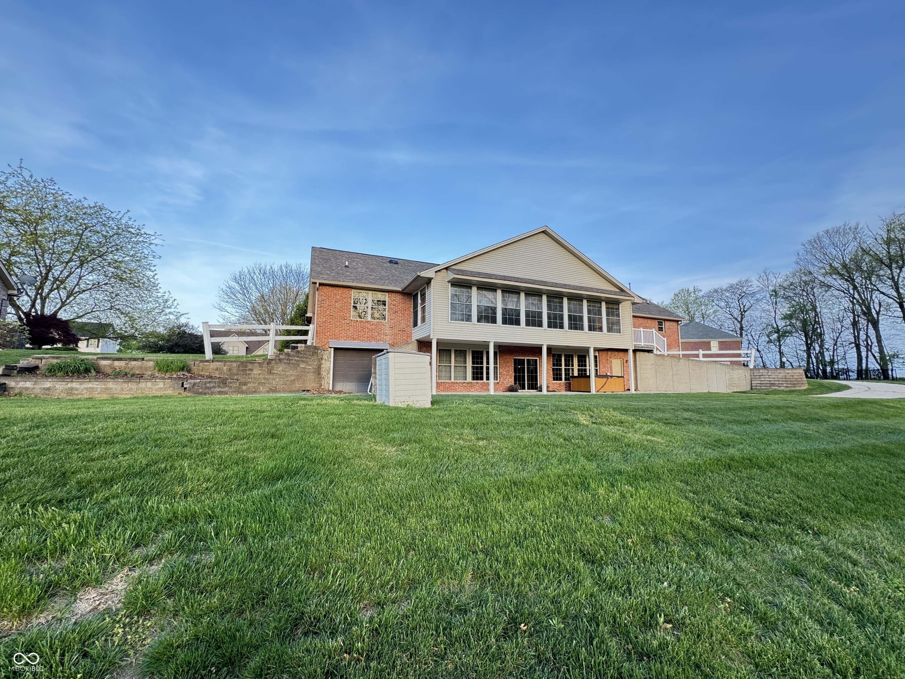 WELCOME HOME to a STUNNING, BRICK, LAKESIDE BEAUTY in a well established neighborhood sitting pretty on almost an acre of ground! You will love the half circle driveway which provides plenty of guest parking when you entertain. Upon entering the expansive living area, your eyes will spot the massive sunroom and pull you in to the views and calming feel. Encompassing well over 5,000 (+/-) square feet, featuring an open floor plan creating a sense of boundless freedom. The vaulted ceiling elevates the space, offering an airy atmosphere perfect for comfortable living. The heart of this home is truly found in its well-appointed kitchen, showcasing a stylish backsplash, elegant stone countertops and Shaker cabinetry. The office has perfect views of the lake, large, double door storage area & easy access to a full bath. The main floor features 3 spacious, bedrooms, HUGE closets, and their own full bathrooms featuring gorgeous, granite vanities & tile flooring for enhanced comfort and privacy. The primary suite closet is 11'x10'!! If you need even more bedrooms there are 2 BONUS rooms on the lower level! The laundry room comes complete with a washer & dryer and conveniently located on the main floor. And as if that is not enough, a quick trip down stairs reveals the FULL WALKOUT basement complete with a massive rec area, 2 private bonus/bed rooms, full bath, another kitchen, mechanical area, massive storage room and access to the downstairs garage. This area is perfect for the lawn mower, gardening tools AND your fishing equipment close to the water! Family time, relaxation, entertaining and fun all await you!