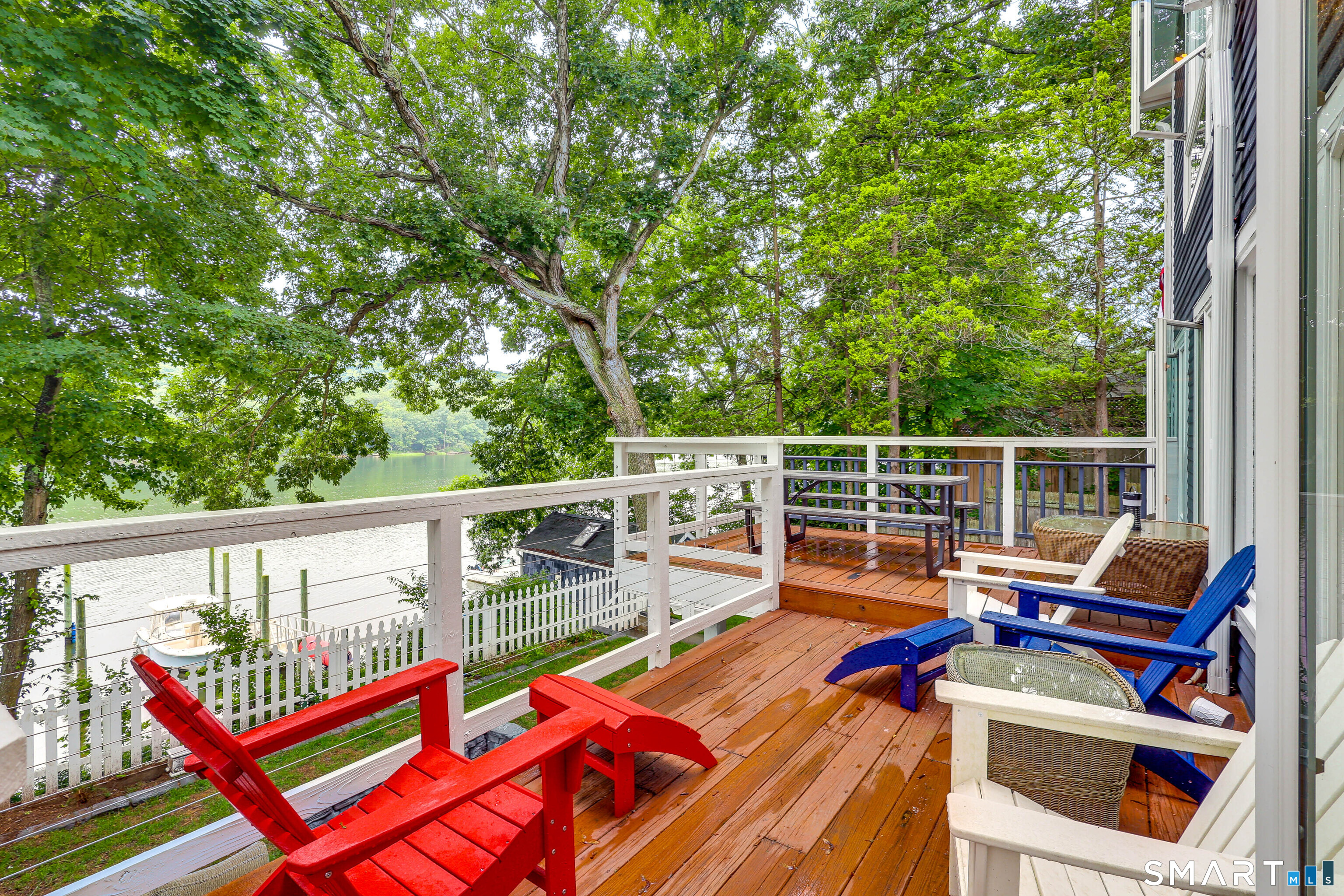 Rare direct waterfront retreat on the Niantic River in Waterford's coveted Oswegatchie neighborhood. This 3-bedroom, 3-bath home offers sweeping, unobstructed views of the Niantic River to Oswegatchie Hills Nature Preserve and a private fixed dock with approximately 24" draft at low tide. Enjoy the rare privilege of fishing from your own dock while bald eagles drift over the protected landscape of Oswegatchie Hills. The residence features 1,325 sq ft above grade plus 684 sq ft of finished walk-out lower-level living space, creating flexibility for guests, entertaining, or extended stays. Significant recent upgrades and thoughtfully designed hardscaping enhance both comfort and outdoor enjoyment. A separate climate-controlled office in the boathouse with heat, A/C, electricity, and CAT6 ethernet adds a distinctive bonus for working from home or pursuing creative interests. Enjoy morning coffee on the deck and spectacular sunset views over the river. Proven short-term rental history adds appeal for investors or those seeking a part-time coastal getaway. Just minutes to downtown Niantic, beaches, the boardwalk, dining, shopping, Pfizer, Electric Boat, Sub Base, the US Coast Guard Academy, and New London train service, with convenient access to both Boston and New York. Rarely does a property combine direct boating access to Long Island Sound, protected natural views, and such close proximity to shoreline amenities and major employers.