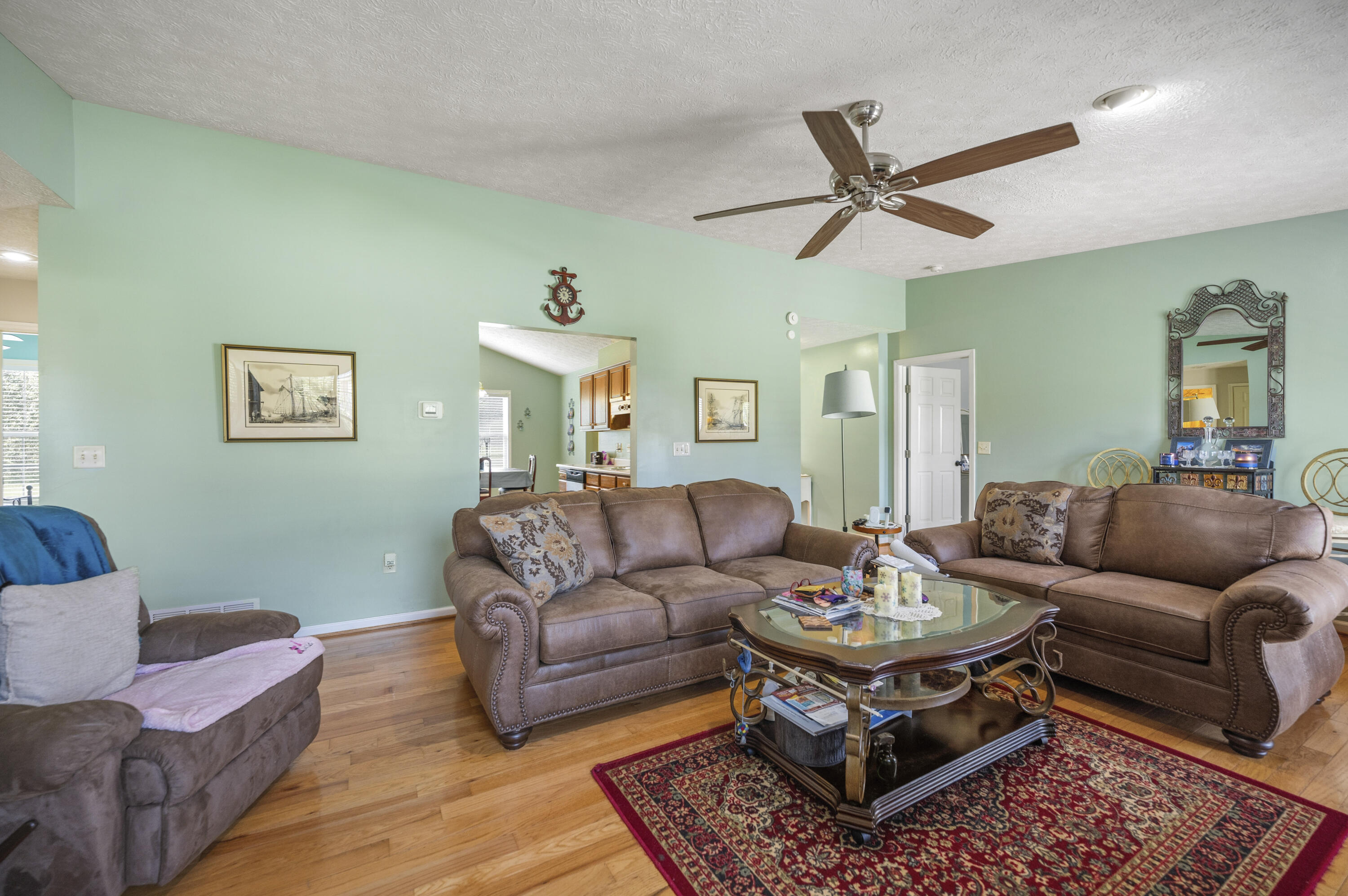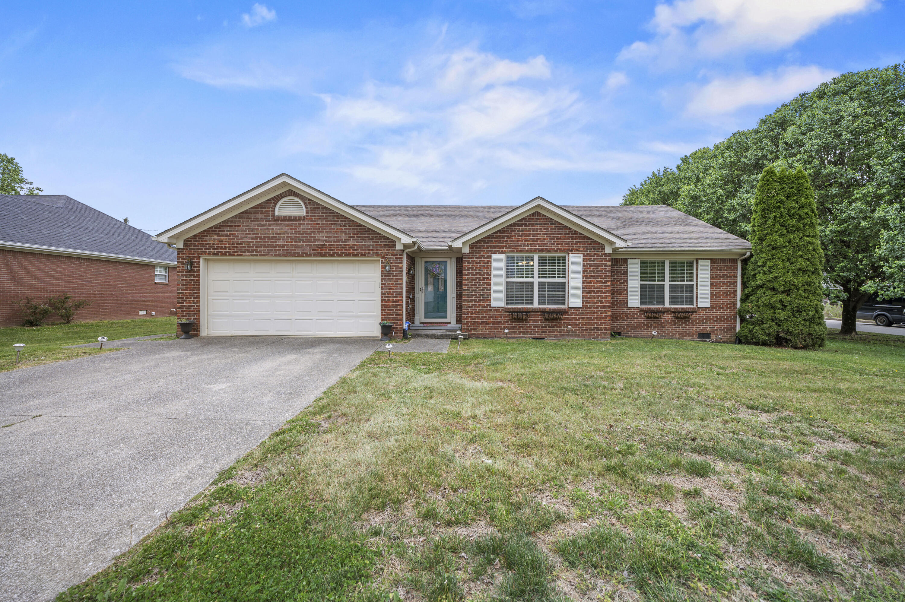 Welcome to 1033 J.D. Circle in Berea, Kentucky! This lovely all brick ranch home sits on an oversized corner lot. Inside you'll enjoy a formal foyer space with hardwood floors and coat closet. The kitchen is well equipped with a large pantry and stainless appliances. The great room has the same gorgeous hardwood floors, vaulted ceiling and a ceiling fan. This home boasts a split bedroom floor plan. The primary ensuite is lovely with the same hardwood floors, walk in closet and an ensuite bathroom with a tub/shower combo. The space full bathroom has a $15,000 Westshore Home walk in shower with seat and grab bars. The hardwood flooring continues into bedrooms two and three also with ceiling fans. The back deck has been professionally stained. With the newly built Berea Bypass, this home is now only 3.5 miles from I-75 Exit 76! Washer and dryer are negotiable. Current security system is with ADT and is about $53/month. Air was replaced in 2024. Assumable VA loan with Freedom Mortgage at a rate of 2.87%... of course the difference will have to be met by other means of purchase and borrow must qualify for loan(s) with Freedom Mortgage.