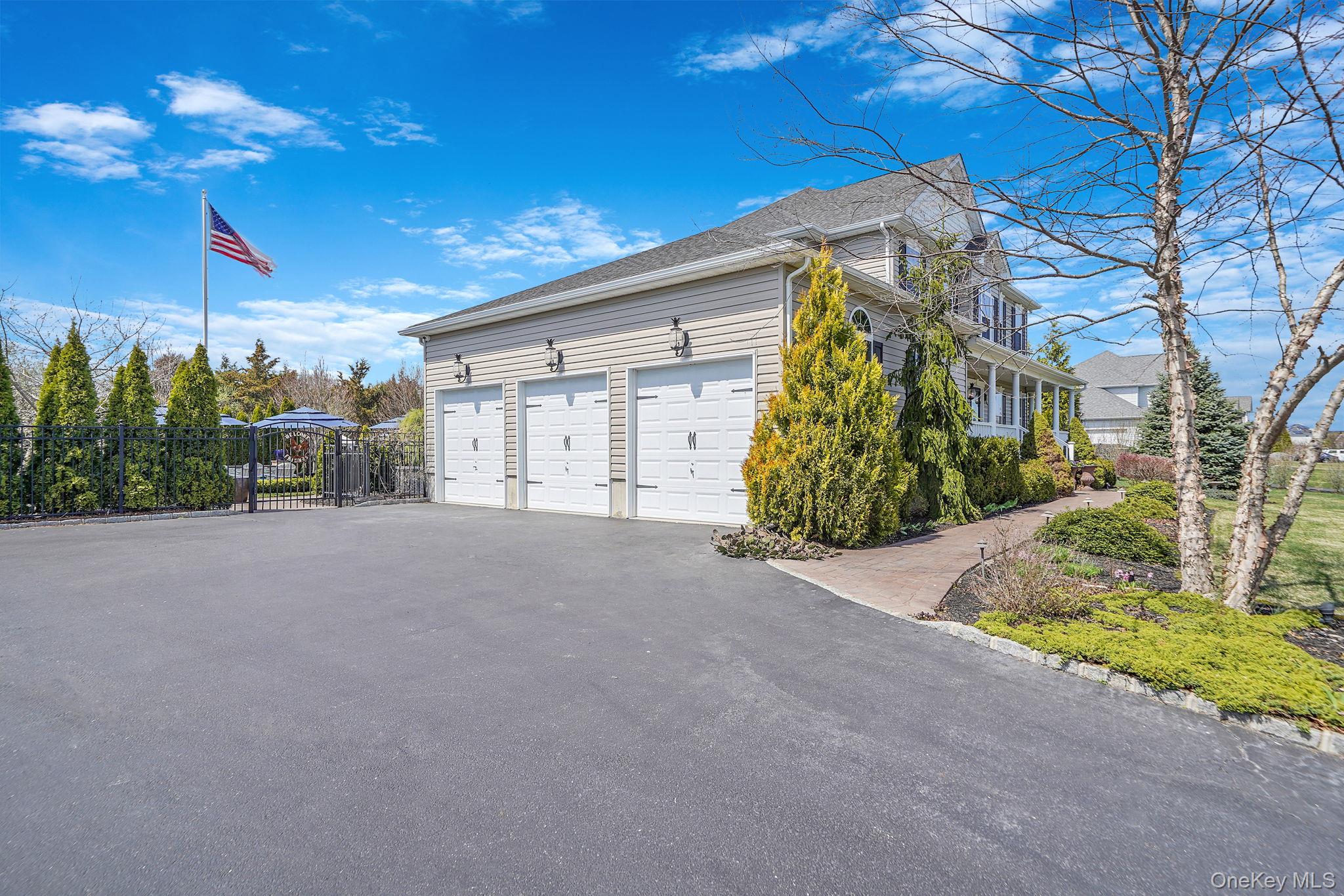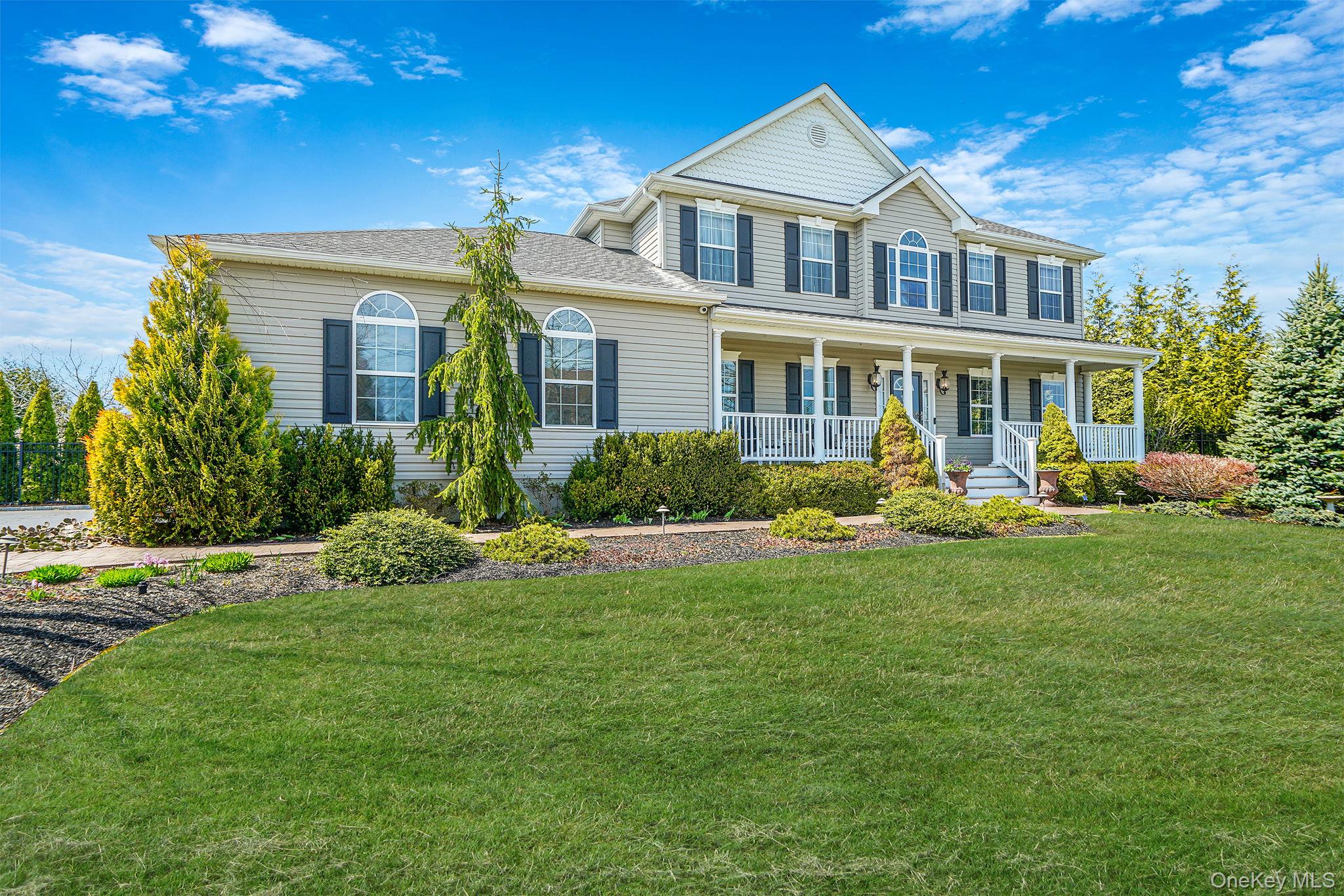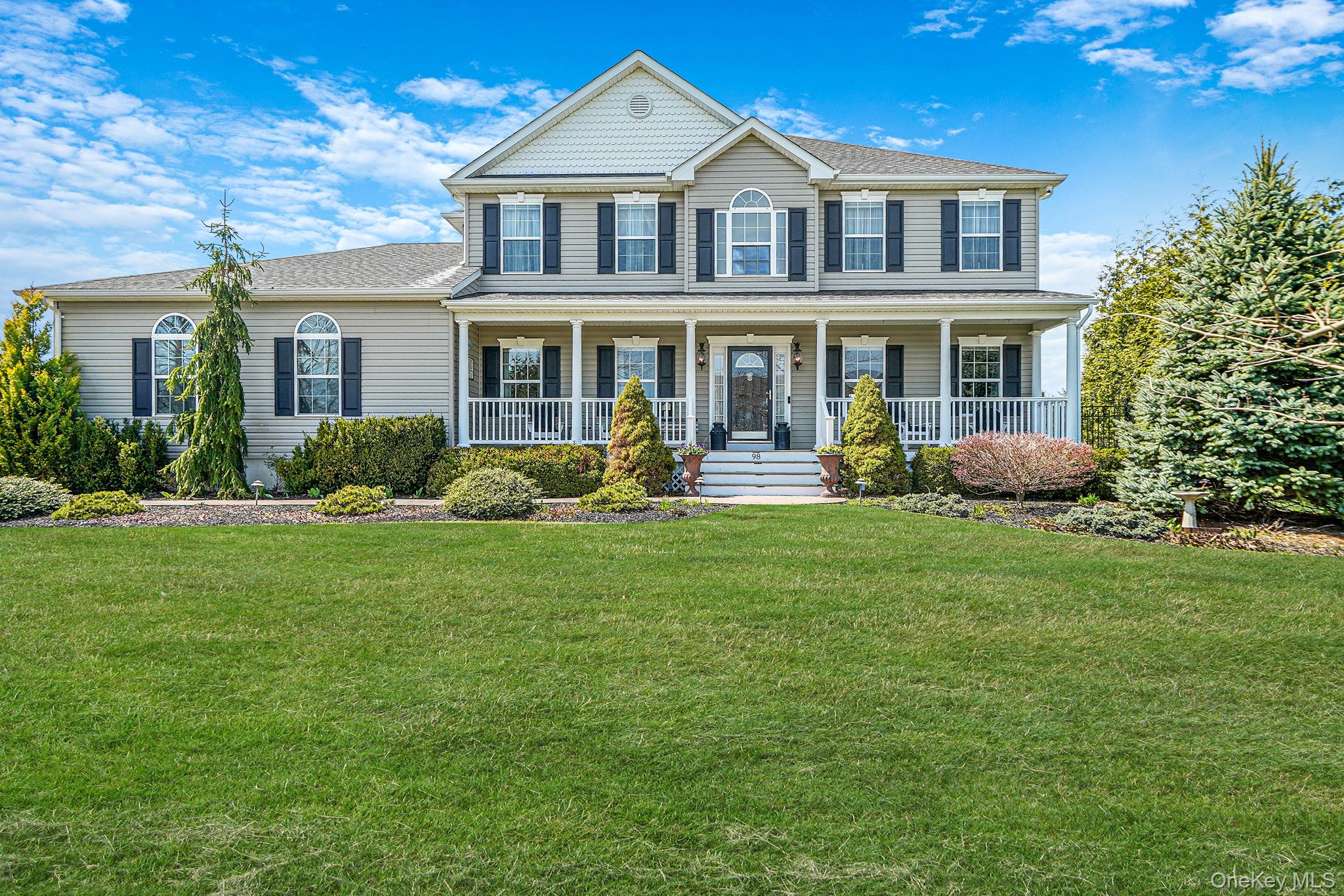 Location! Location! Welcome to this Stunning picture perfect Sun-Filled 4 Bedroom, 2.5 Bath Colonial nestled in the heart of the desirable Birchwood Community in Wading River. This stunning custom-built Jamesport Model offers exceptional craftsmanship, upscale finishes, and a spacious open floor plan designed for both luxurious everyday living and effortless entertaining. From the moment you arrive, you are greeted by beautifully landscaped grounds, striking curb appeal, and an impressive 3-car garage with lift, accommodating up to 4 cars. Step inside to discover hardwood floors, custom doors and moldings, soaring ceilings, elegant custom chandeliers, and hi-hat lighting throughout, all enhancing the home's bright and sophisticated ambiance. The heart of the home is the gourmet eat-in kitchen, thoughtfully designed for the culinary enthusiast and entertainer alike. This spectacular space features quartz countertops, a massive 10-foot center island with built-in microwave, Stainless steel farmhouse sink, pot filler, Viking gas cooking with oven and range, three ovens, two dishwashers, stainless steel appliances, wine cooler, garbage compactor, and a spacious pantry. Sliders from the kitchen lead directly to the backyard, seamlessly blending indoor and outdoor living. The inviting living area showcases a beautiful wood-burning fireplace with a gorgeous cased mantel, creating a warm and elegant focal point within the home's expansive open-concept layout. Generously sized bedrooms provide comfort and flexibility, including a spacious primary suite complete with a walk-in closet. The beautifully updated bathrooms offer modern style and refined finishes throughout. Additional interior highlights include a full unfinished basement offering endless potential, as well as hardwired security features for added peace of mind. Step outside to your own private backyard retreat, where resort-style living awaits. The fully fenced yard is surrounded by mature evergreen privacy trees and features an 18x36 heated in-ground saltwater pool with two waterfalls, a paver patio, pergola, shed, and abundant space for outdoor entertaining or peaceful relaxation, with its very own vegetable garden. Perfectly located, this extraordinary home combines luxury, comfort, and exceptional amenities in one remarkable package. Don't miss this rare opportunity to own a truly one-of-a-kind property in Wading River. This home won't last!